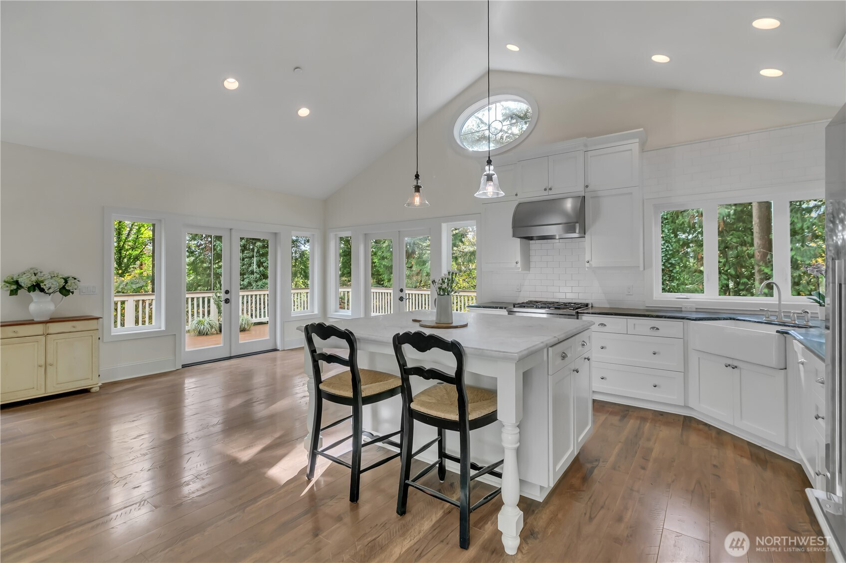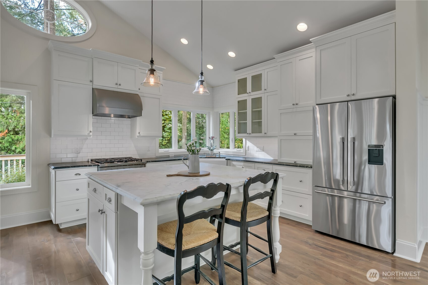 Custom Burnstead Home! Rare 6-bedroom 3670 sft with a HUGE fenced lot. Located on Education Hill, the home backs to a greenbelt and is very private. What an amazing layout. Entering the foyer brings you to the main floor, featuring a dream kitchen with all-new appliances! Entertain on the beautiful deck or in the Great Room with the custom Stone Fireplace. The Primary bedroom is located on the main floor and is oversized with a lovely 5-piece bath (note the custom shower floor), dual sinks, and a large walk-in closet. Formal Dining Room, second bedroom, and 1/2 bath complete the upstairs. Downstairs, four bedrooms, a full bath, an office, and the family room. The innovative 4-zone radiant heating system keeps you comfortable and cozy.