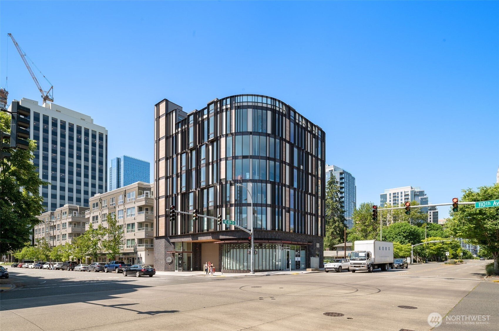 Discover luxury at GIS Plaza in downtown Bellevue. This innovative development redefines urban living with cutting-edge design and unparalleled elegance. This 5th-floor two-bedroom boasts lofty ceilings, engineered hardwood floors, operable windows, and A/C for optimal comfort. Flow into the open-concept modern kitchen that showcases state-of-the-art Miele appliances, quartz countertops, and sleek finishes. The generously sized bathrooms is adorned with Grohe fixtures, ceramic tile, and luxurious heated floors. GIS includes a futuristic mechanical auto valet garage and a vast rooftop deck to take in the views. Conveniently situated adjacent to the Bellevue library, the playfield, and the endless amenities of downtown Bellevue!