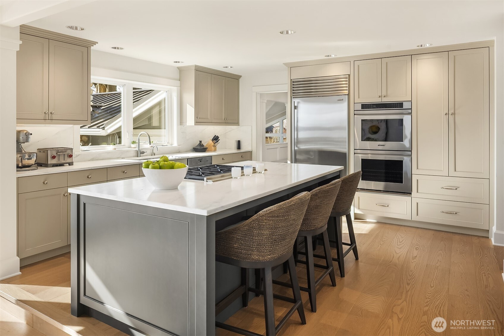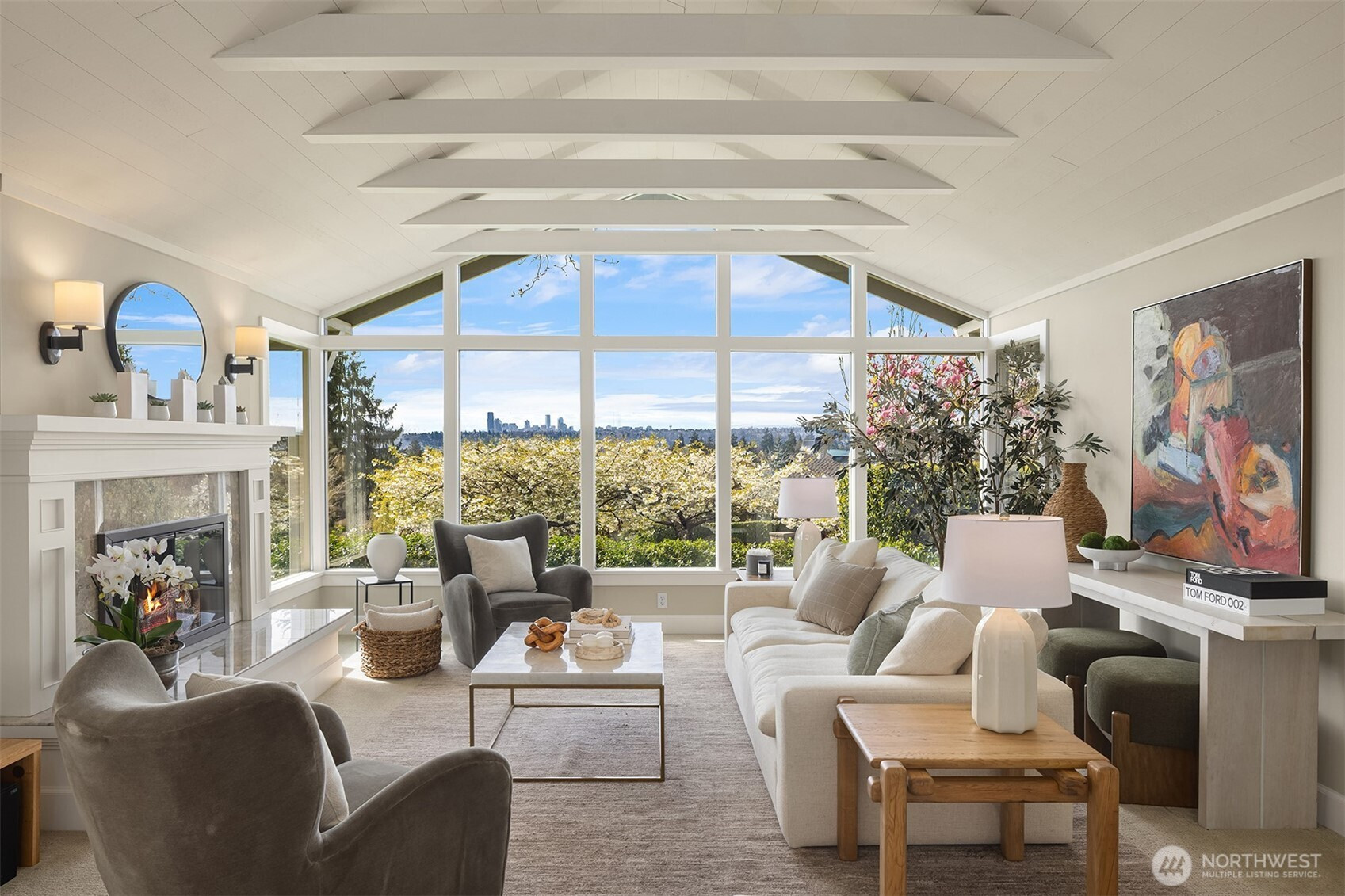 This cherished Medina Heights home is defined by its extraordinary location, sweeping views, abundant light, and timeless architectural presence. Known affectionately as a“Treasured Gem” of the neighborhood, it comes to market for the first time in 30 years, offering a rare opportunity to own a residence of remarkable character and exceptional livability. Thoughtfully updated systems and elevated finishes complement a home that remains modern over time. Here, coveted location, beautiful condition, and refined style come together. The property itself is a true showcase, with expansive front and back lawns that create room for play, relaxation, and entertaining. From nearly every vantage point, enjoy views of the lake, Olympics, unforgettable sunsets, and the Seattle skyline. Old-growth maples & mature oak trees lend a sense of history , while the home’s tasteful additions reflect a deep respect for its roots. The floor plan is exceptionally versatile, with two main-floor offices ideal for modern living, and a generous main-floor bedroom that may serve as a second primary suite or guest retreat. Living, family, dining, kitchen, and upstairs bedrooms all enjoy sweeping views, and multiple outdoor entertaining areas invite you to follow the light and seasons throughout the day. The lower level adds a 2nd laundry, storage and a rumpus room designed for games, and gathering. Ideally located in Medina's fave neighborhood, walkable to schools, parks ,beach and shops.