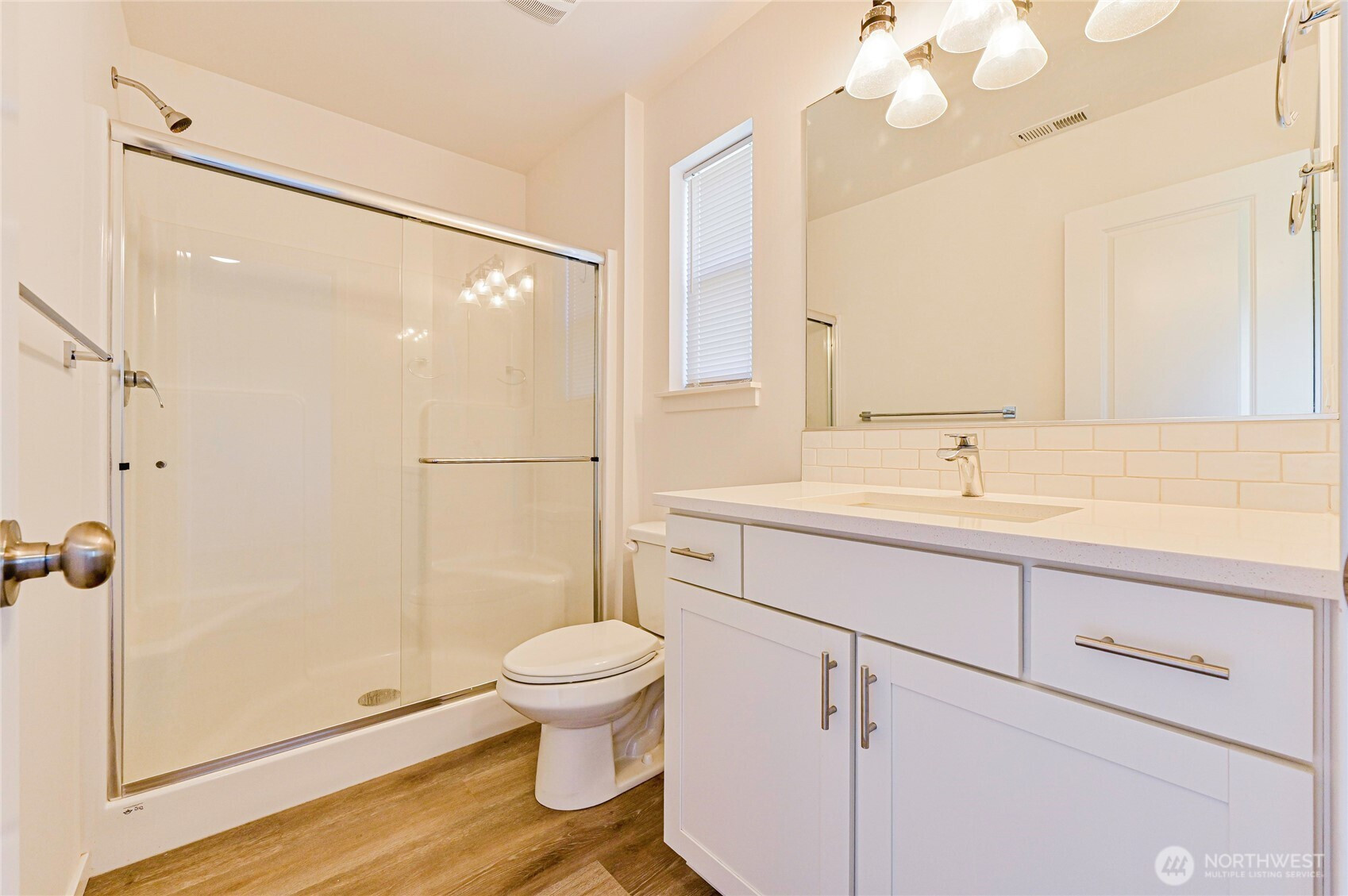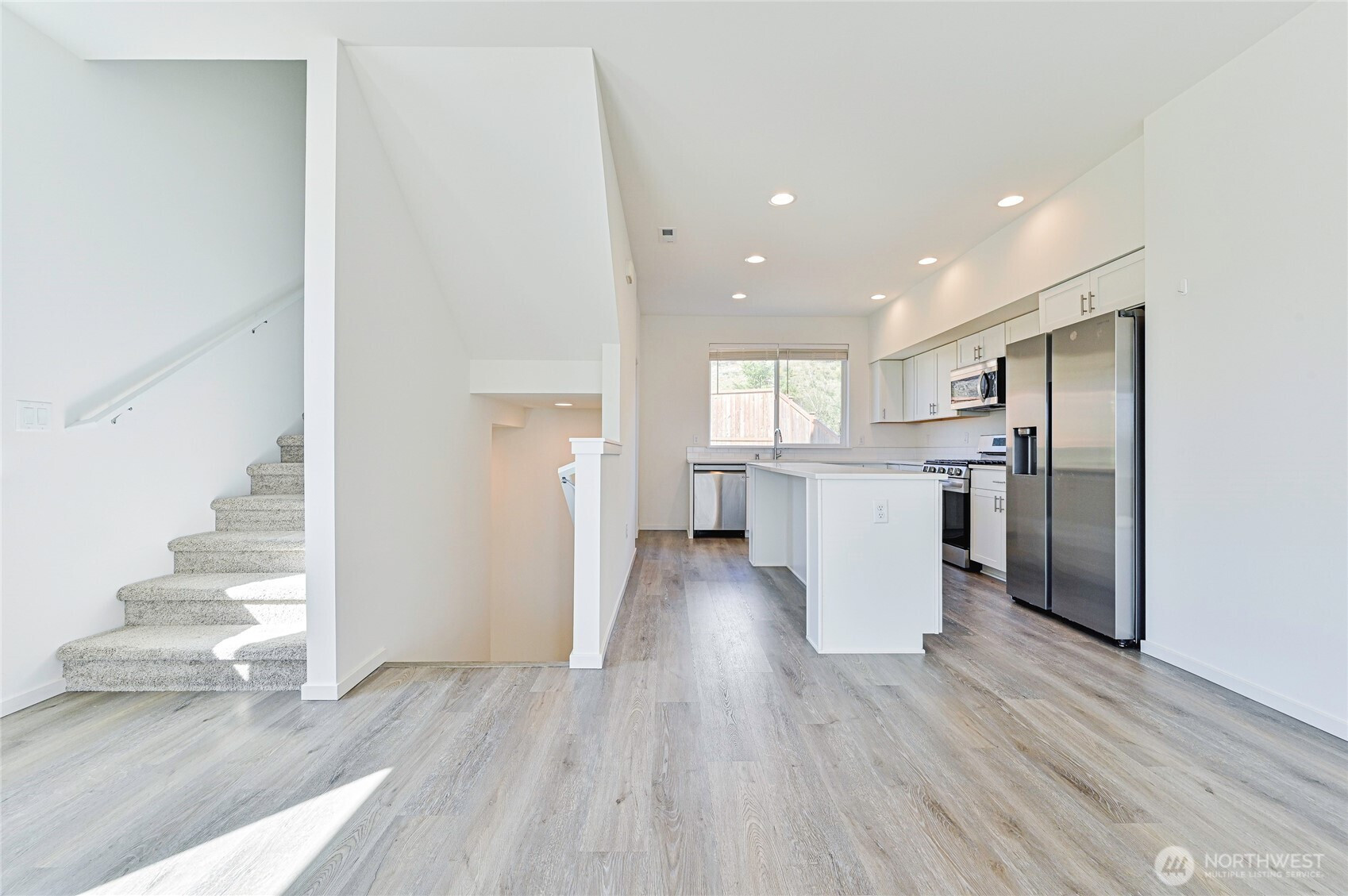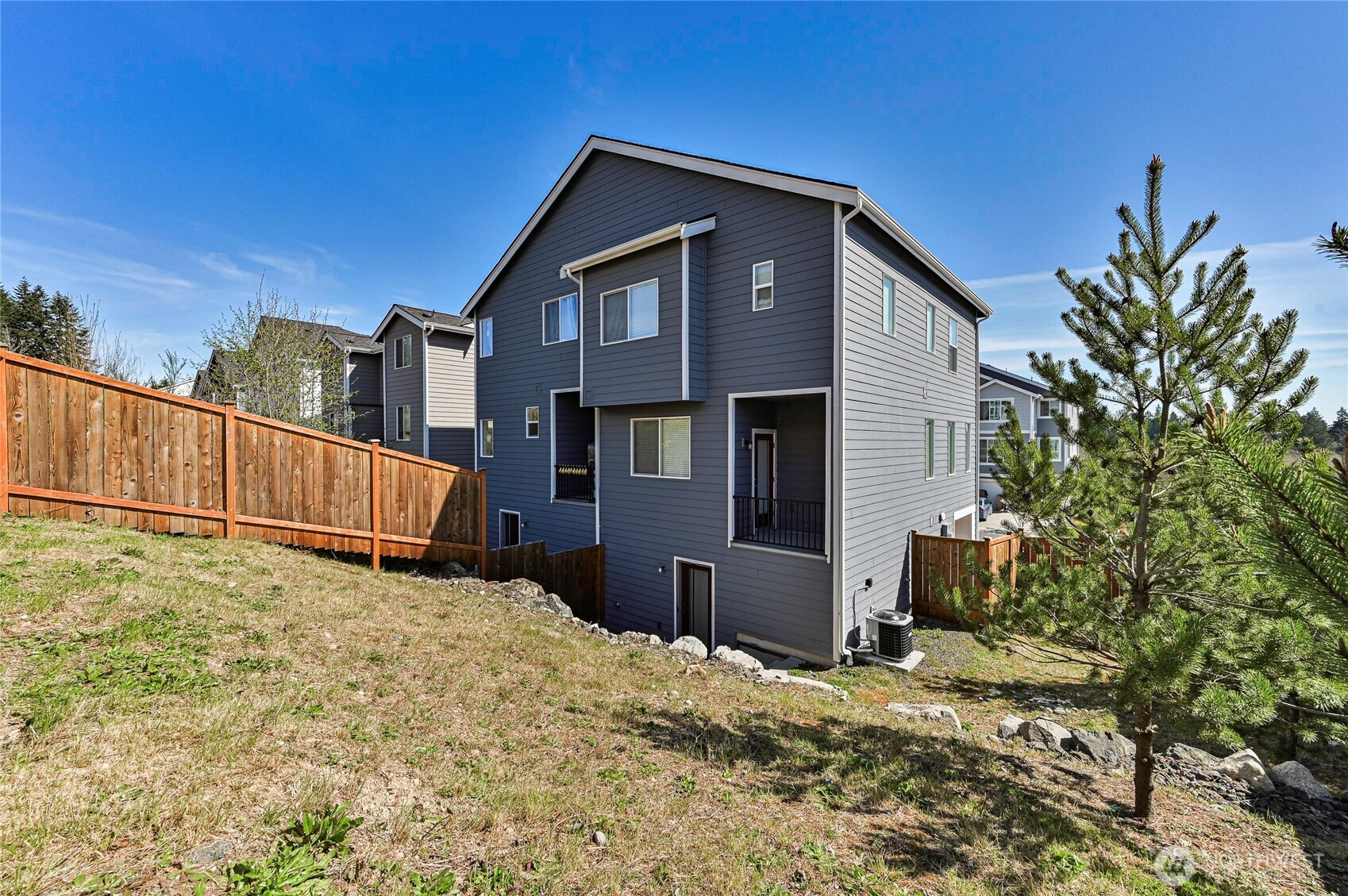 Welcome to this stunning, nearly-new 3-story townhome ideally located just outside Silverdale. Built in 2022 and meticulously maintained, this home truly feels as good as new. Situated on a desirable corner lot, this property offers extra yard space, fully fenced—perfect for pets, play, or relaxing outdoors. Inside, you’ll find a thoughtfully designed layout featuring a bedroom and 3/4 bath on the main level, ideal for guests, multi-generational living, or a private home office. The heart of the home is the expansive, light-filled living room, boasting large windows that flood the space with natural light and create an inviting, open atmosphere. The modern kitchen is equipped with a gas stove, perfect for cooking enthusiasts, and flows seamlessly into the main living areas. Upgrades include A/C for year round comfort, clean and beautiful quartz throughout the kitchen and primary bath, and a tankless hot water heater, providing endless hot water and energy savings. Conveniently located near shopping, grocery stores, dining, and everyday amenities. Excellent proximity Bangor and PSNS. Whether you’re commuting or simply looking for convenience, this location delivers.This move-in-ready home combines modern comfort, prime location, and stylish living—don’t miss your opportunity to make it yours!
