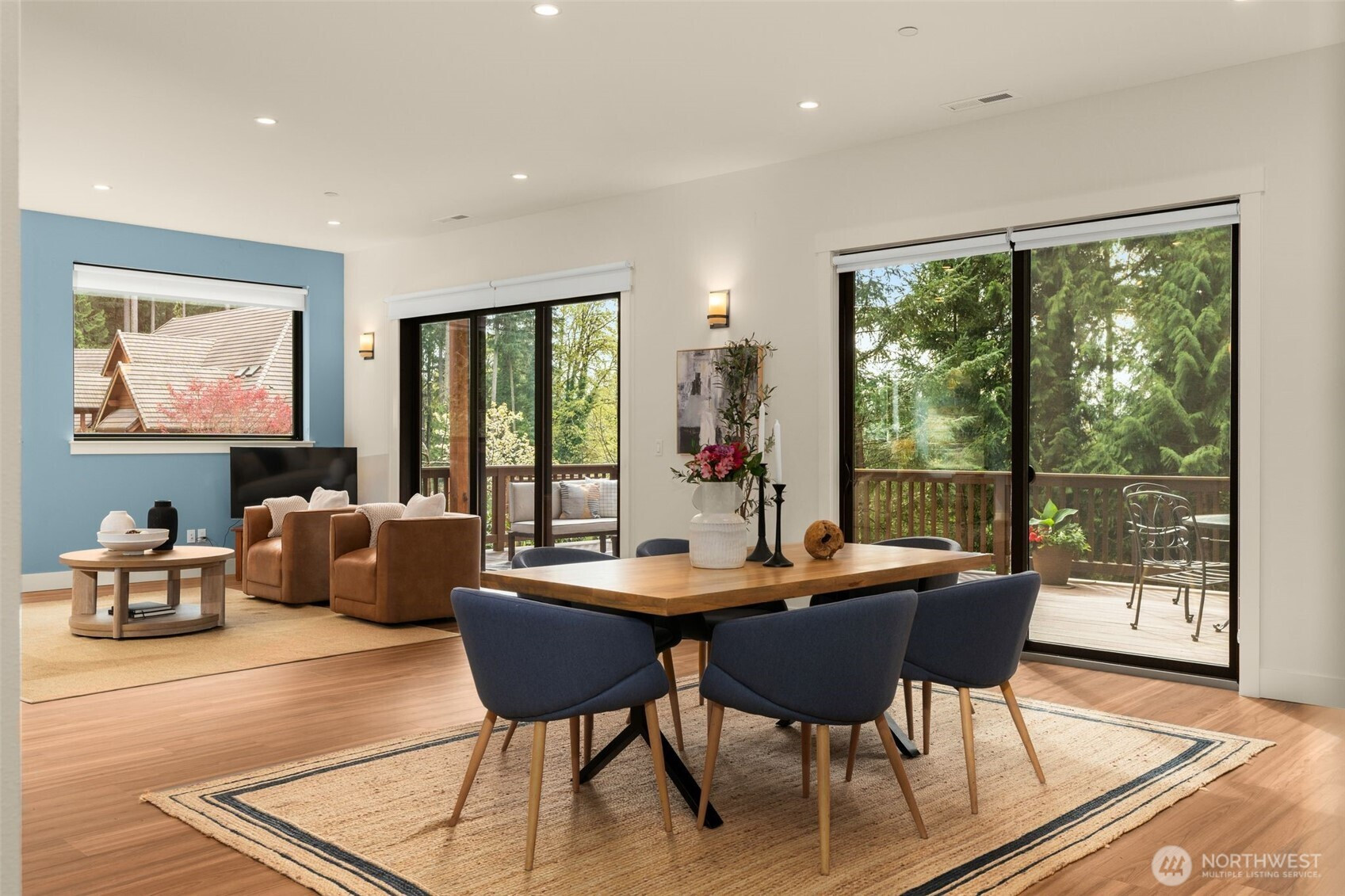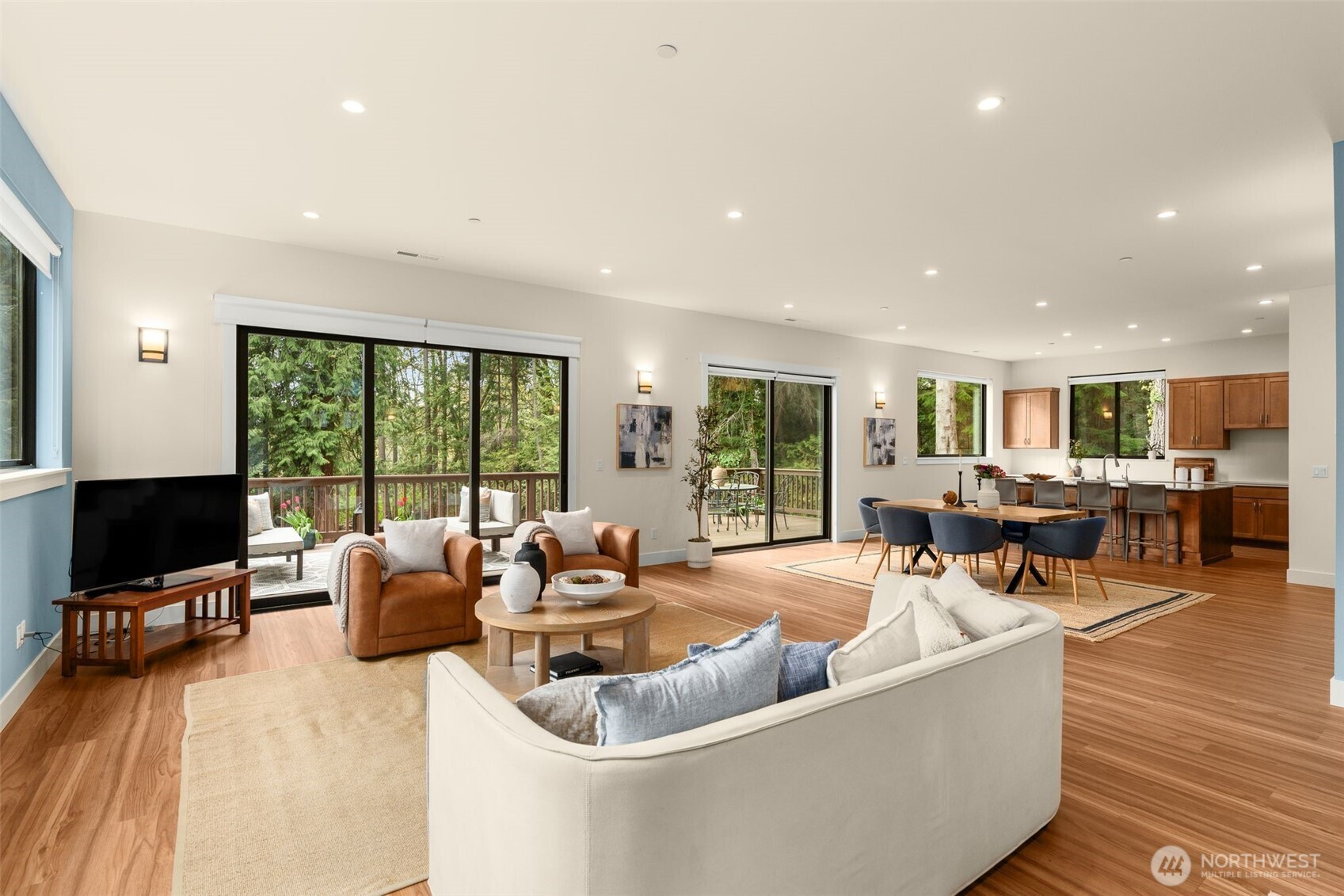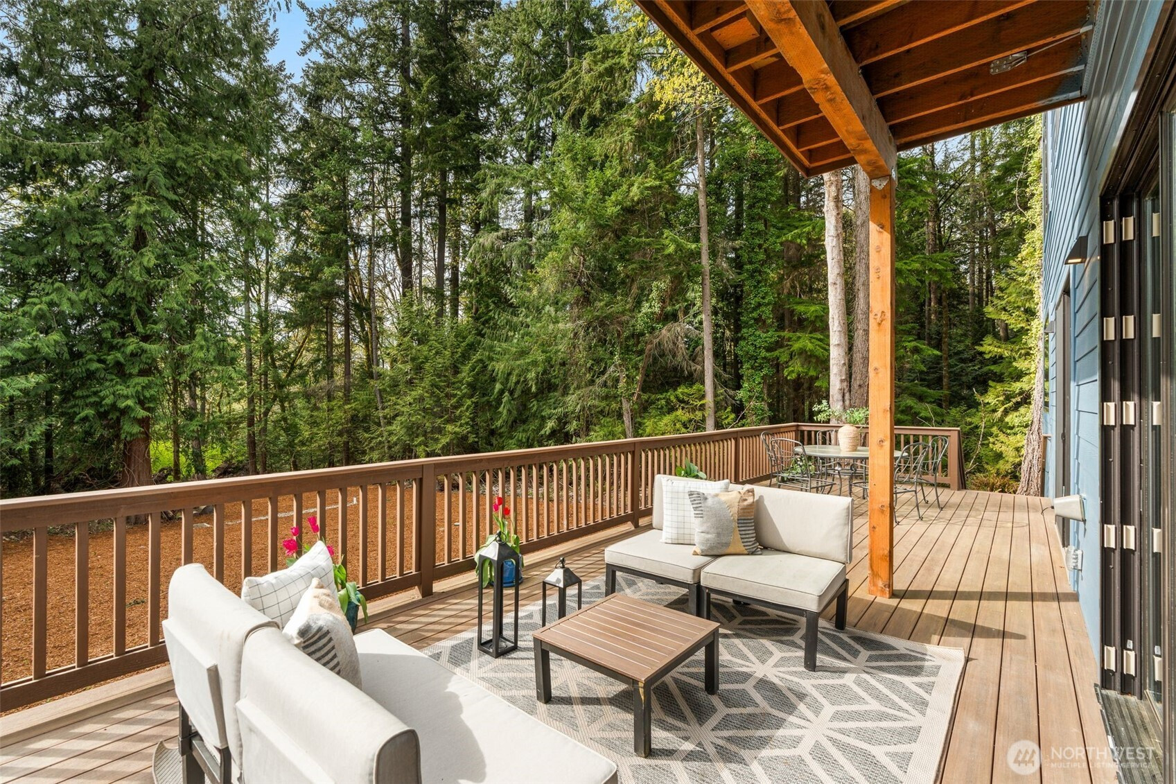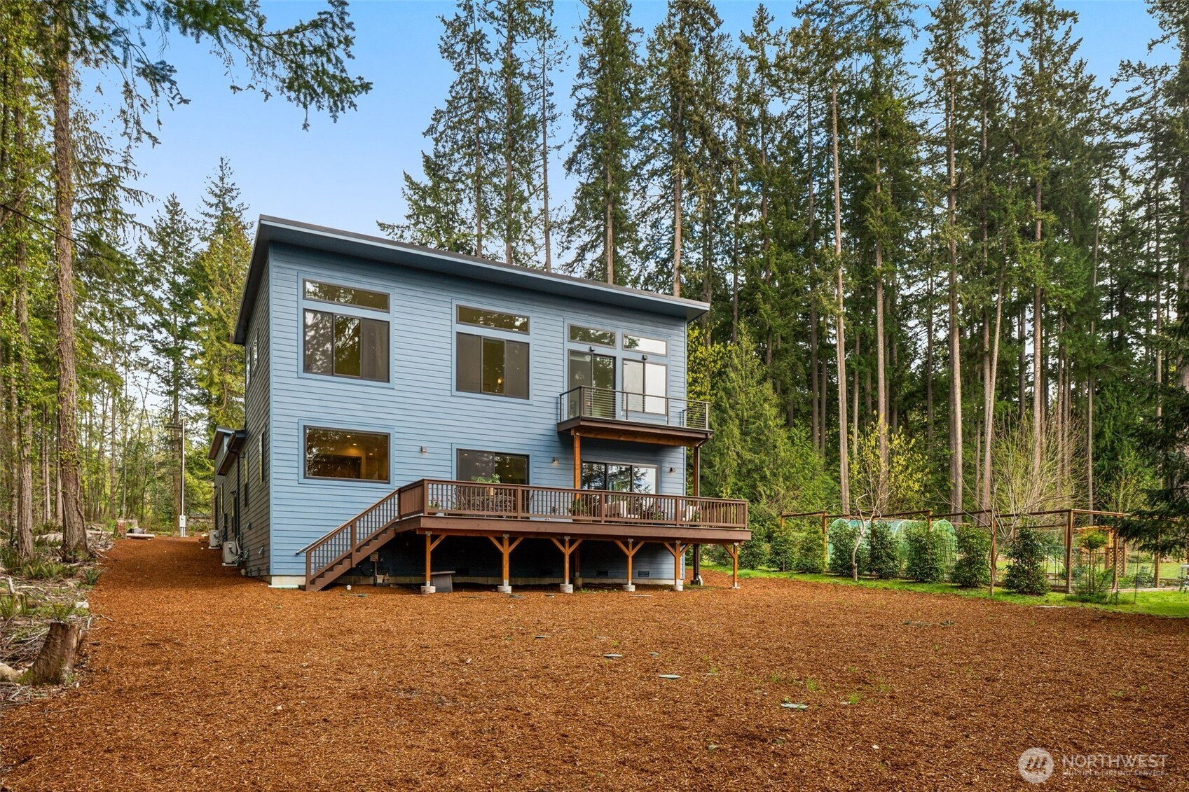 Like-new, sun soaked, solar-powered, self-sustaining luxury home on 1.6+ lush acres designed for eco-friendly, multi-generational living. Includes a spacious ADU for guests or rental income—experience island living at its absolute best! . This exceptional property features a 2,900 sq ft main residence plus a private 800 sq ft 1BR/¾ BA ADU. The open floor plan is filled with natural light from southwest-facing windows and boasts 10-foot ceilings. High-end finishes include recycled glass countertops, luxury vinyl plank flooring, fiberglass windows, TimberTech decking, and a durable metal roof. Designed for energy-efficient living, the home is nearly self-sustaining with 48 solar panels, dual Tesla battery backup systems with automatic outage switching, two furnaces/heat pumps, two water heaters, and separate electrical panels for each dwelling. Additional features include A/C and a private well with mineral filtration and water softener. The 3 bedrooms all offer vaulted ceilings & peek-a-boo water & Olympic mountain views. Outside, enjoy a 400 sq ft west-facing deck perfect for entertaining and sunset evenings. Located less than ½ mile to Battle Point Park, 0.7 miles to Olympus Beach, and 1 mile to Grand Forest West, with the Seattle ferry just 15 minutes away, this is a rare opportunity to enjoy luxury, sustainability, and worry-free island living in one of Bainbridge Island’s most desirable neighborhoods.