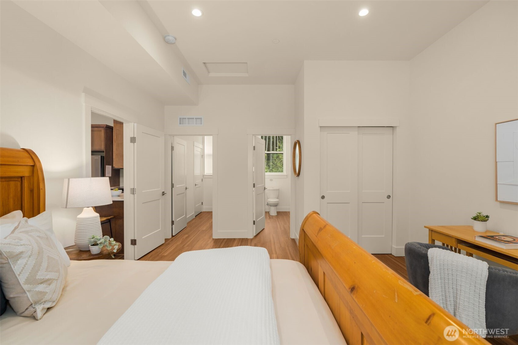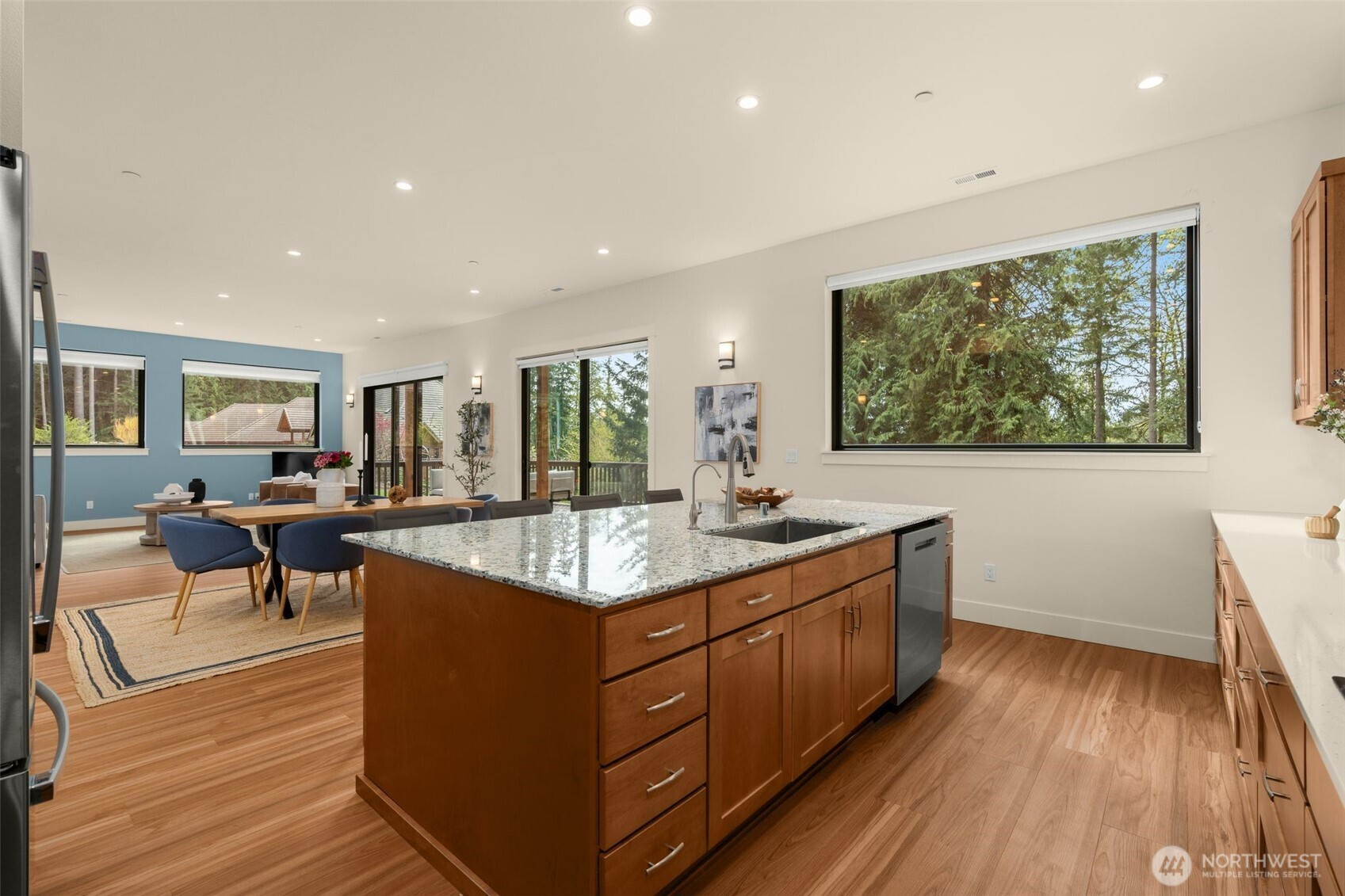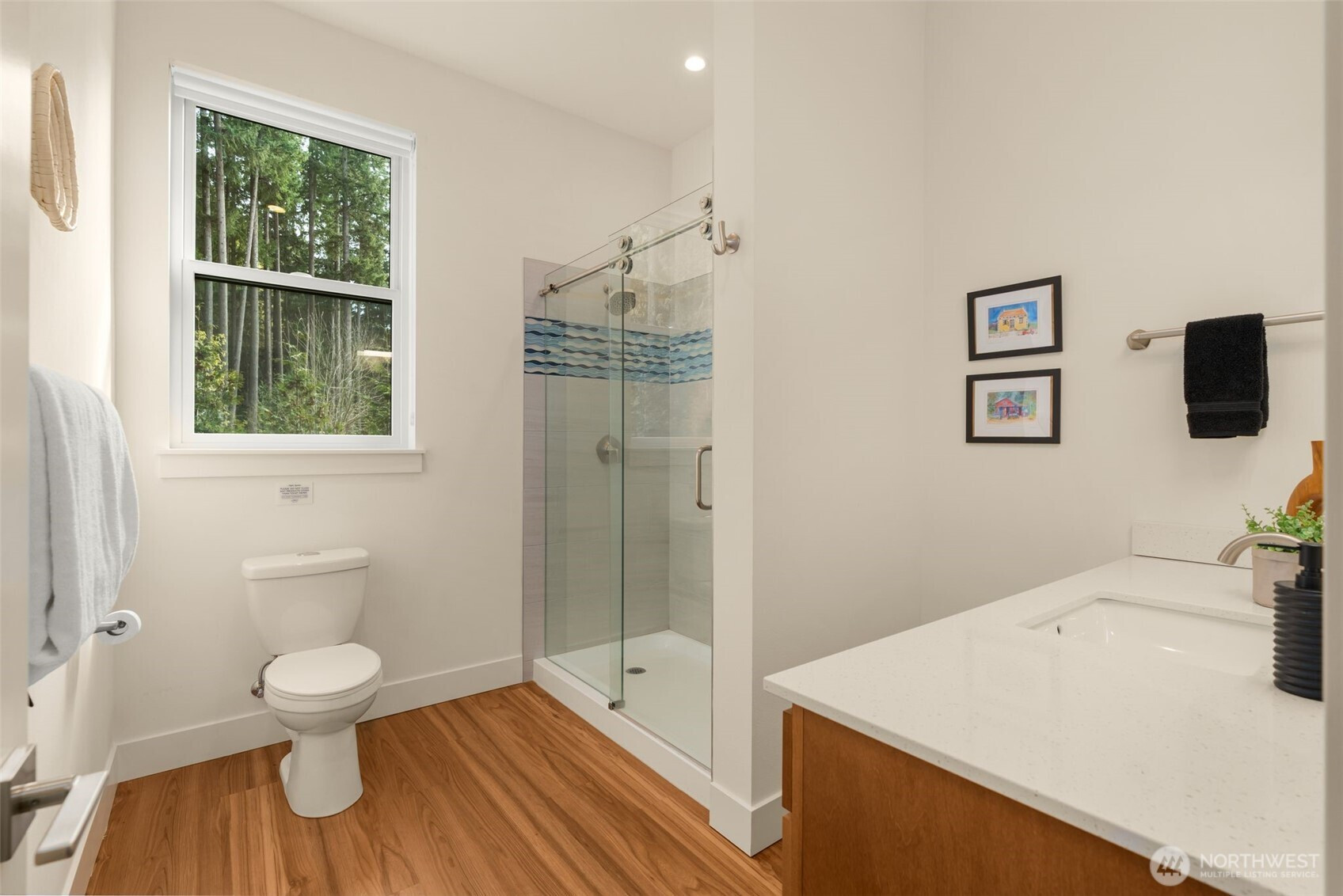 Like-new, sun soaked, solar-powered, self-sustaining luxury home on 1.6+ lush acres designed for eco-friendly, multi-generational living. Includes a spacious ADU for guests or rental income—experience island living at its absolute best! . This exceptional property features a 2,900 sq ft main residence plus a private 800 sq ft 1BR/¾ BA ADU. The open floor plan is filled with natural light from southwest-facing windows and boasts 10-foot ceilings. High-end finishes include recycled glass countertops, luxury vinyl plank flooring, fiberglass windows, TimberTech decking, and a durable metal roof. Designed for energy-efficient living, the home is nearly self-sustaining with 48 solar panels, dual Tesla battery backup systems with automatic outage switching, two furnaces/heat pumps, two water heaters, and separate electrical panels for each dwelling. Additional features include A/C and a private well with mineral filtration and water softener. The 3 bedrooms all offer vaulted ceilings & peek-a-boo water & Olympic mountain views. Outside, enjoy a 400 sq ft west-facing deck perfect for entertaining and sunset evenings. Located less than ½ mile to Battle Point Park, 0.7 miles to Olympus Beach, and 1 mile to Grand Forest West, with the Seattle ferry just 15 minutes away, this is a rare opportunity to enjoy luxury, sustainability, and worry-free island living in one of Bainbridge Island’s most desirable neighborhoods.