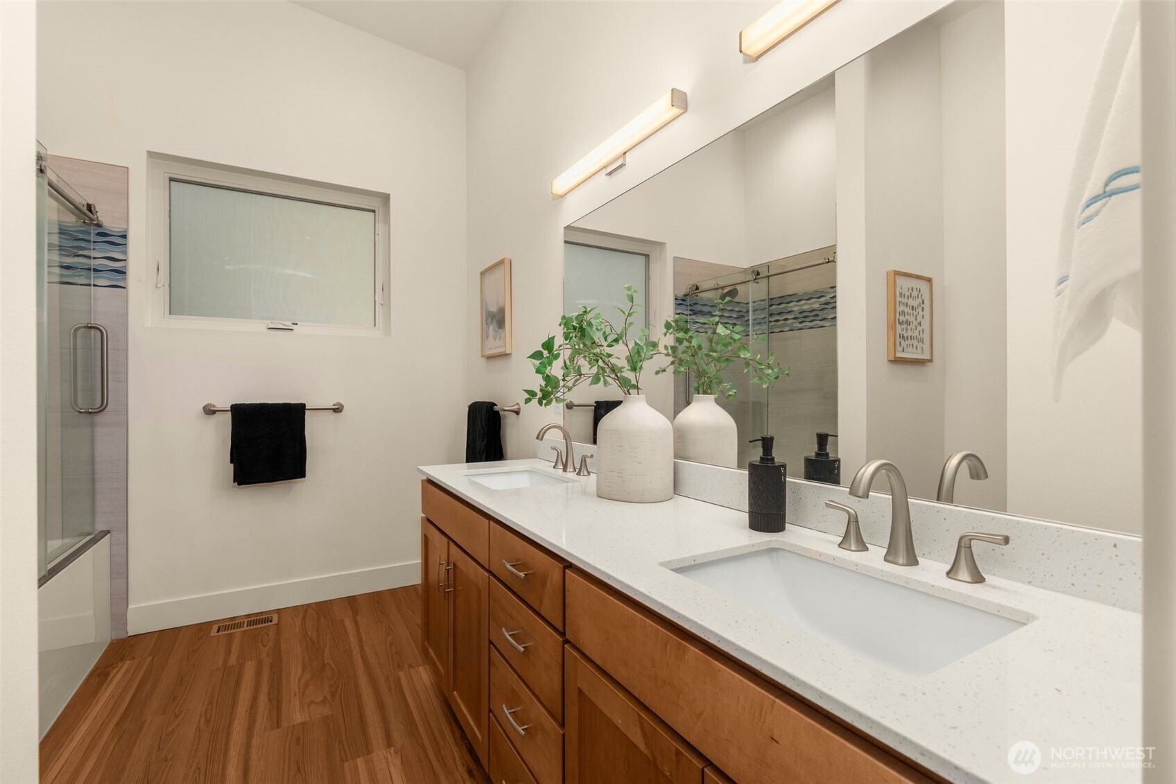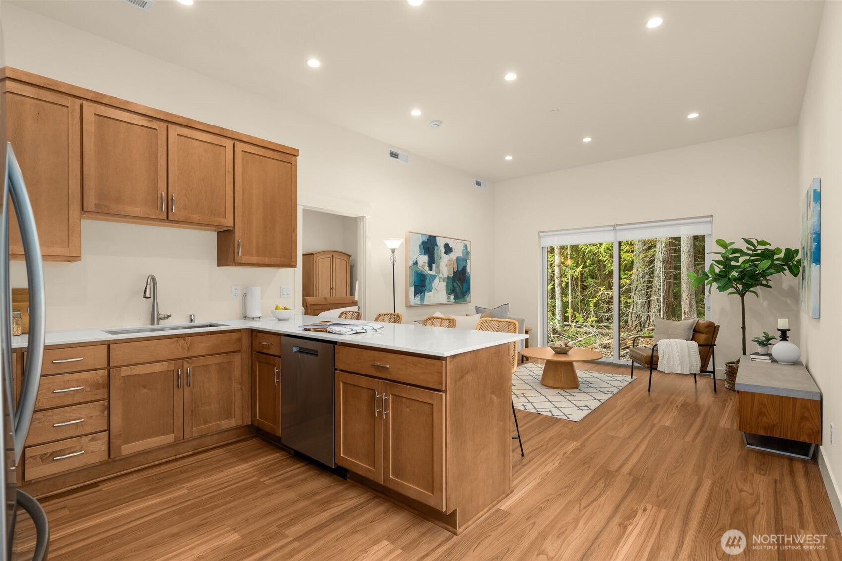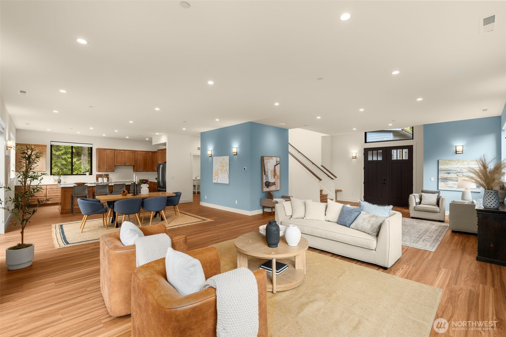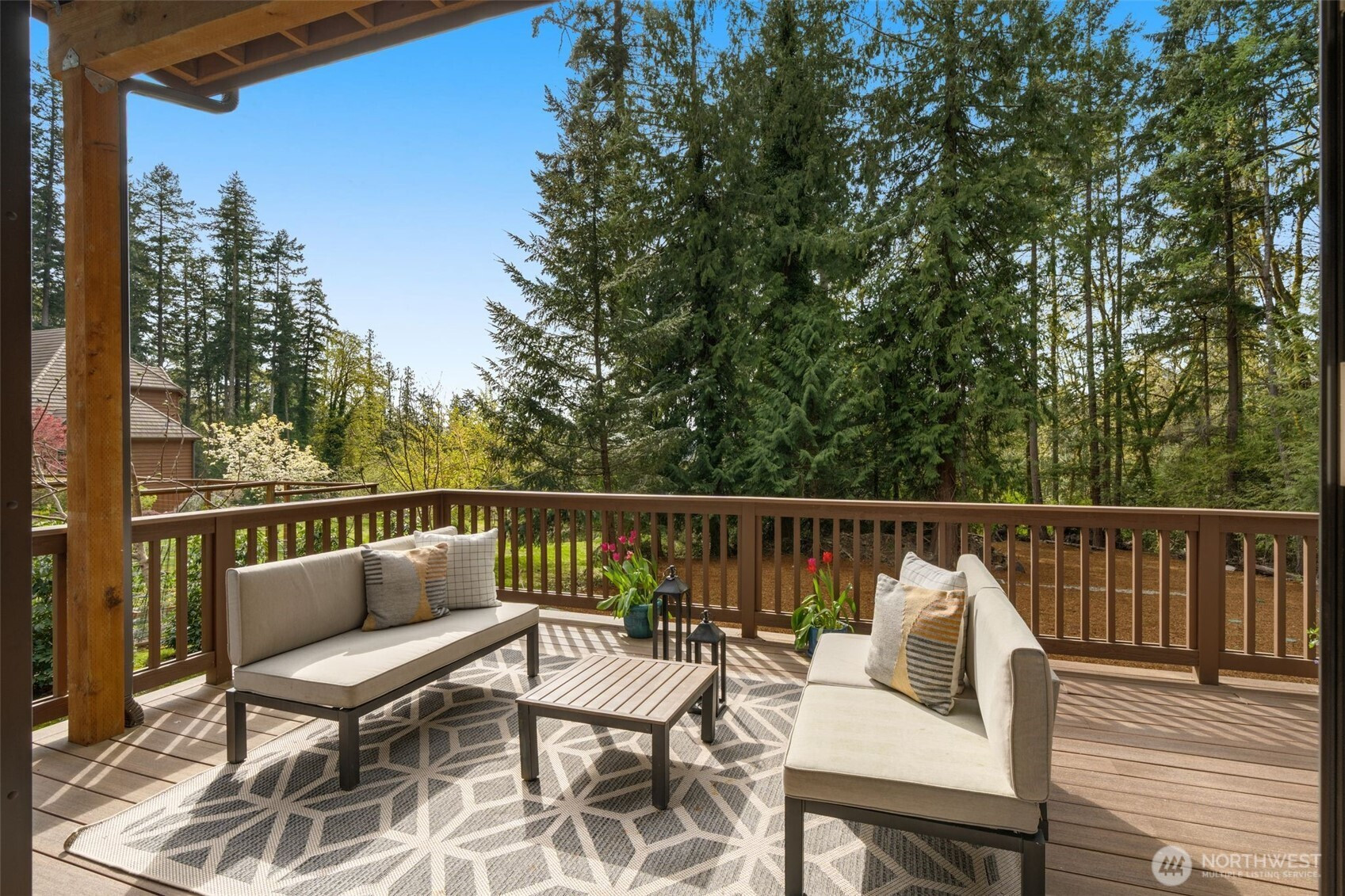Like-new, sun soaked, solar-powered, self-sustaining luxury home on 1.6+ lush acres designed for eco-friendly, multi-generational living. Includes a spacious ADU for guests or rental income—experience island living at its absolute best! . This exceptional property features a 2,900 sq ft main residence plus a private 800 sq ft 1BR/¾ BA ADU. The open floor plan is filled with natural light from southwest-facing windows and boasts 10-foot ceilings. High-end finishes include recycled glass countertops, luxury vinyl plank flooring, fiberglass windows, TimberTech decking, and a durable metal roof. Designed for energy-efficient living, the home is nearly self-sustaining with 48 solar panels, dual Tesla battery backup systems with automatic outage switching, two furnaces/heat pumps, two water heaters, and separate electrical panels for each dwelling. Additional features include A/C and a private well with mineral filtration and water softener. The 3 bedrooms all offer vaulted ceilings & peek-a-boo water & Olympic mountain views. Outside, enjoy a 400 sq ft west-facing deck perfect for entertaining and sunset evenings. Located less than ½ mile to Battle Point Park, 0.7 miles to Olympus Beach, and 1 mile to Grand Forest West, with the Seattle ferry just 15 minutes away, this is a rare opportunity to enjoy luxury, sustainability, and worry-free island living in one of Bainbridge Island’s most desirable neighborhoods.