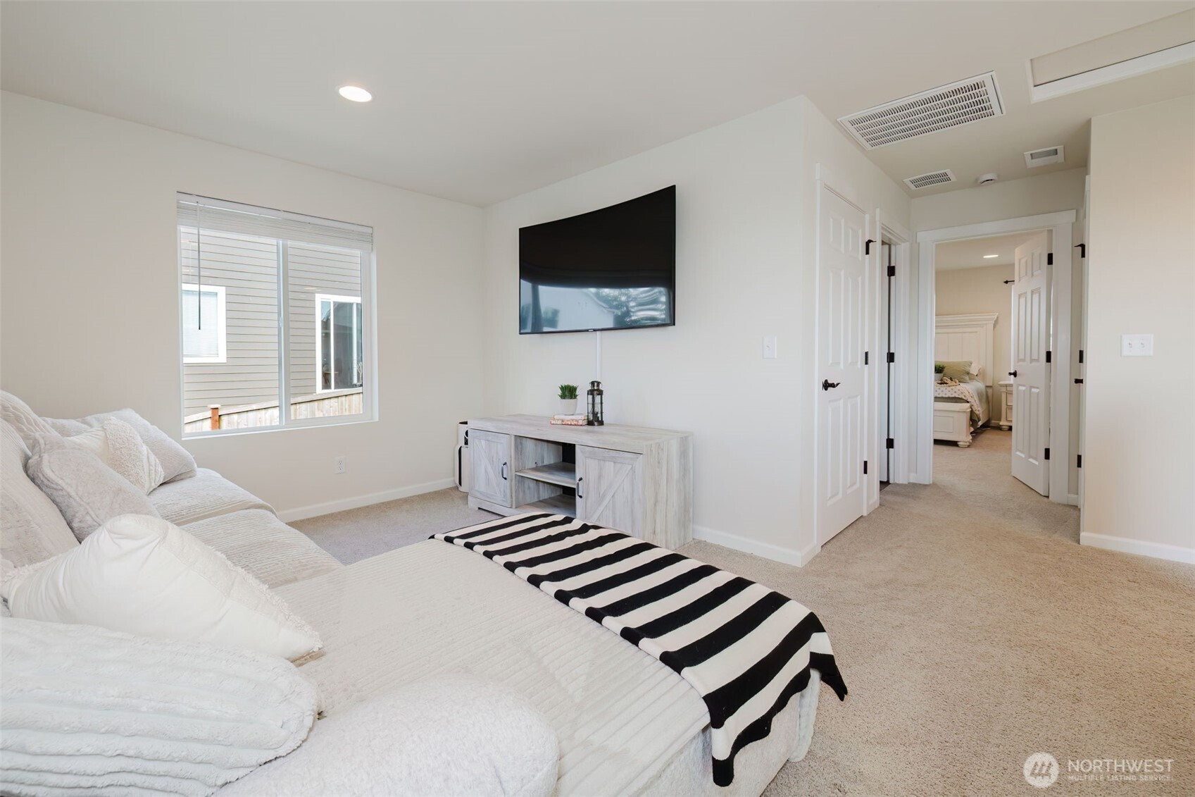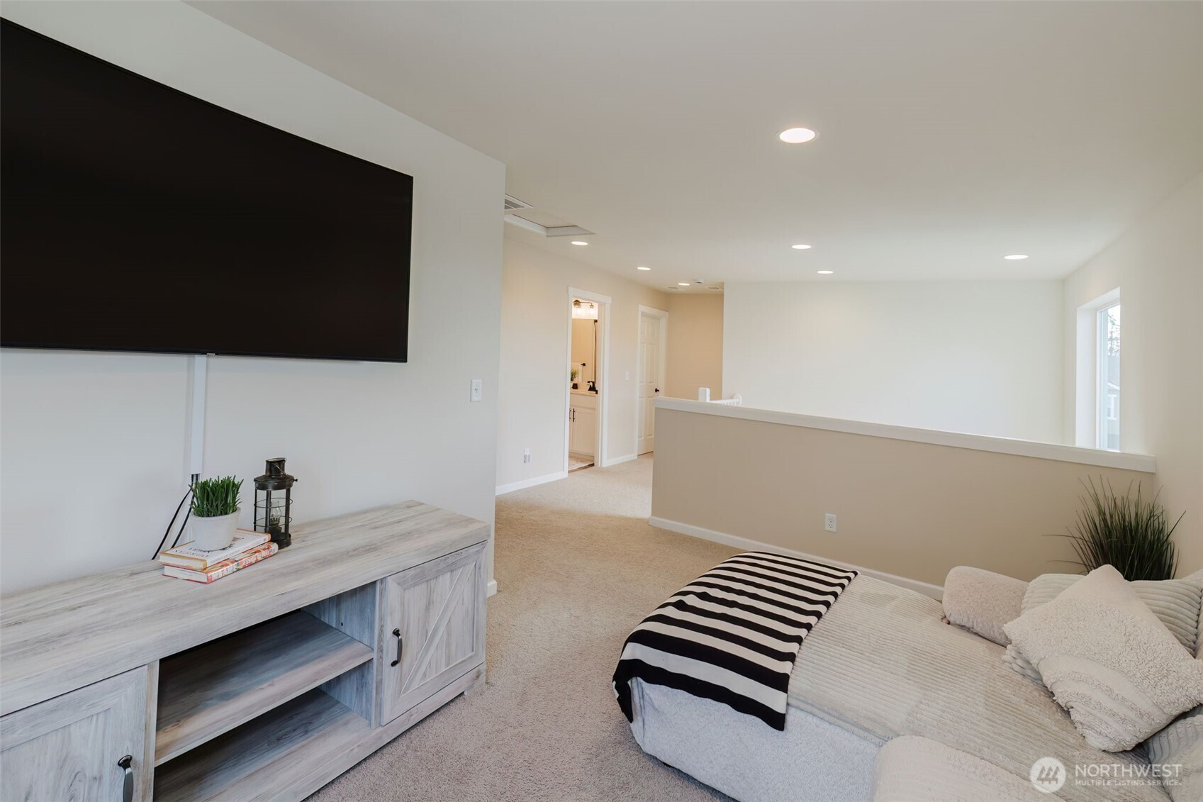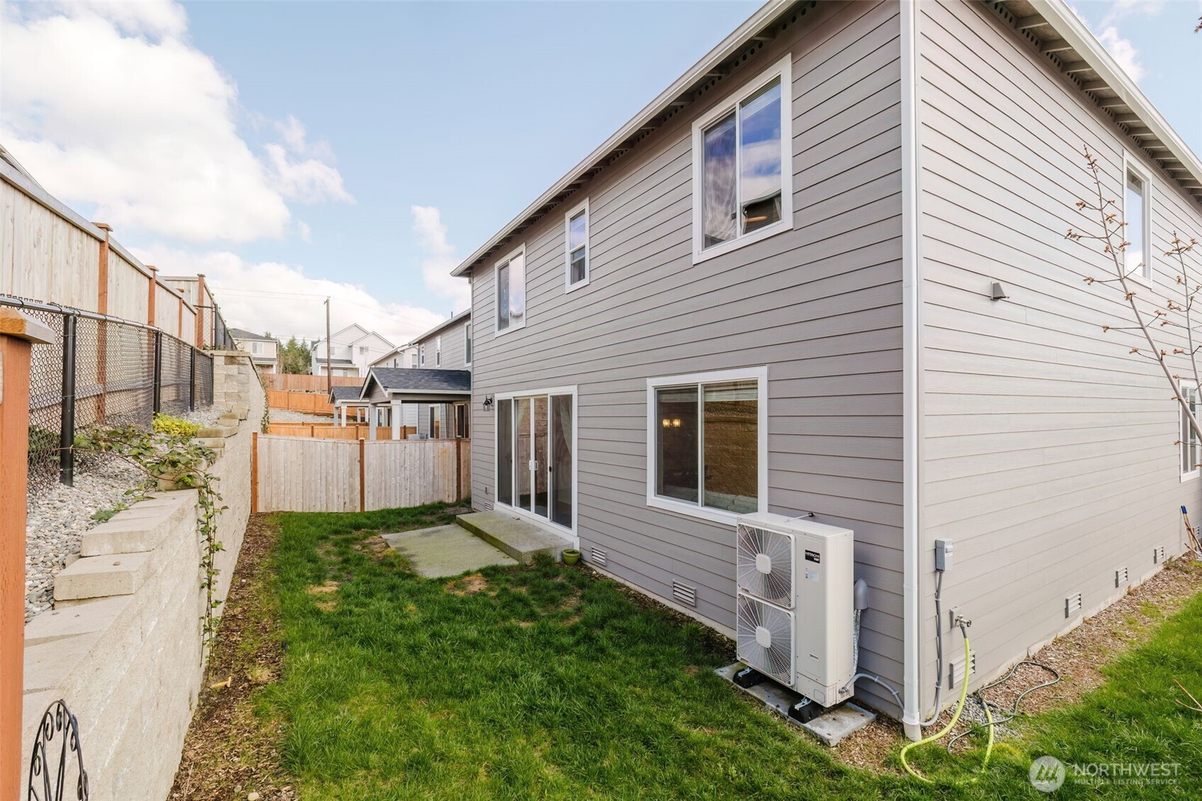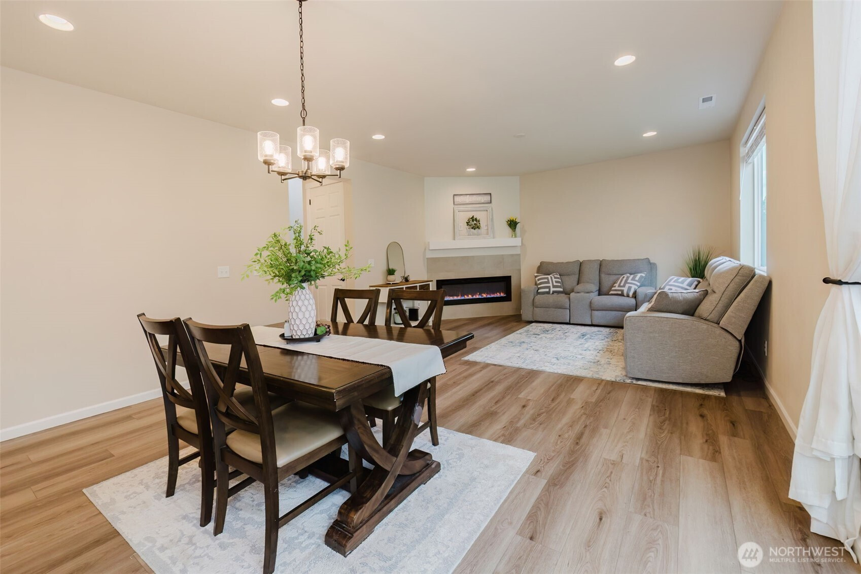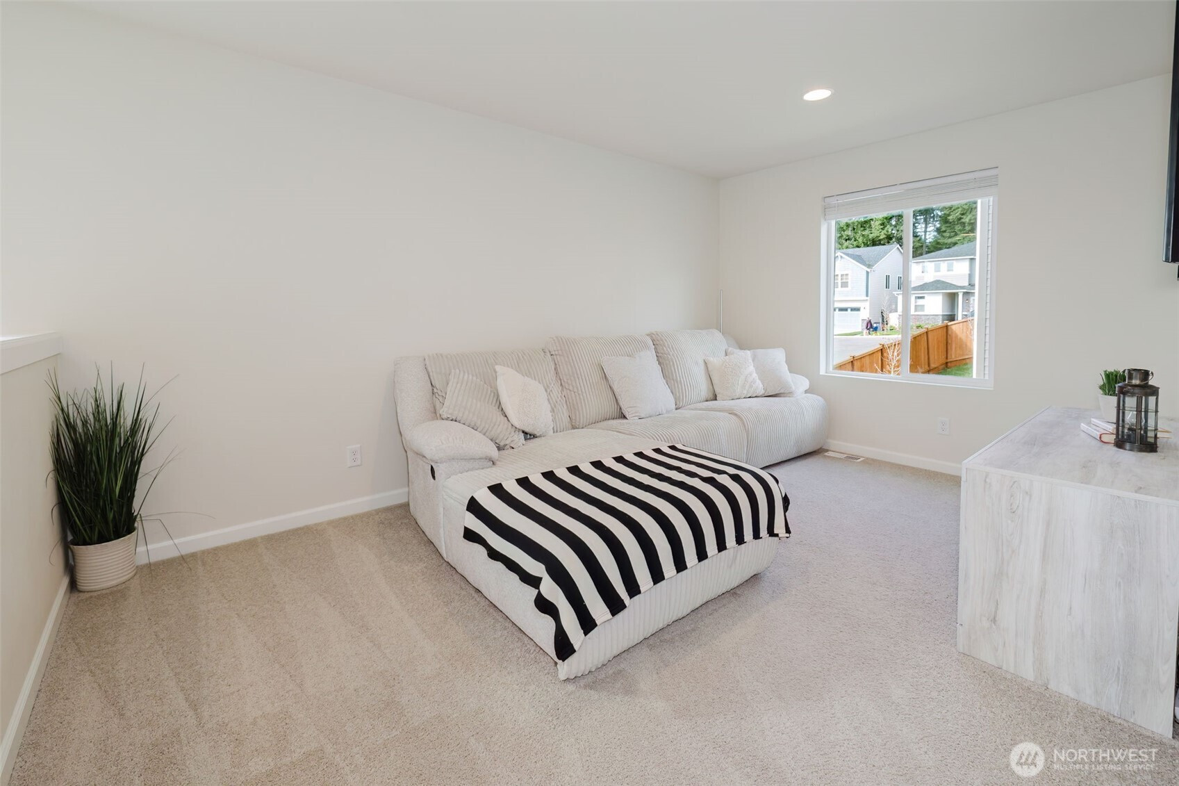 Nearly new and beautifully designed, this 2,263 sq ft home features custom interior finishes and a functional open-concept layout. The main level offers an inviting great room, versatile flex space ideal for an office, gym, or dining area, and a stunning kitchen with a center island and walk-in pantry, perfect for entertaining. Four-panel sliding glass doors open to the patio and fenced backyard for seamless indoor-outdoor living. Upstairs includes a spacious loft, convenient laundry, and a primary suite with walk-in closet and double vanity, along with two additional bedrooms each featuring walk-in closets. Located on a desirable corner lot in a sought-after neighborhood with parks and walking trails, and just minutes to bases, ferries, shopping, and Central Kitsap schools.