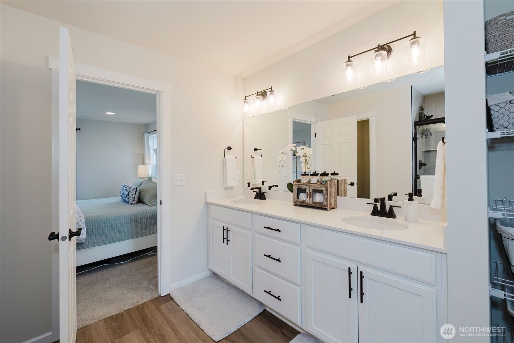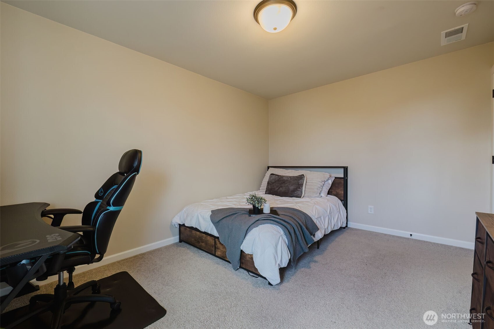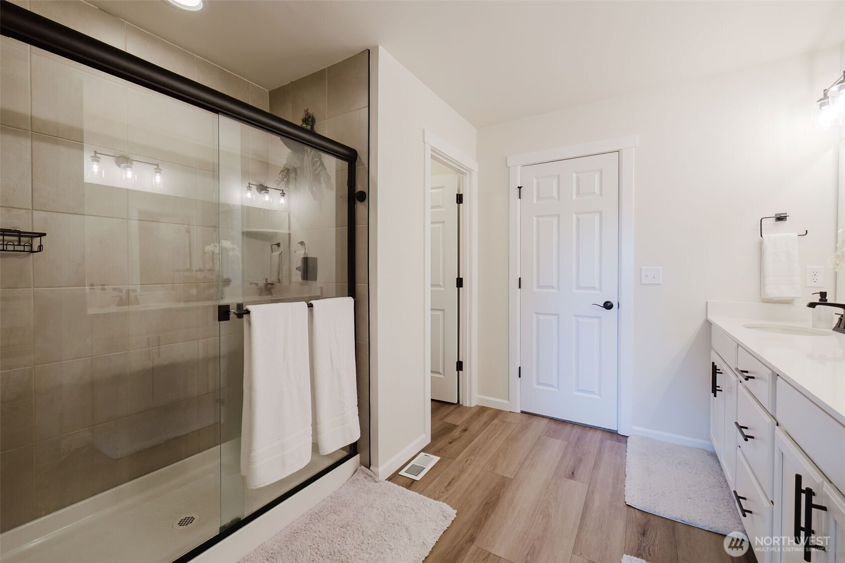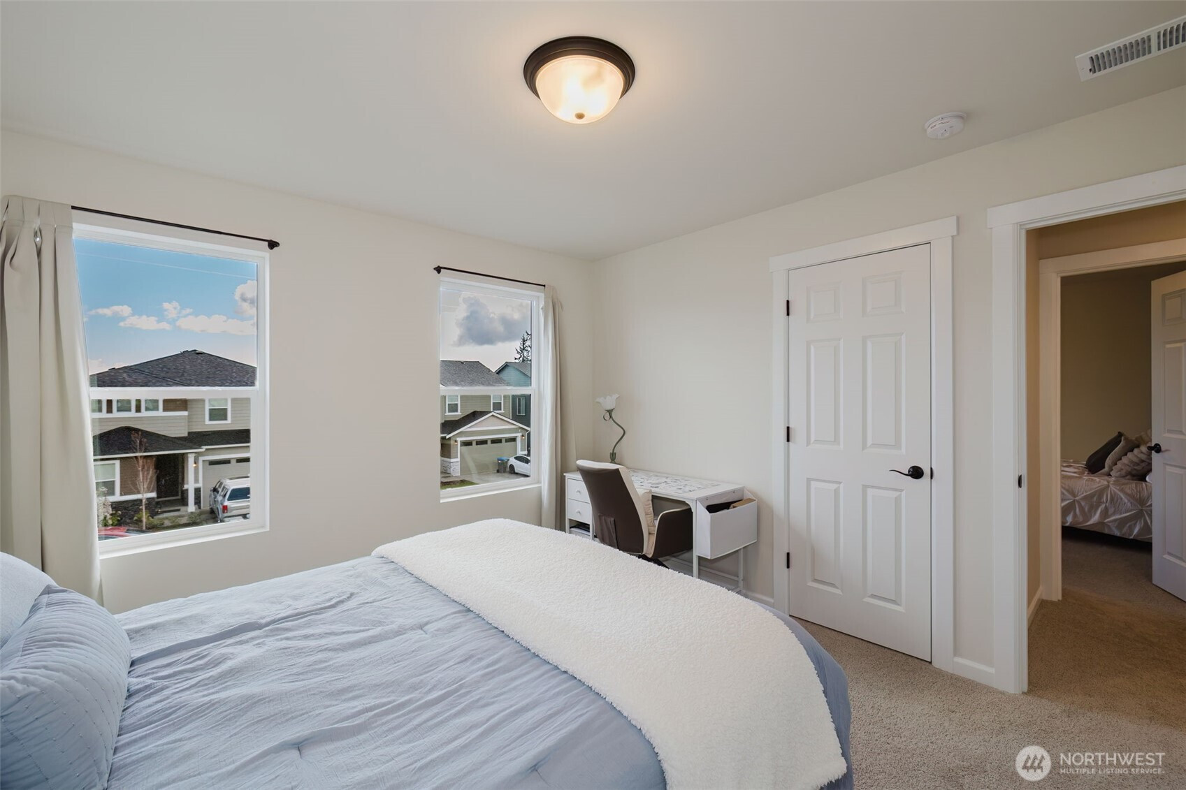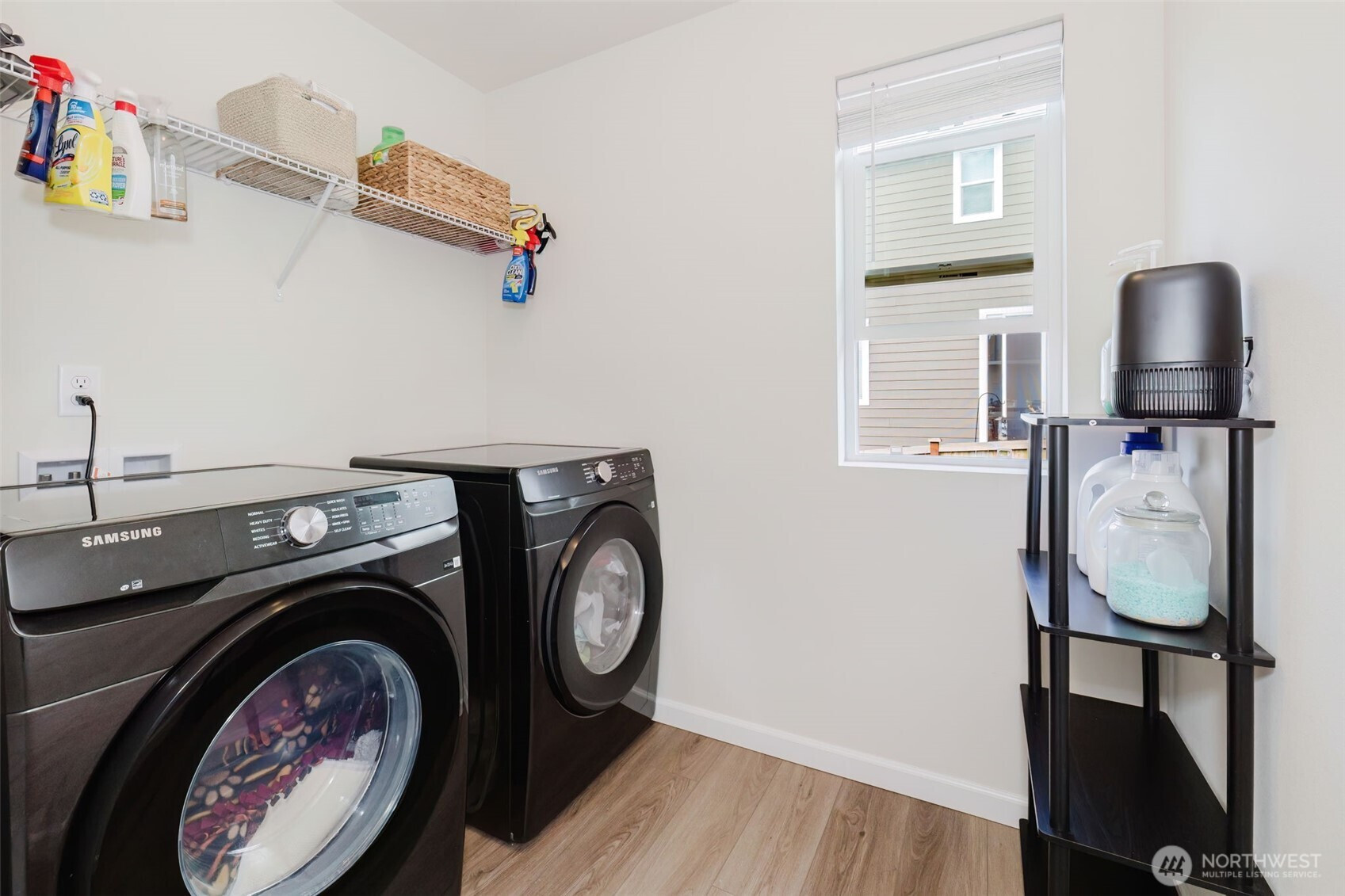 Nearly new and beautifully designed, this 2,263 sq ft home features custom interior finishes and a functional open-concept layout. The main level offers an inviting great room, versatile flex space ideal for an office, gym, or dining area, and a stunning kitchen with a center island and walk-in pantry, perfect for entertaining. Four-panel sliding glass doors open to the patio and fenced backyard for seamless indoor-outdoor living. Upstairs includes a spacious loft, convenient laundry, and a primary suite with walk-in closet and double vanity, along with two additional bedrooms each featuring walk-in closets. Located on a desirable corner lot in a sought-after neighborhood with parks and walking trails, and just minutes to bases, ferries, shopping, and Central Kitsap schools.