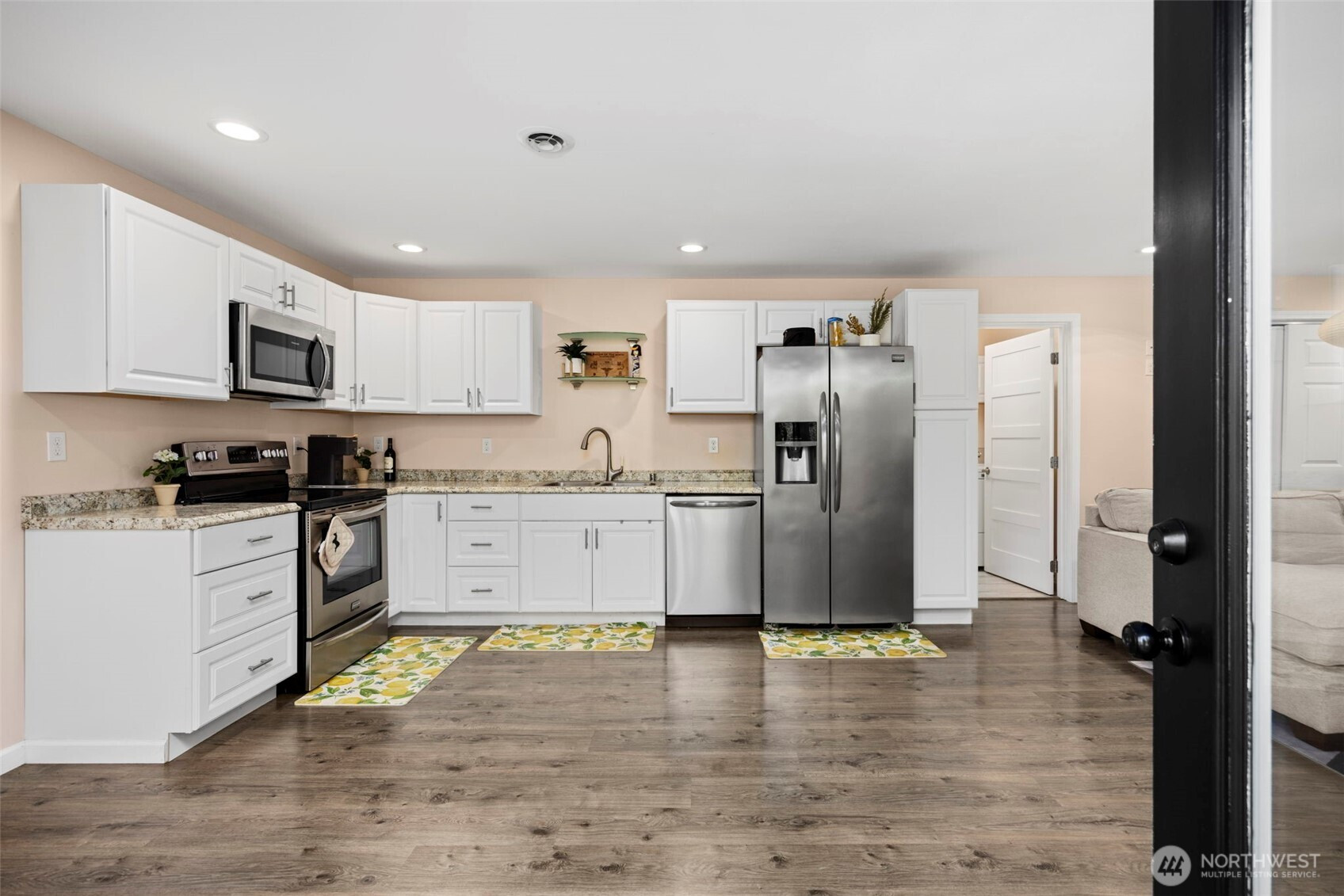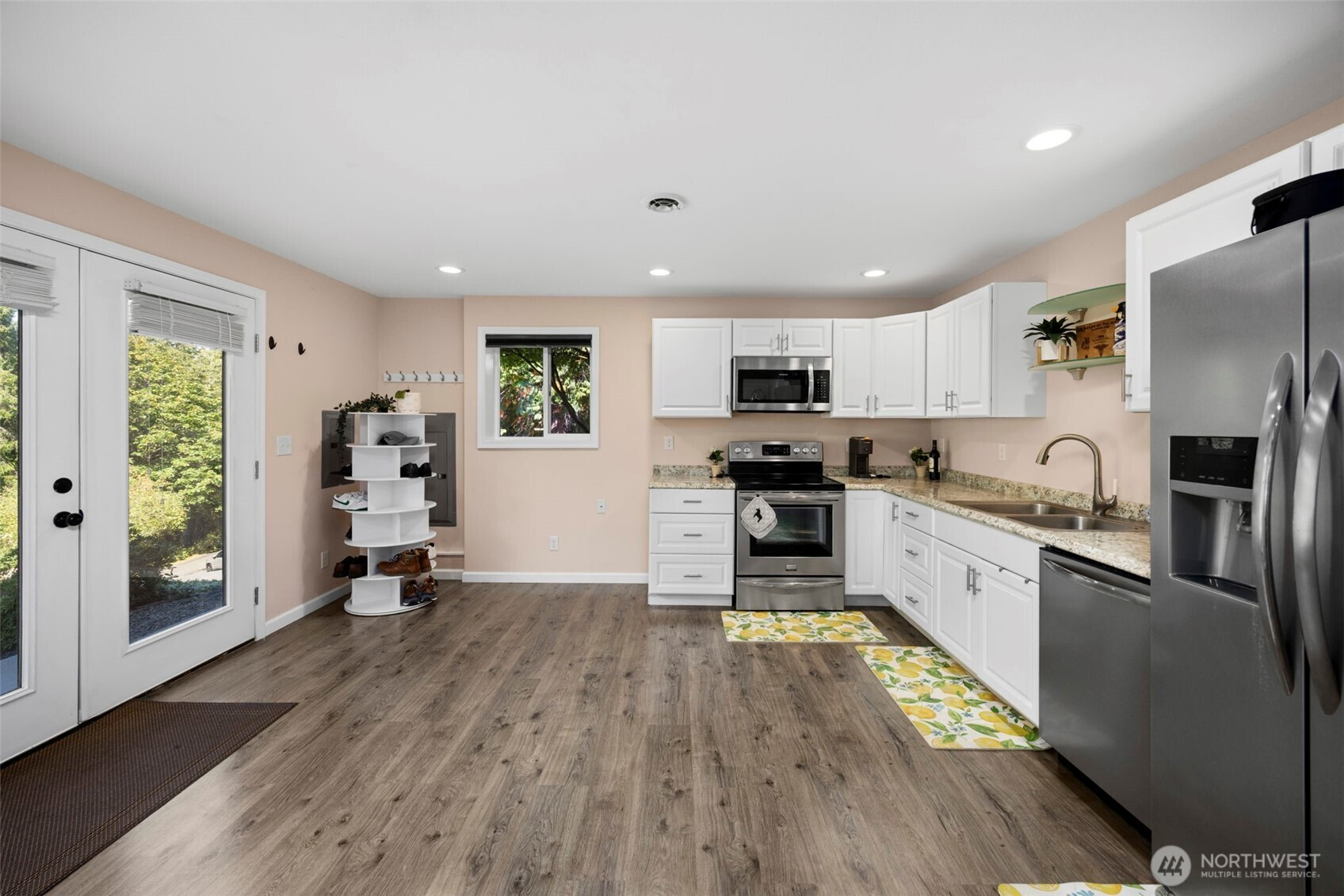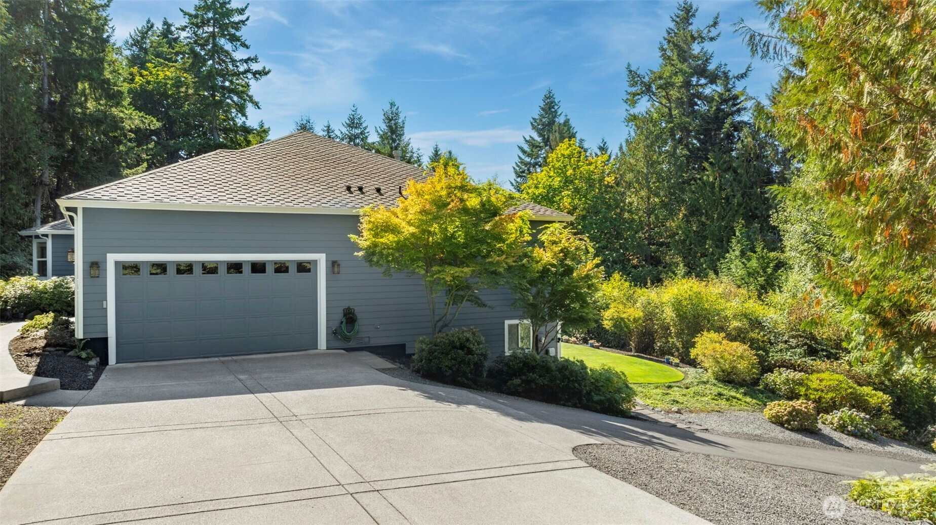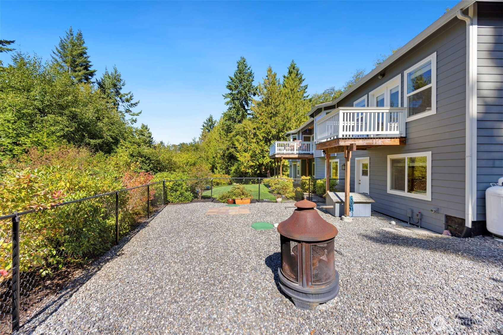 Beautiful, bright & airy 3 BR + Large Bonus, provides complete Main Level living + separate multi generational studio apartment. This home offers a thoughtful welcoming layout w/ vaulted ceilings on most of main floor. Sunny west facing Kitchen w/ granite counters, stainless appliances & skylights. Spacious living room w/gas fireplace & sun deck. Huge primary retreat w/ valued ceilings & private deck. Bright ensuite w/ gorgeous newly updated custom shower, soaking tub, substantial dual closets & skylight. Lower level family room w/ gas fireplace + 3rd BR & full bath. Studio Apartment with private entrance - Kitchen, 3/4 bath & laundry. Huge storage area on lower level. Large fenced dog run. A/C for warm summer days. Enjoy salt air breezes from this gorgeous wooded acre (cocooned by 3 acres of open space), just mins from Hood Canal, Seabeck marina & Silverdale amenities. Award winning CK Schools.