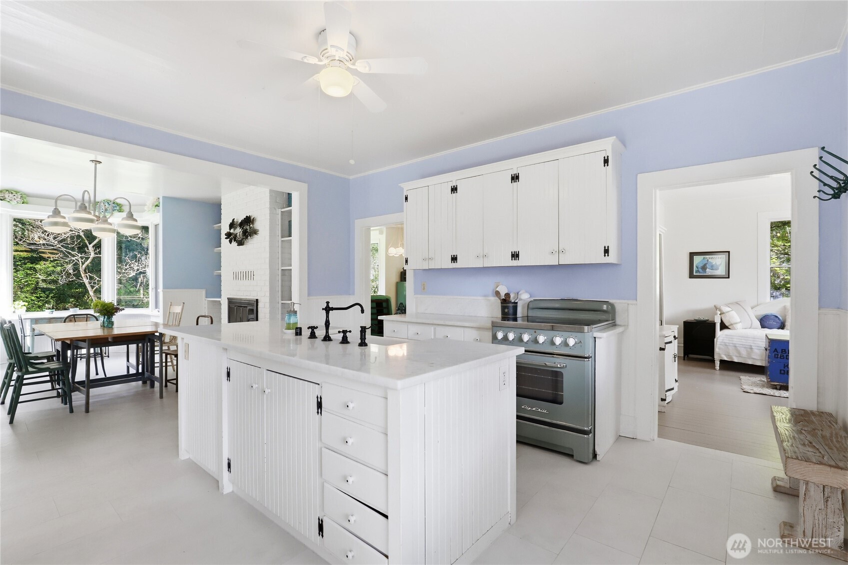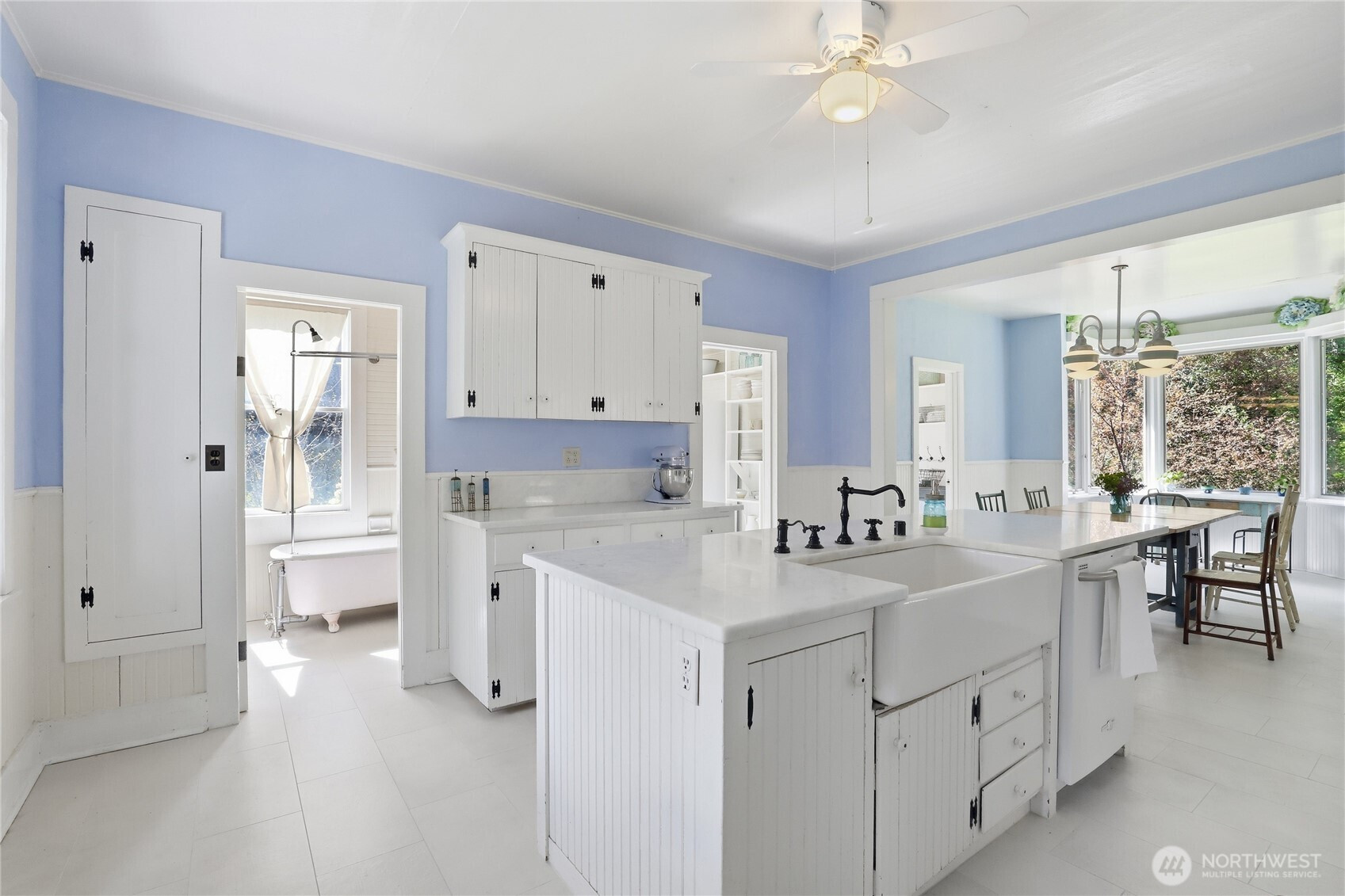 Experience a rare fusion of heritage and horticulture on this 1.6-acre Bainbridge Island sanctuary. Centered by a stunning 1906 home, this estate features 4 bedrooms and a guest house, balancing historic soul with master-class modern design. The home is a curated gallery of high-end finishes. The primary bath: A true masterpiece featuring hand-crafted tile by artist Cha-Rie Tang, Victoria and Albert bathtub, Watermark Brooklyn faucets, and Schoolhouse Electric lighting. The kitchen is designed for the culinary enthusiast with genuine marble countertops, and a signature Big Chill range. The grounds offer an unparalleled "farm-to-table" lifestyle. Harvest from an orchard of cherry, plum, apricot, pluot, apple, and pear trees, plus grape and kiwi vines. The berry harvest includes strawberry, raspberry, blueberry, mulberry, honeyberry, currant, and pineapple guava. Lush Japanese maples, vegetable beds, and roses in every color ensure fresh-cut flowers for your table year-round. Modern infrastructure meets peace of mind with zone heating (upstairs heat pump/furnace and separate downstairs furnace) and comprehensive earthquake retrofitting in the basement. A historic 1906 retreat for those who value art, nature, and island serenity. Mortgage savings may be available for buyers of this listing.