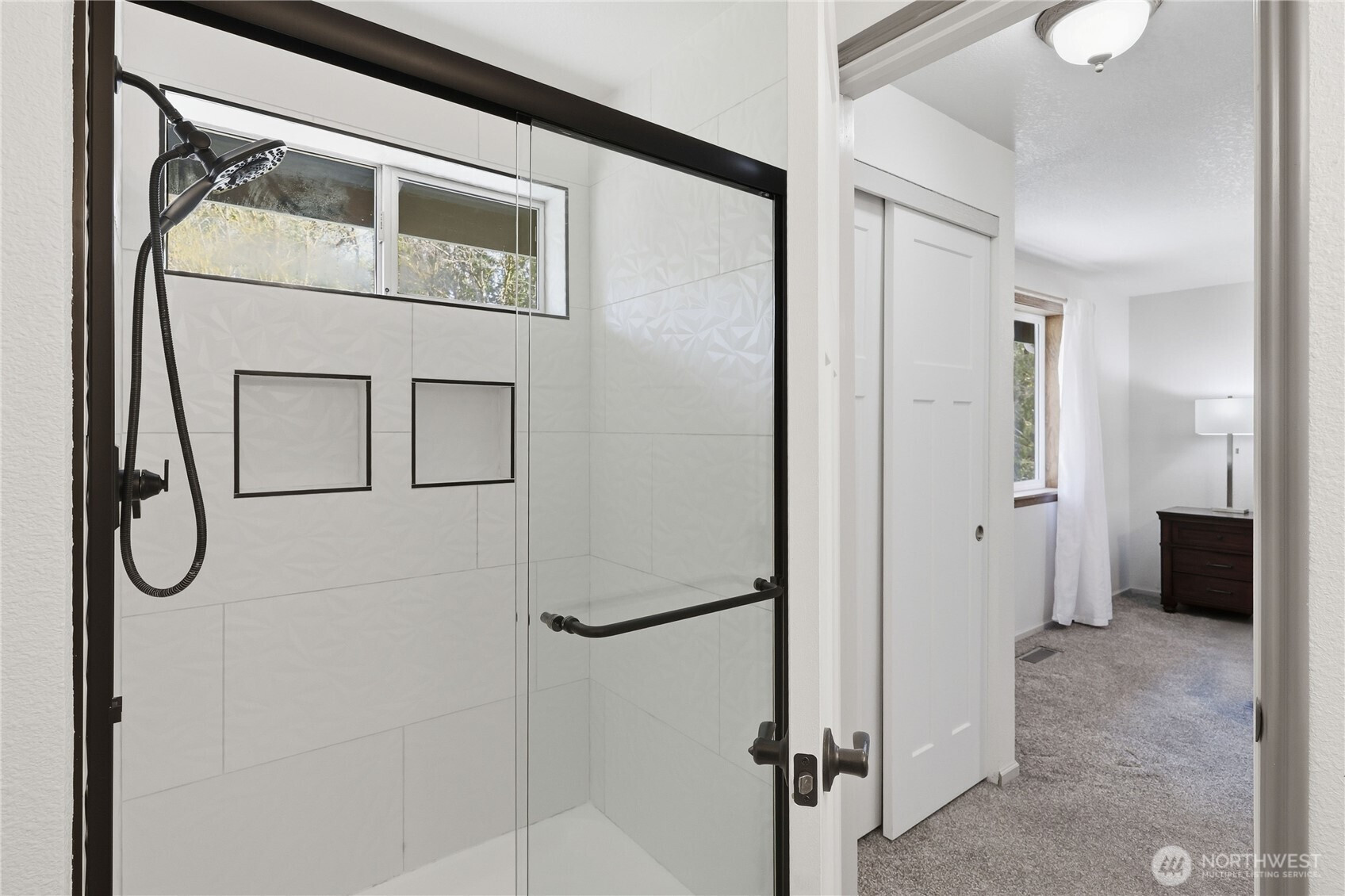 Private park-like property at the end of the cul-de-sac in Central Kitsap. Beautiful natural lighting in this tri-level three-bedroom home with vaulted ceilings, living room with gas fireplace insert with brick/wood surround, custom kitchen cabinets with pull out drawers. Open floor plan from the kitchen to family room makes great space for entertaining. Separate laundry room and half bathroom with lots of storage. Primary bedroom updated bathroom with beautiful tile work with walk-in shower, all this with views of the back yard. Two additional bedrooms and updated full bathroom. Two car attached garage with work area. Large covered back deck to enjoy in all seasons surrounded in fenced back yard. Storage shed (10x16), raised flower and garden beds and room for more all next to the green belt. Space on the side yard to park RV. Easy access to all bases, and shopping.