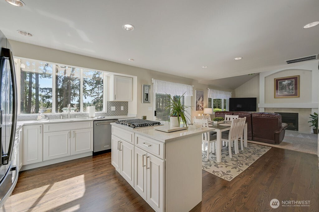 Welcome to this beautifully updated 4-bedroom, 2.5-bath home in the highly sought-after Eastwind neighborhood of Silverdale! Walk in and enjoy the spacious main floor, with 2 living rooms, a formal dining room for entertaining, a beautiful eat-in kitchen for a cozy feeling, and a separate office. Upstairs you will find all of the generous sized bedrooms! Thoughtfully refreshed throughout, this home features a stylishly remodeled kitchen, updated bathrooms, and new flooring that create a warm, modern feel. Major system upgrades—including the driveway, roof, fully encapsulated crawlspace, new furnace, and new hot water tank—offer peace of mind for years to come. Filled with abundant natural light from large windows throughout, the home feels bright and inviting in every room. Situated on a spacious, private lot, there’s plenty of room to relax, entertain, or enjoy the outdoors. A perfect blend of comfort, quality, and location—this is one you won’t want to miss!
