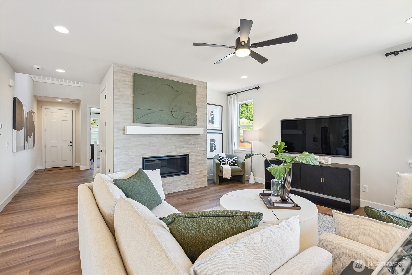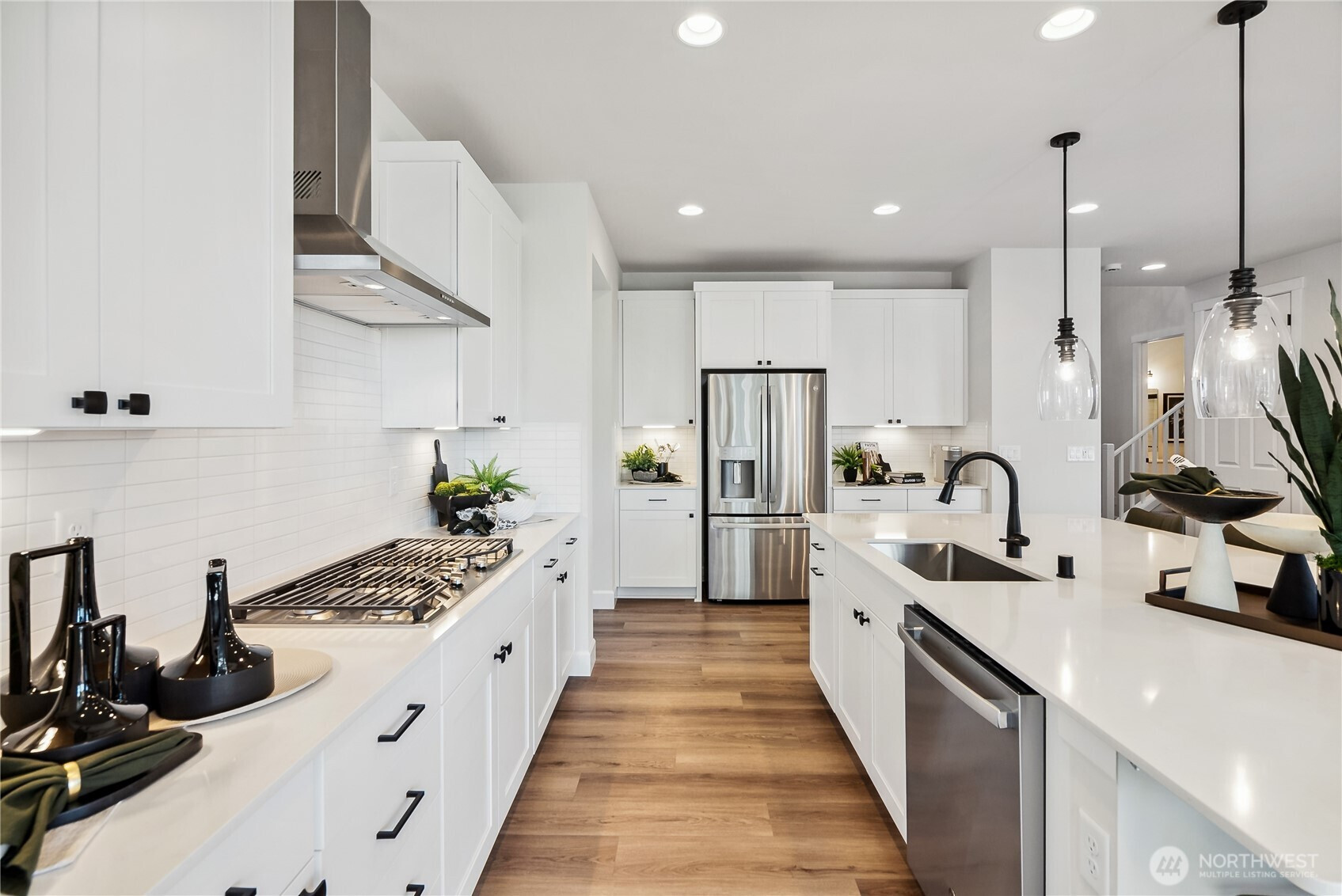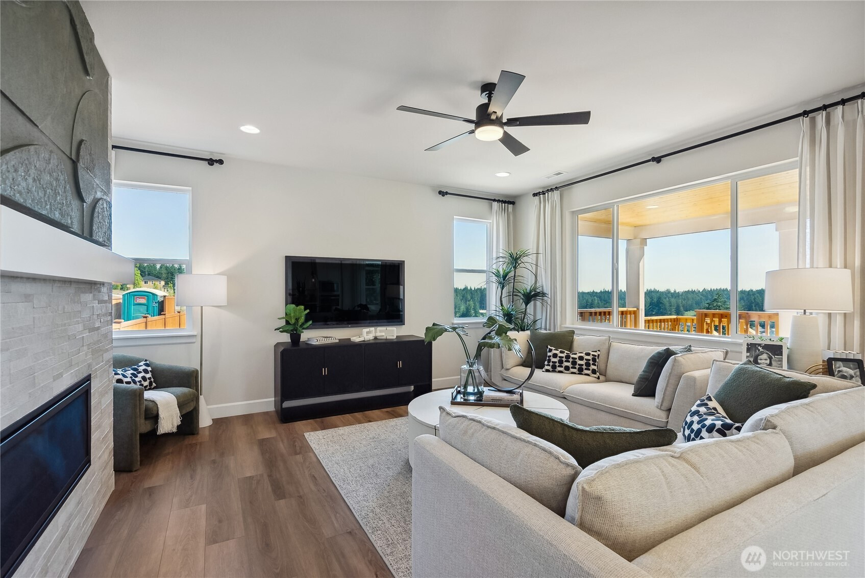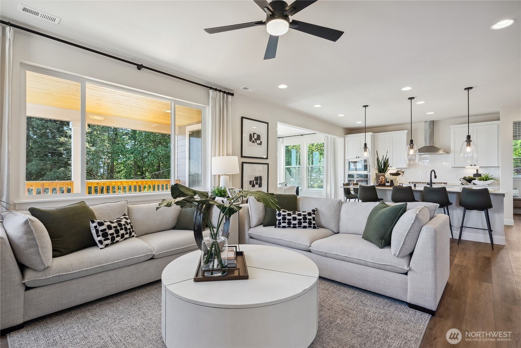 Now available for purchase—the stunning model home on Lot #111 at Sterling Hills in Silverdale featuring the highly sought-after Coronado plan. This is a rare opportunity to own a professionally designed showcase home, thoughtfully curated with elevated finishes and custom touches throughout. From designer pendant lighting and statement sconces to upgraded ceiling fans and beautifully executed accent walls, every detail has been intentionally selected to create a warm, modern, and inviting atmosphere that truly sets this home apart from the rest of the community. The main floor offers an open-concept layout with a spacious great room, chef-inspired kitchen, and sunroom dining area, seamlessly flowing to the adjacent covered patio—perfect for everyday living and entertaining. An additional bedroom and bath on the main level provide flexibility for guests or multi-generational living. Upstairs, enjoy a versatile loft and three generously sized bedrooms, including a luxurious primary suite featuring a spa-like bath with soaking tub, walk-in shower, and expansive walk-in closet. Fully completed and move-in ready, this one-of-a-kind model home combines thoughtful design, premium upgrades, and functional living—all in one exceptional package. Come experience the difference—this is not just a home, it’s the standard. Ask about special financing. If working with a licensed broker, please register your broker on your first visit per site registration policy.