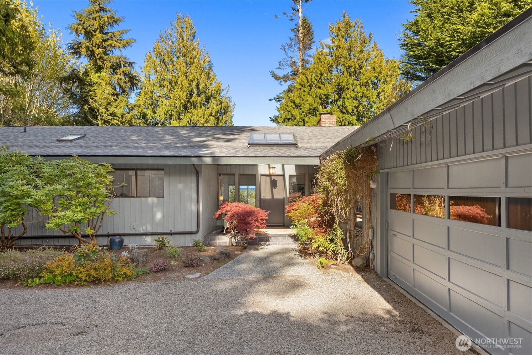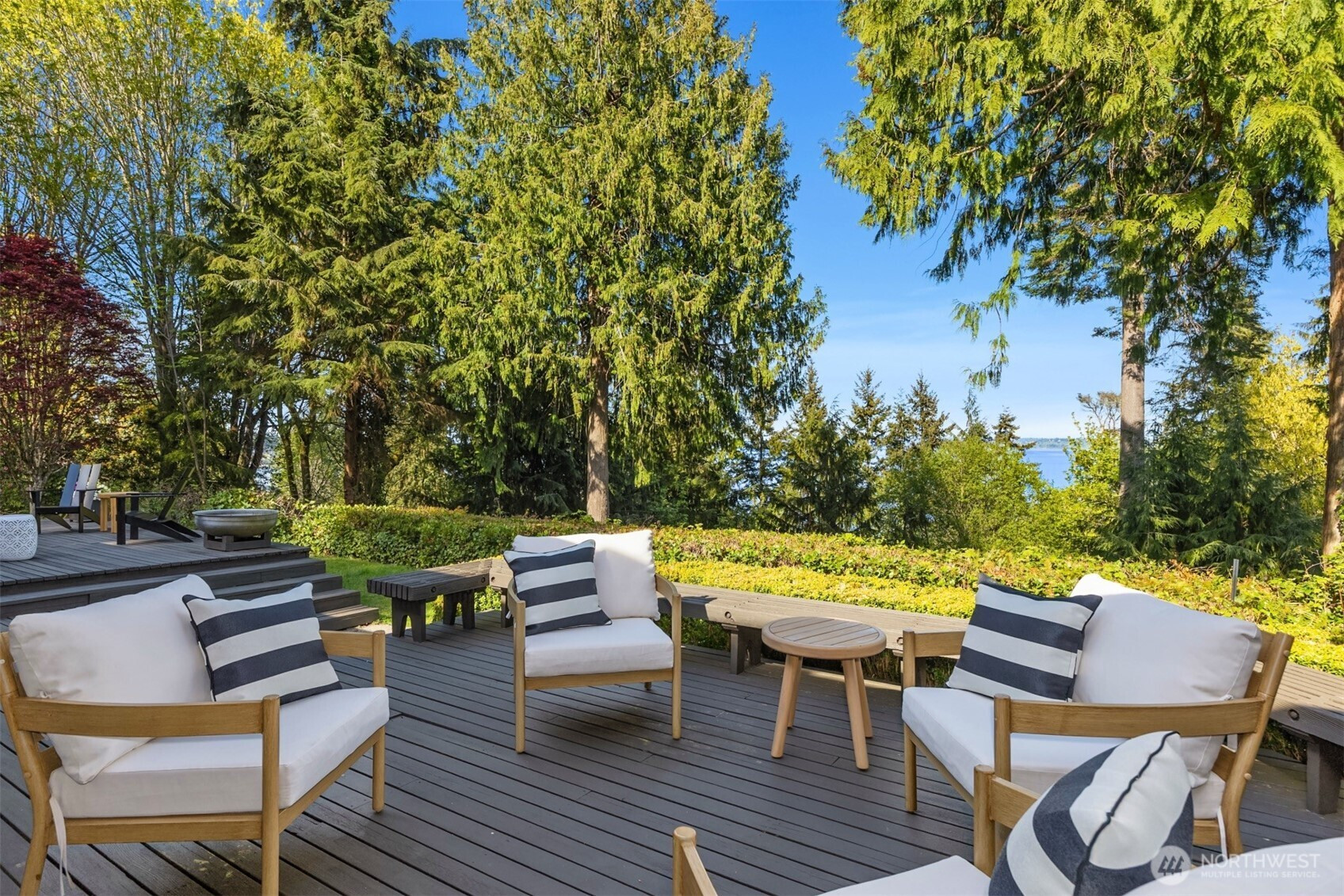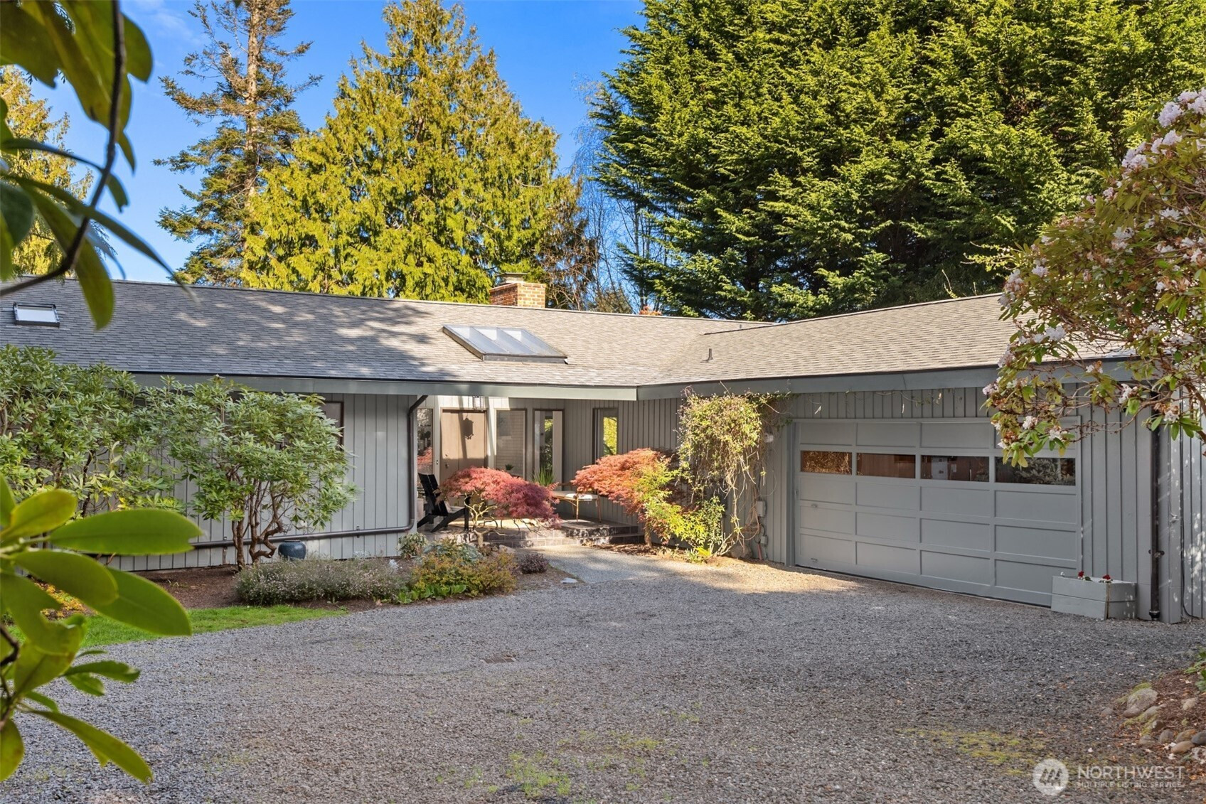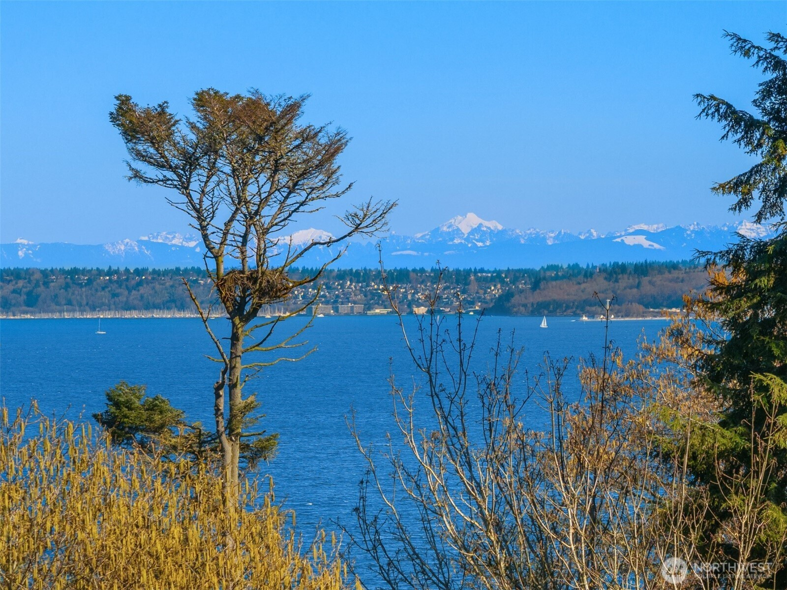 Tucked within a private waterfront neighborhood in the Wing Point community, this rare rambler offers an exceptional blend of privacy, scenery & everyday ease— all just moments from DT Winslow and the Seattle ferry. Surrounded by nearby parks, beach accesses & miles of walking & biking routes, the coveted island lifestyle is celebrated daily. Spanning 2 separate half-acre parcels, the property feels both expansive & secluded. Established landscaping frames a sun-filled yard, while the forward parcel preserves views across Puget Sound to the Cascade Mountains, with subtle glimpses of the Seattle skyline. A defining feature is the towering evergreen w/a generational eagle’s nest, where the spread lives and returns, again & again. Inside, the home is spacious & thoughtfully oriented to capture the views. A classic single-level layout offers safety & ease, w/light-filled gathering spaces & large windows & sliders that draw in the surroundings. A full-length view deck encourages a natural indoor-outdoor connection. The generous kitchen features ample cabinetry & workspace, flowing easily into the breakfast nook, dining area & family room. 3 bedrooms include a primary suite w/direct deck access & beautiful views. Attached 2-car garage & extra parking accommodate a boat, RV, or guests. Move-in ready w/stylish appeal, this home also offers the opportunity to elevate & personalize over time. A picture-perfect setting paired w/enduring quality & potential— a truly special offering.
