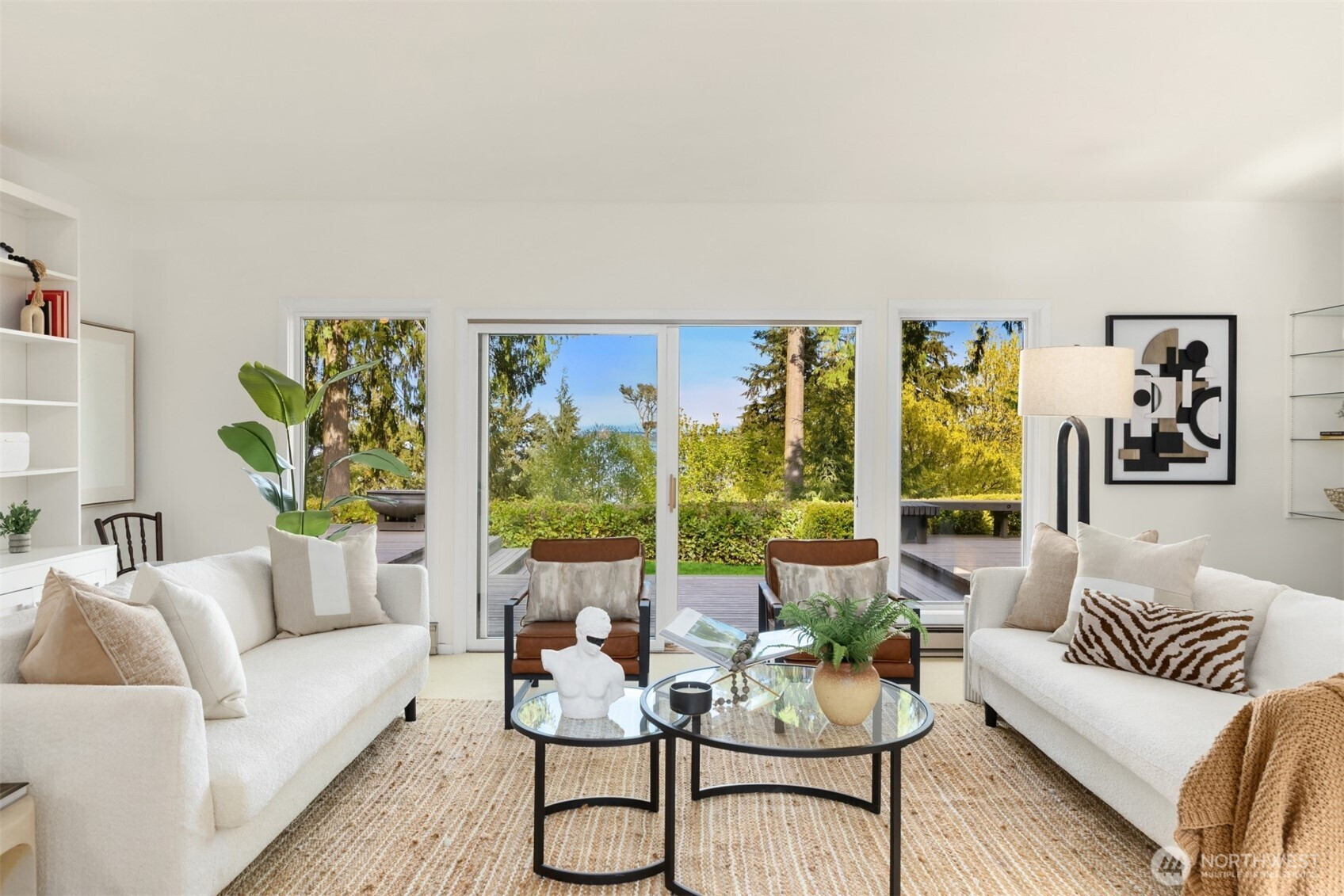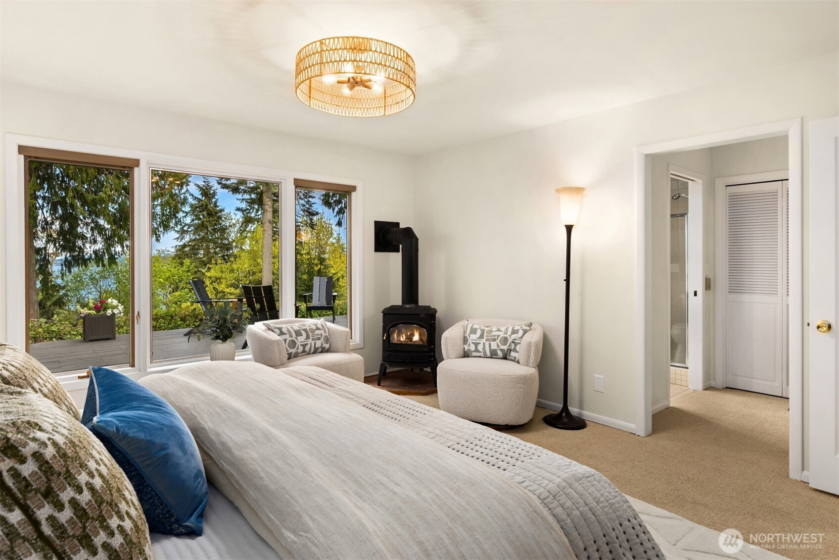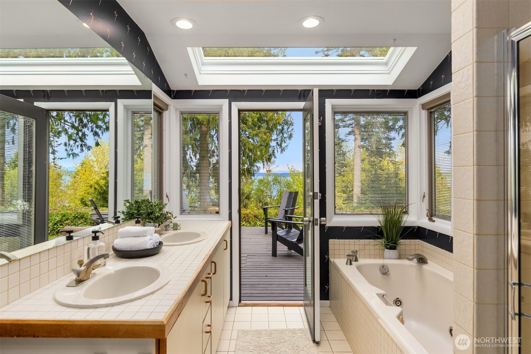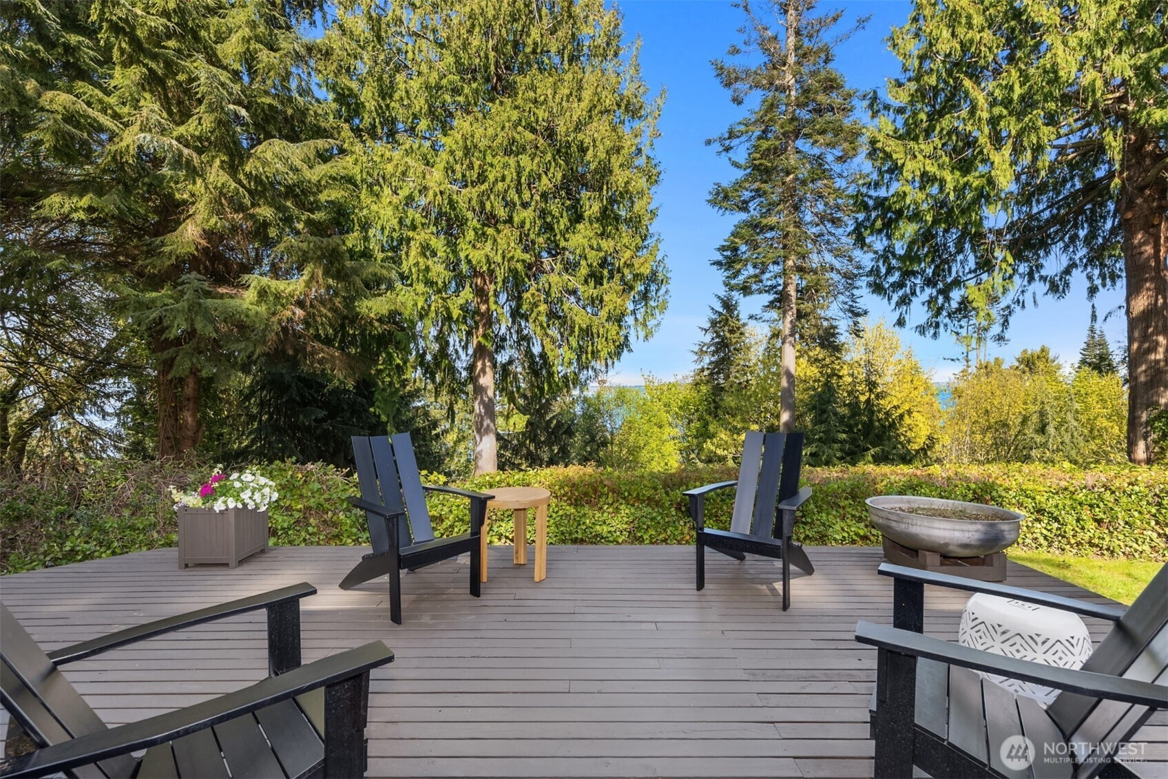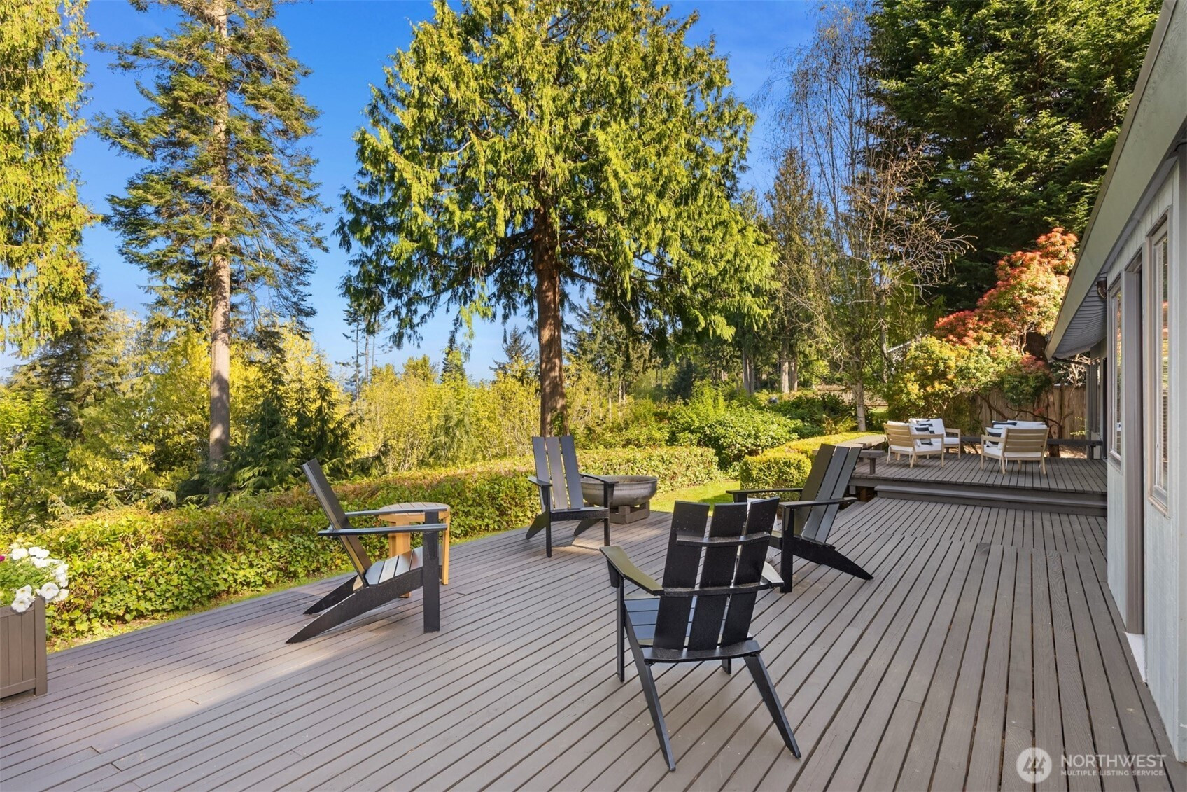 Tucked within a private waterfront neighborhood in the Wing Point community, this rare rambler offers an exceptional blend of privacy, scenery & everyday ease— all just moments from DT Winslow and the Seattle ferry. Surrounded by nearby parks, beach accesses & miles of walking & biking routes, the coveted island lifestyle is celebrated daily. Spanning 2 separate half-acre parcels, the property feels both expansive & secluded. Established landscaping frames a sun-filled yard, while the forward parcel preserves views across Puget Sound to the Cascade Mountains, with subtle glimpses of the Seattle skyline. A defining feature is the towering evergreen w/a generational eagle’s nest, where the spread lives and returns, again & again. Inside, the home is spacious & thoughtfully oriented to capture the views. A classic single-level layout offers safety & ease, w/light-filled gathering spaces & large windows & sliders that draw in the surroundings. A full-length view deck encourages a natural indoor-outdoor connection. The generous kitchen features ample cabinetry & workspace, flowing easily into the breakfast nook, dining area & family room. 3 bedrooms include a primary suite w/direct deck access & beautiful views. Attached 2-car garage & extra parking accommodate a boat, RV, or guests. Move-in ready w/stylish appeal, this home also offers the opportunity to elevate & personalize over time. A picture-perfect setting paired w/enduring quality & potential— a truly special offering.