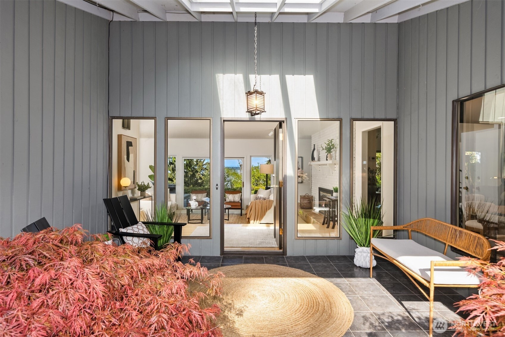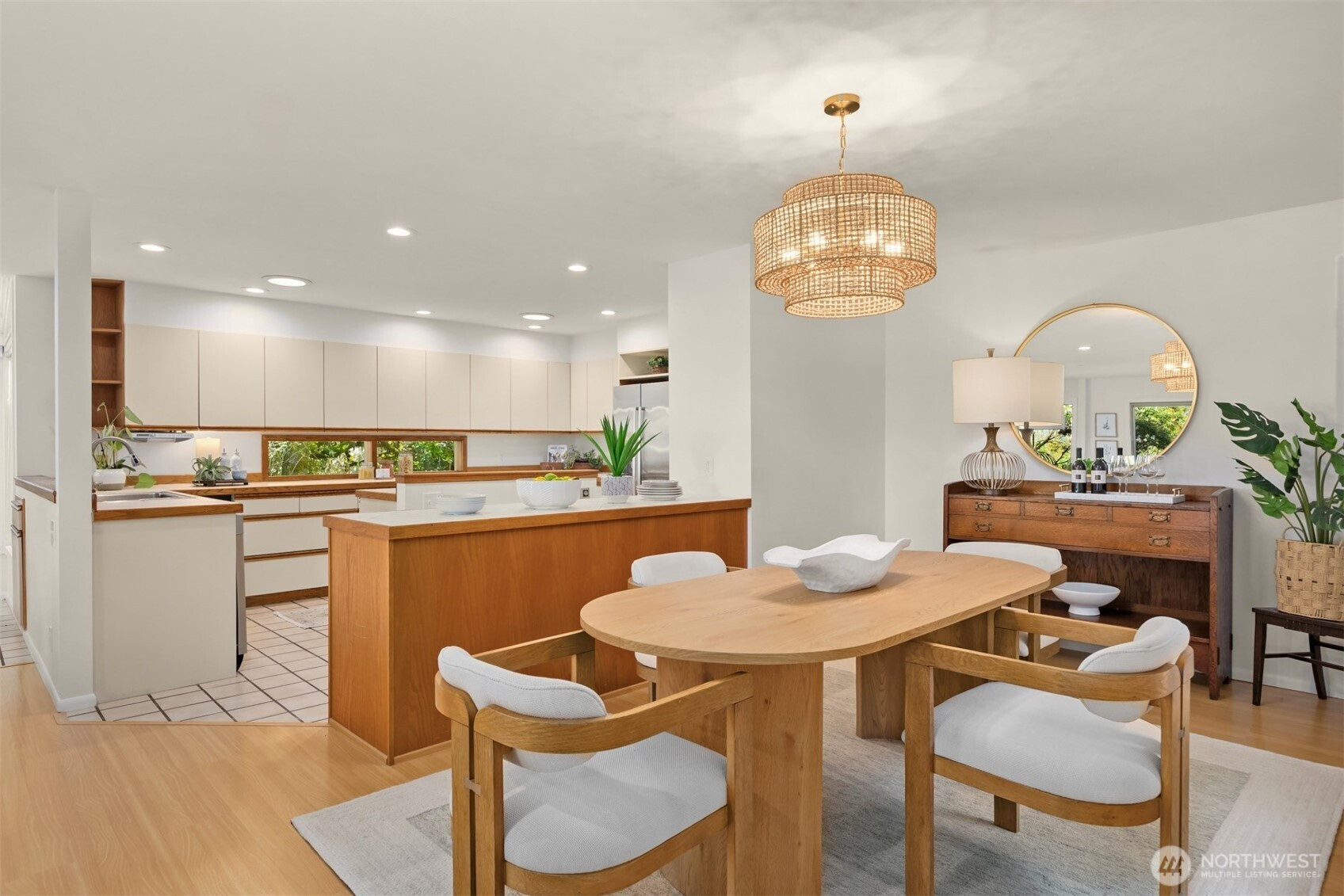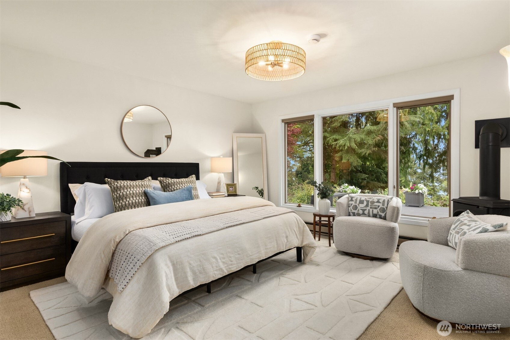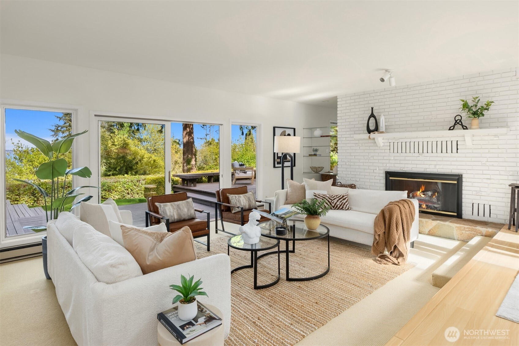 Tucked within a private waterfront neighborhood in the Wing Point community, this rare rambler offers an exceptional blend of privacy, scenery & everyday ease— all just moments from DT Winslow and the Seattle ferry. Surrounded by nearby parks, beach accesses & miles of walking & biking routes, the coveted island lifestyle is celebrated daily. Spanning 2 separate half-acre parcels, the property feels both expansive & secluded. Established landscaping frames a sun-filled yard, while the forward parcel preserves views across Puget Sound to the Cascade Mountains, with subtle glimpses of the Seattle skyline. A defining feature is the towering evergreen w/a generational eagle’s nest, where the spread lives and returns, again & again. Inside, the home is spacious & thoughtfully oriented to capture the views. A classic single-level layout offers safety & ease, w/light-filled gathering spaces & large windows & sliders that draw in the surroundings. A full-length view deck encourages a natural indoor-outdoor connection. The generous kitchen features ample cabinetry & workspace, flowing easily into the breakfast nook, dining area & family room. 3 bedrooms include a primary suite w/direct deck access & beautiful views. Attached 2-car garage & extra parking accommodate a boat, RV, or guests. Move-in ready w/stylish appeal, this home also offers the opportunity to elevate & personalize over time. A picture-perfect setting paired w/enduring quality & potential— a truly special offering.