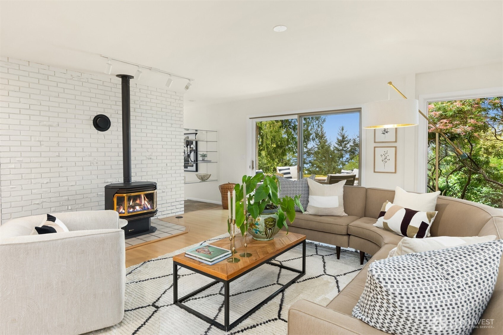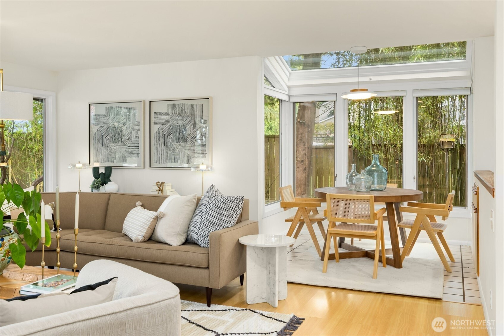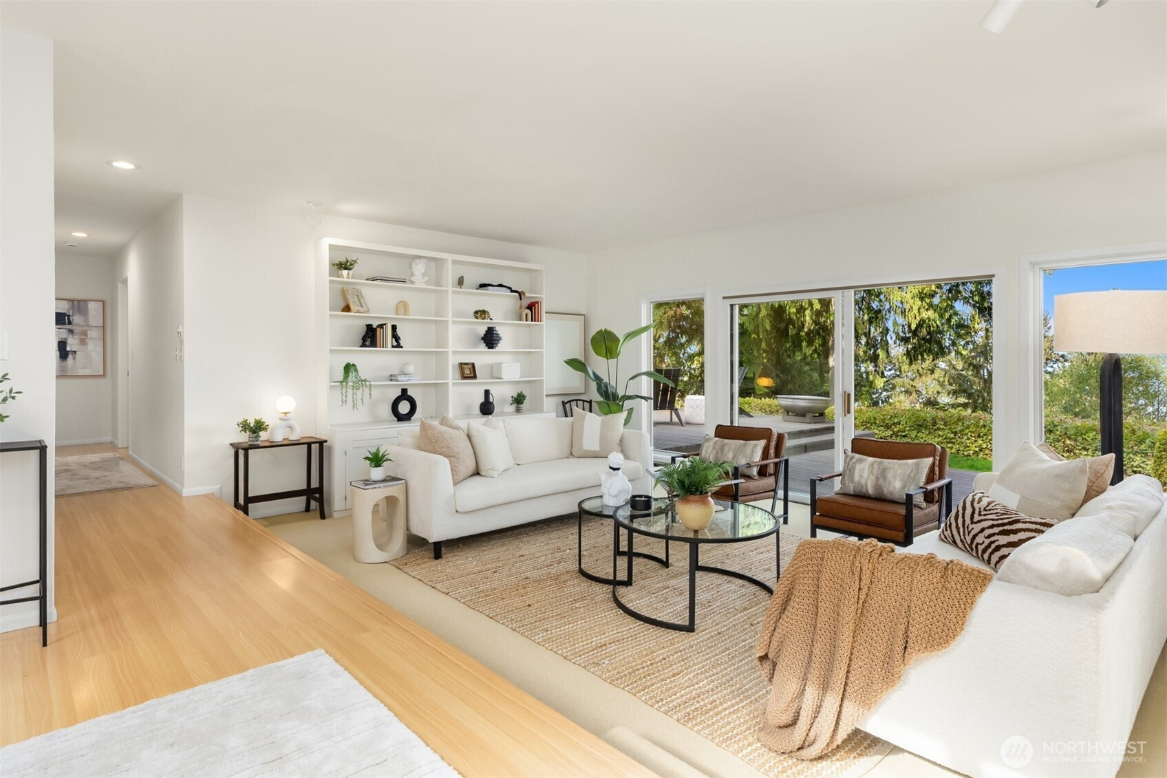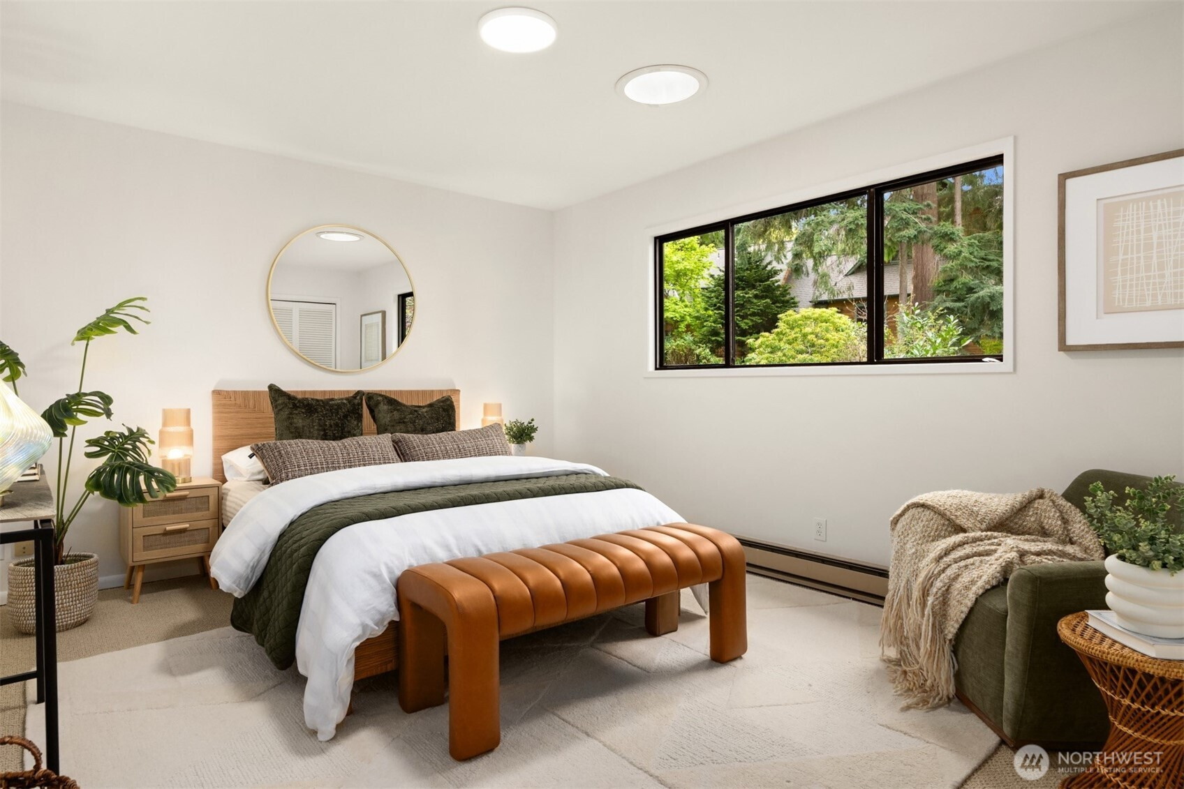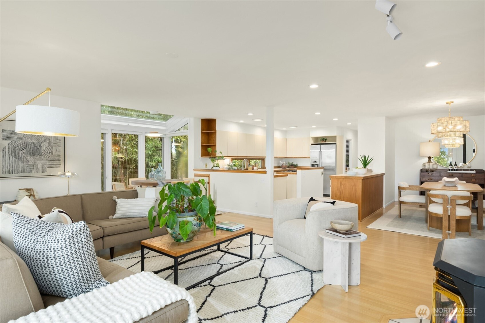 Tucked within a private waterfront neighborhood in the Wing Point community, this rare rambler offers an exceptional blend of privacy, scenery & everyday ease— all just moments from DT Winslow and the Seattle ferry. Surrounded by nearby parks, beach accesses & miles of walking & biking routes, the coveted island lifestyle is celebrated daily. Spanning 2 separate half-acre parcels, the property feels both expansive & secluded. Established landscaping frames a sun-filled yard, while the forward parcel preserves views across Puget Sound to the Cascade Mountains, with subtle glimpses of the Seattle skyline. A defining feature is the towering evergreen w/a generational eagle’s nest, where the spread lives and returns, again & again. Inside, the home is spacious & thoughtfully oriented to capture the views. A classic single-level layout offers safety & ease, w/light-filled gathering spaces & large windows & sliders that draw in the surroundings. A full-length view deck encourages a natural indoor-outdoor connection. The generous kitchen features ample cabinetry & workspace, flowing easily into the breakfast nook, dining area & family room. 3 bedrooms include a primary suite w/direct deck access & beautiful views. Attached 2-car garage & extra parking accommodate a boat, RV, or guests. Move-in ready w/stylish appeal, this home also offers the opportunity to elevate & personalize over time. A picture-perfect setting paired w/enduring quality & potential— a truly special offering.