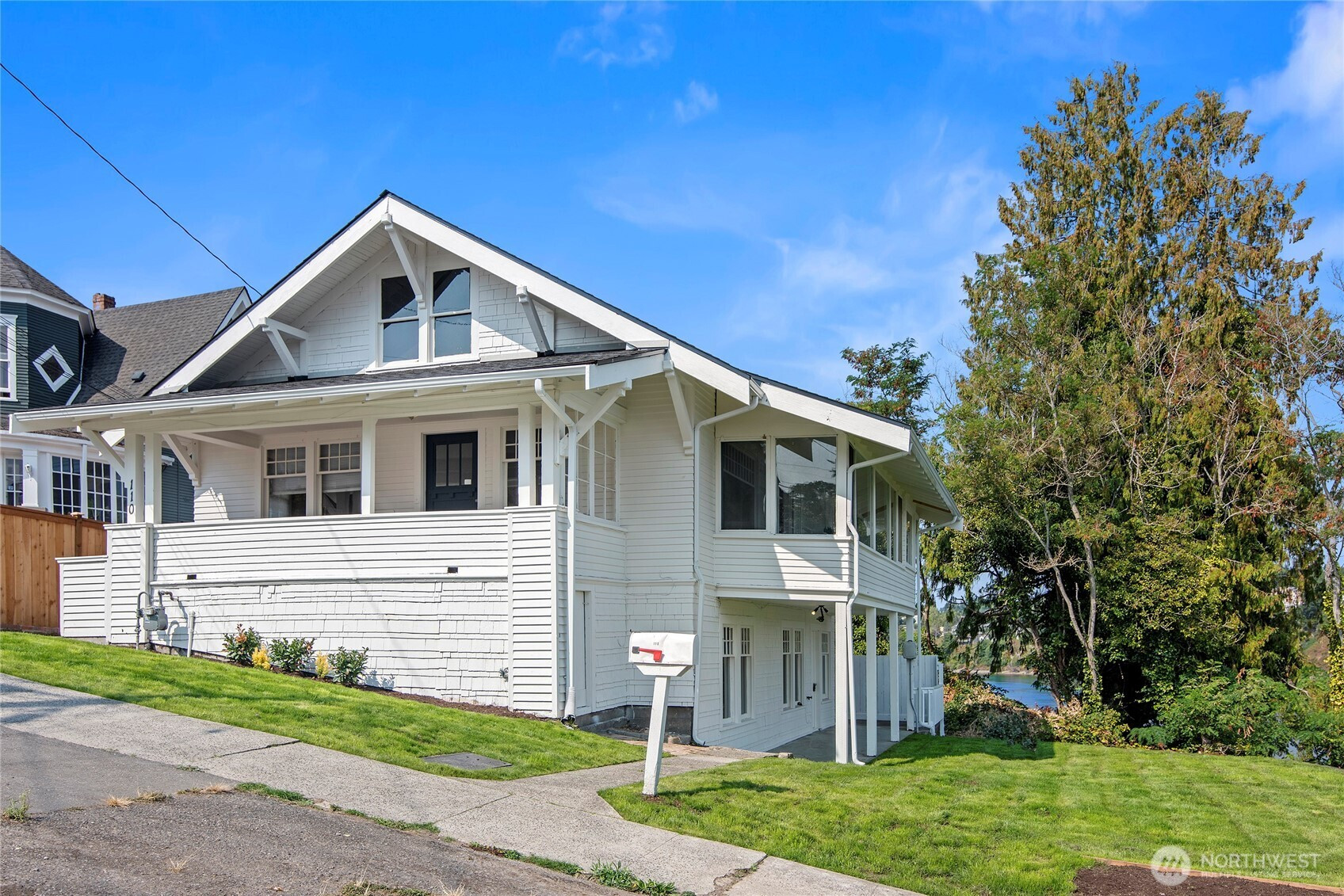 Rare opportunity to acquire an income producing waterfront home in downtown Bremerton! Watch the boats & whales go by with sweeping 180 degree views from both units. This charming craftsman has a brand new roof & two living units which offers a great opportunity to live in one & rent out the other, or provide a multigenerational living set up. Step into the 2 bed/ 1 bath upper unit to find tall ceilings, gorgeous hardwood floors, a sun porch to soak up the views and breakfast nook overlooking the water. Kitchens have new granite countertops & appliances. The 1 bedroom/1 bathroom 900sqft lower unit has 2 extra rooms in the back for office, hobbies, storage and more! Walking distance to downtown, ferries & Manette! Come see this craftsman gem