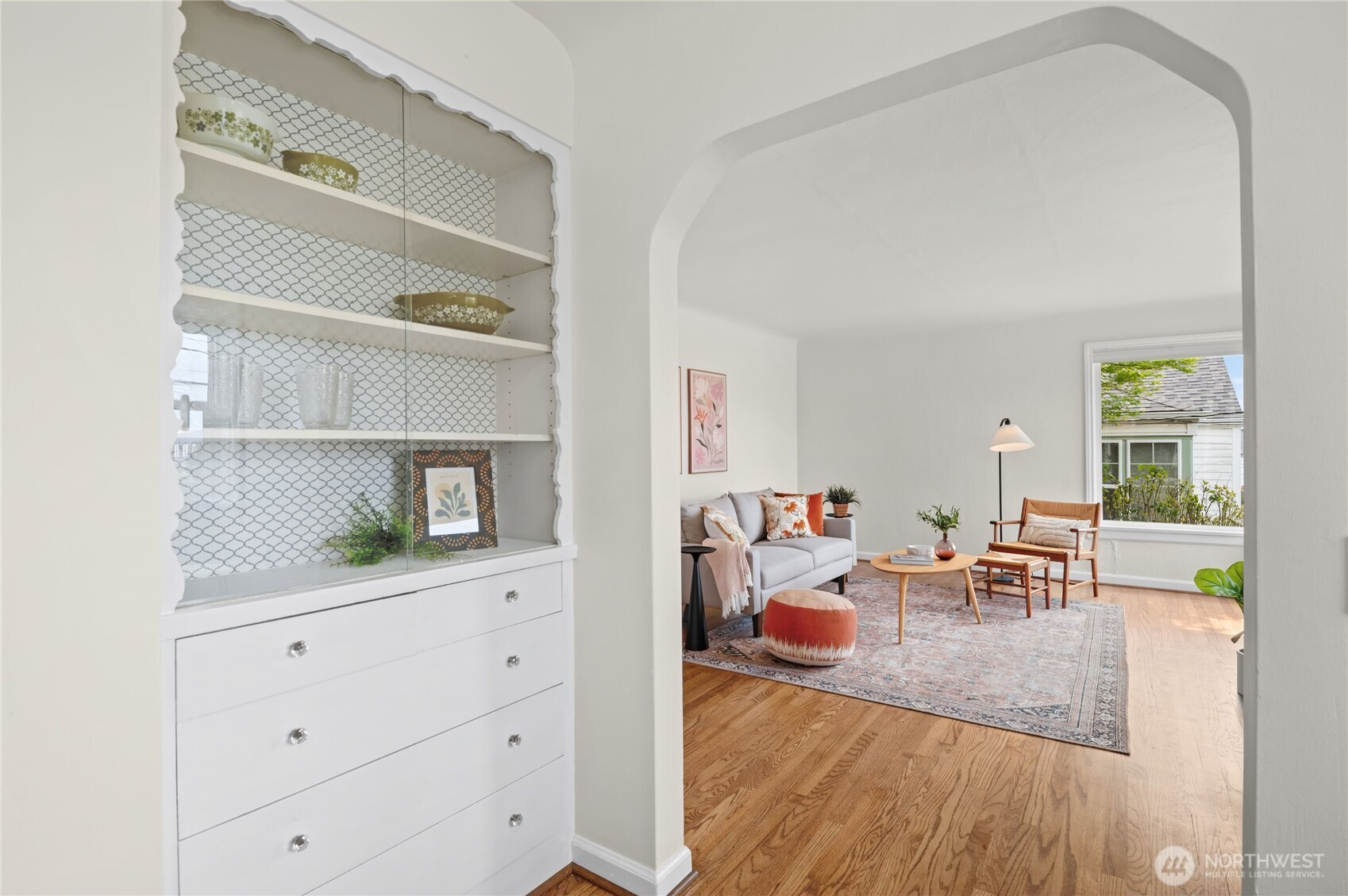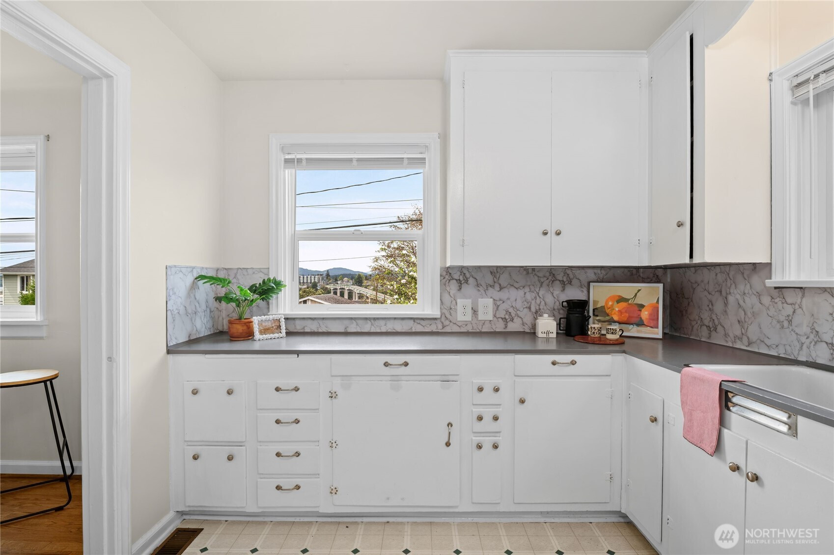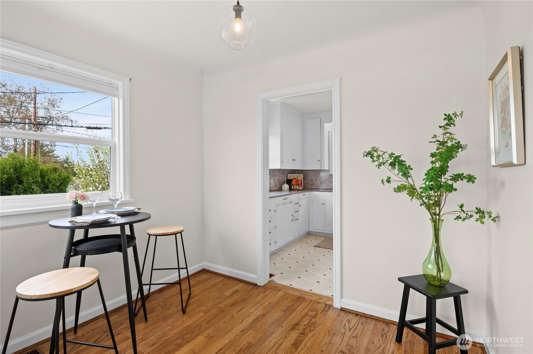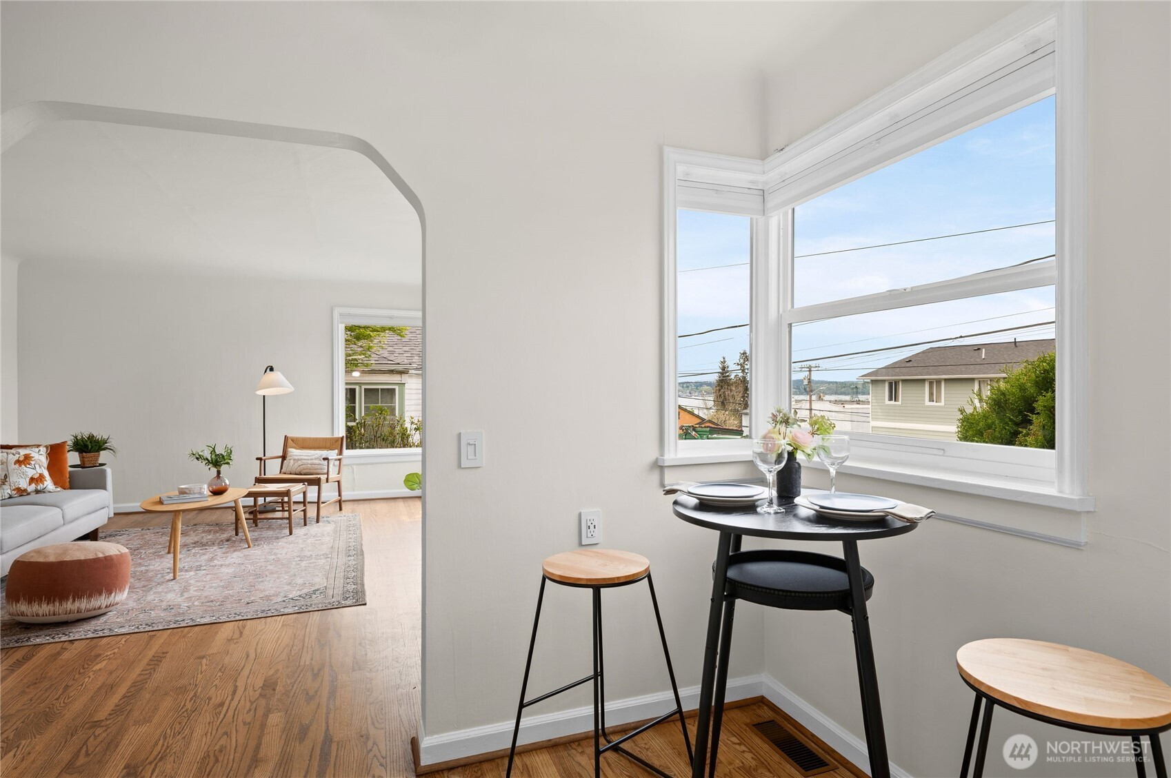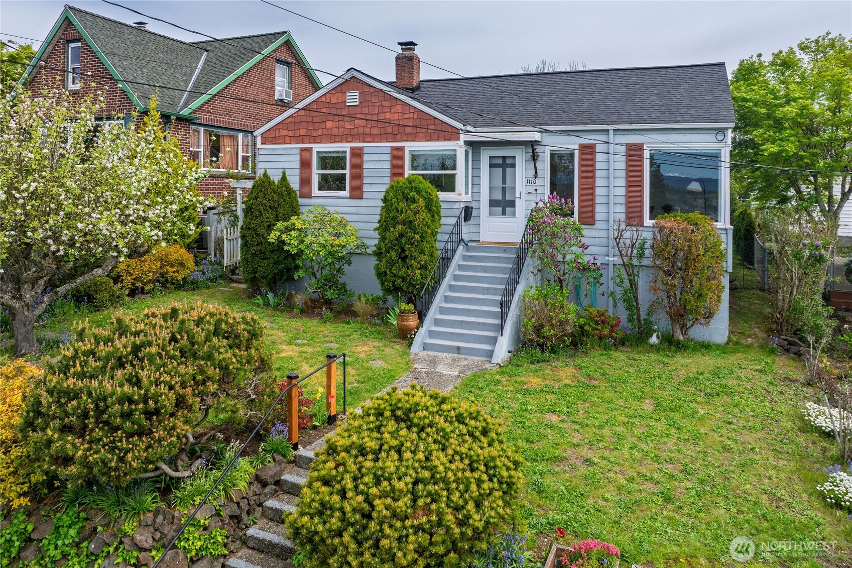 Charming Manette bungalow in a prime location, just a short stroll to neighborhood shops and restaurants. Enjoy views of the Manette bridge Puget Sound, the Olympic Mountain peaks, and the ferry. Southwest exposure beams in natural light to your main living spaces. This comfortable home features beautiful hardwood floors, coved ceilings, plaster walls, and classic built-ins; the cheerful kitchen includes appliances, and a mudroom/laundry provides extra storage. Outdoors, mature plantings and fruit trees create a gardener’s retreat, with a private, fenced backyard perfect for relaxing or entertaining. Detached one-car garage plus off-street parking. Truly a darling retreat in a neighborhood with a strong community vibe.