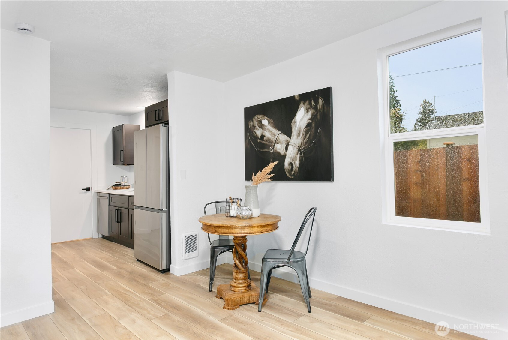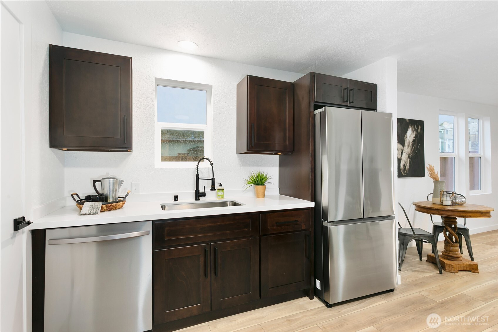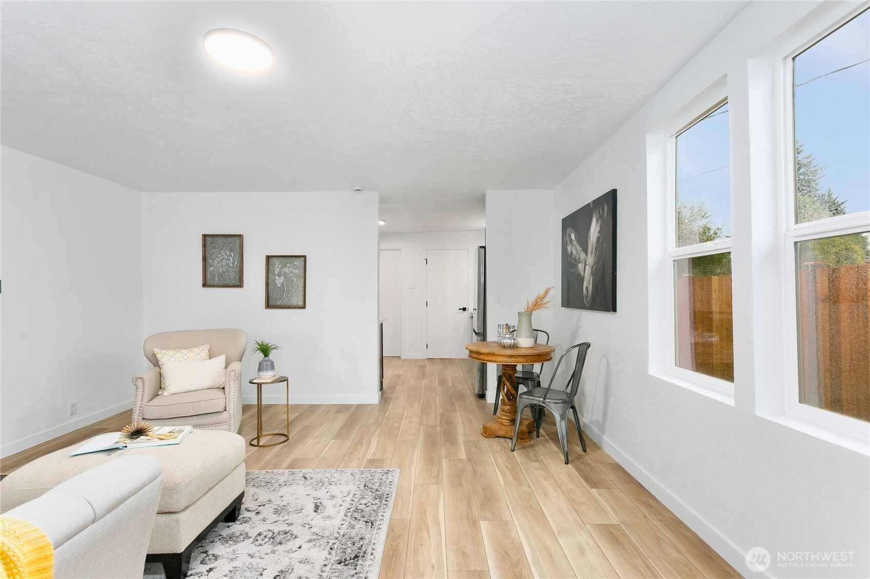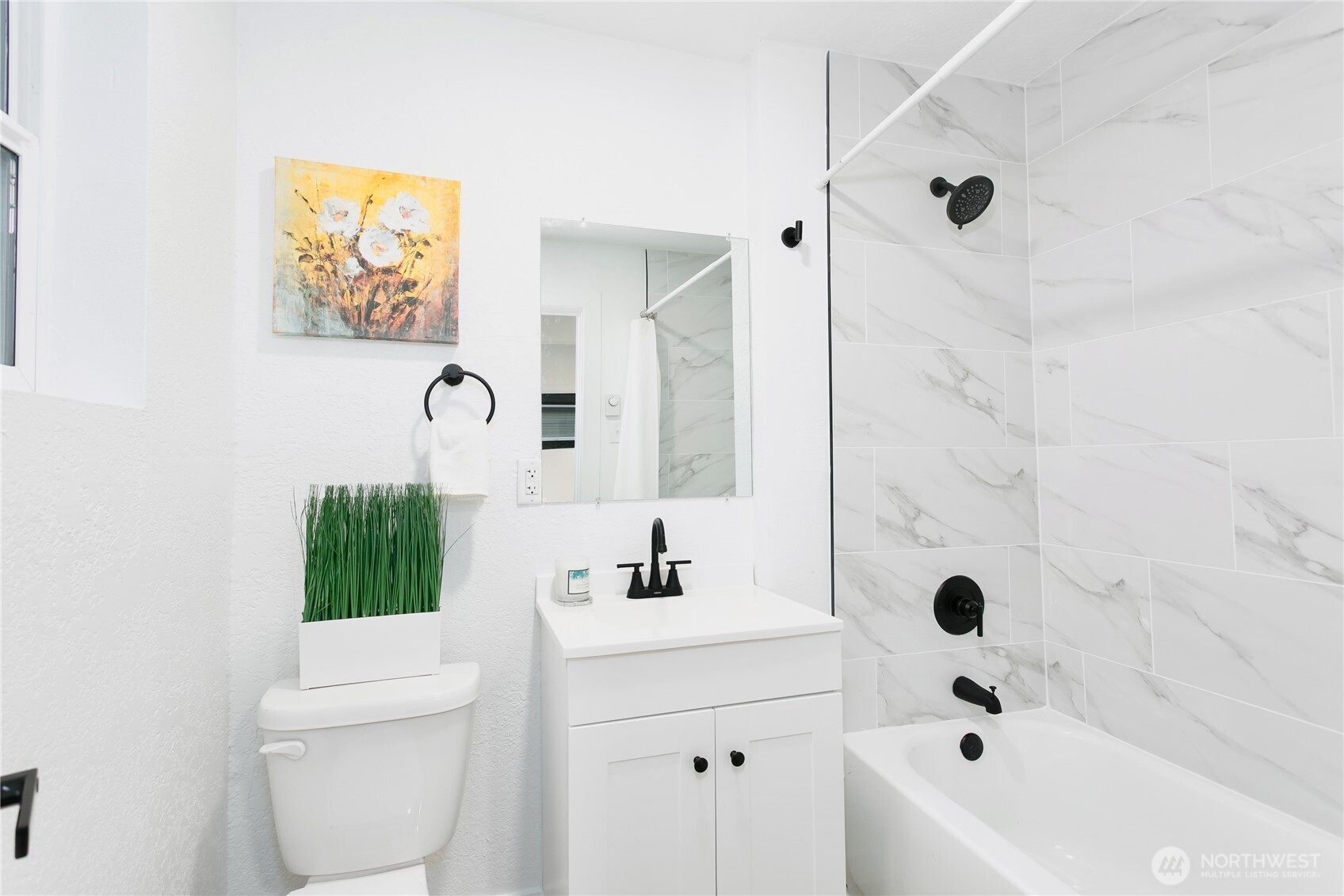 Downtown West Bremerton Craftsman Cottage!! This sweet little is about as turn-key & low maintenance as it gets. Fresh paint inside and out, all NEW fixtures, lighting - you name it! Open and bright living/dining area w/new LVP flooring and stone fireplace! All new kitchen w/ quartz countertops, stainless steal appliances + shelving! Enjoy the spacious bedroom w/fresh carpet + en suite full bathroom with custom tile surround, modern vanity and more! NEW roof, gutters, water heater. Brand new fully fenced & landscaped back yard w/gated access and driveway parking for RV/Boat/Cars! 5 min drive to Seattle Ferry & PSNS Naval Base!! Walk to schools/parks/downtown shops & dining. Perfect Starter Home/AirBNB/Mid-term Rental! NO HOA