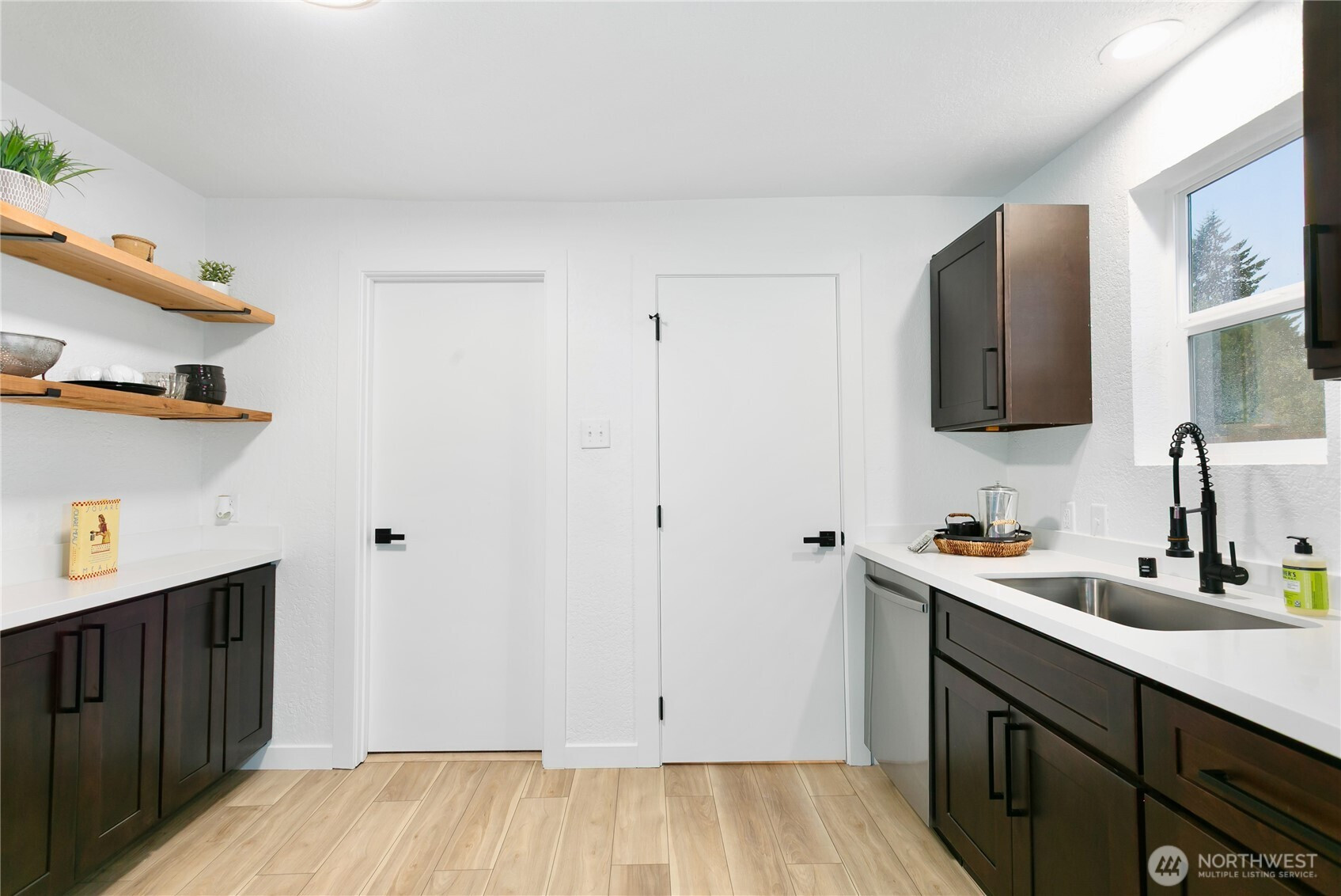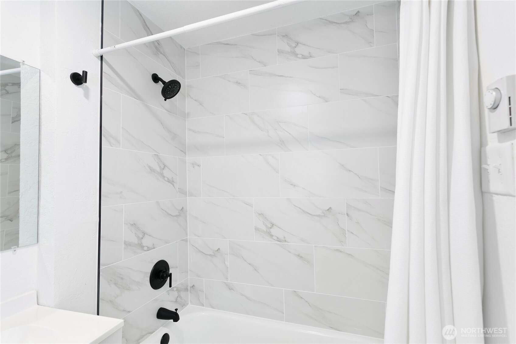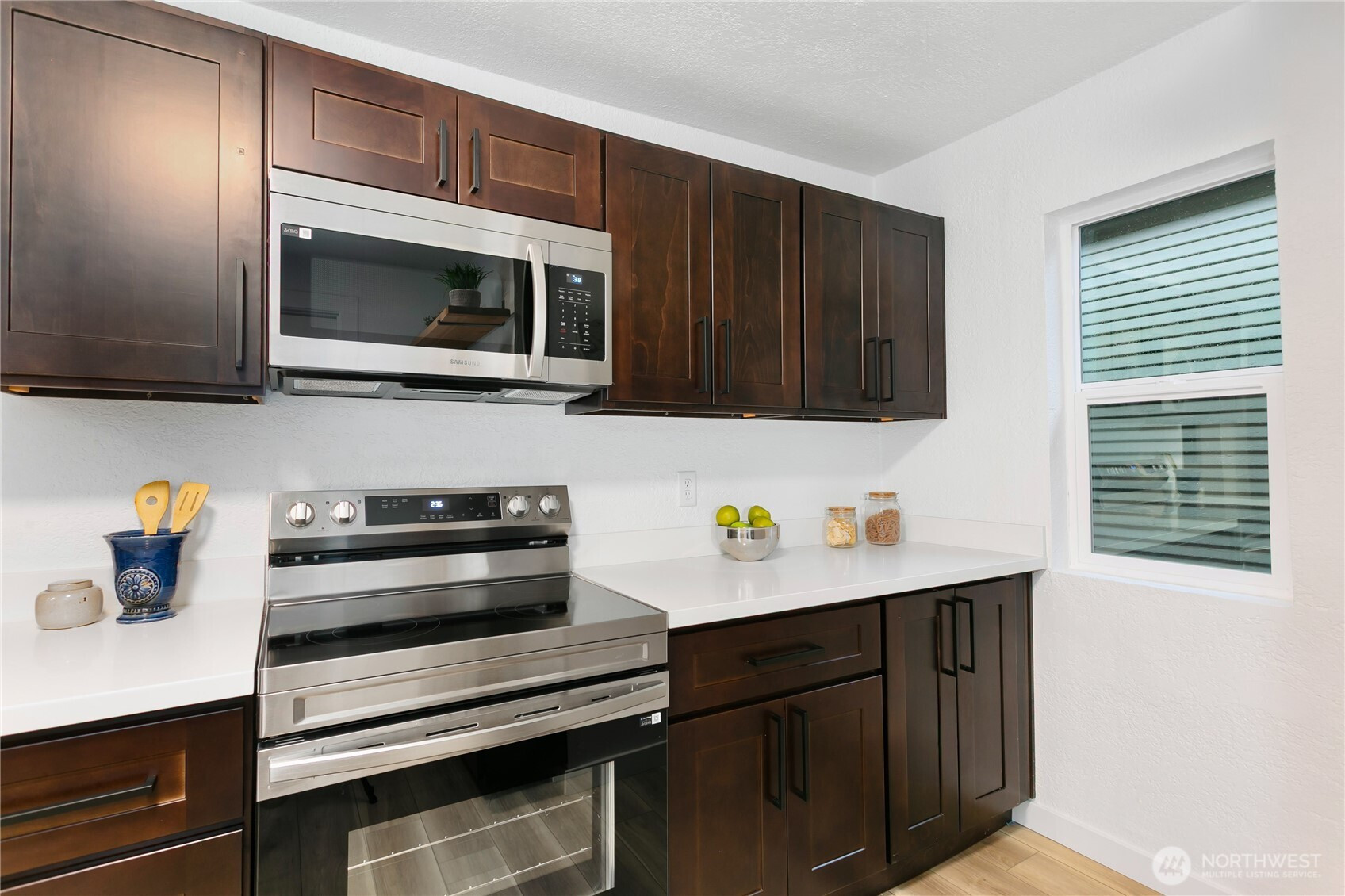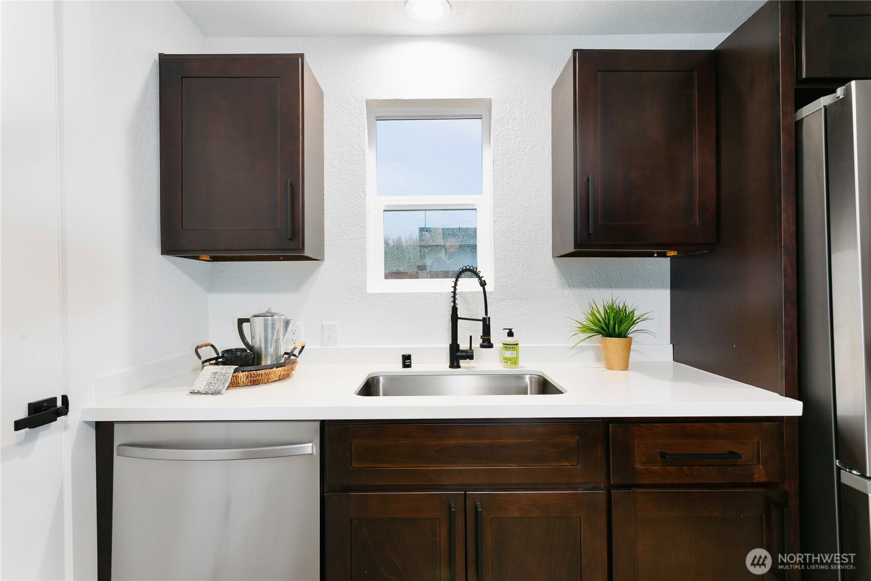 Downtown West Bremerton Craftsman Cottage!! This sweet little is about as turn-key & low maintenance as it gets. Fresh paint inside and out, all NEW fixtures, lighting - you name it! Open and bright living/dining area w/new LVP flooring and stone fireplace! All new kitchen w/ quartz countertops, stainless steal appliances + shelving! Enjoy the spacious bedroom w/fresh carpet + en suite full bathroom with custom tile surround, modern vanity and more! NEW roof, gutters, water heater. Brand new fully fenced & landscaped back yard w/gated access and driveway parking for RV/Boat/Cars! 5 min drive to Seattle Ferry & PSNS Naval Base!! Walk to schools/parks/downtown shops & dining. Perfect Starter Home/AirBNB/Mid-term Rental! NO HOA