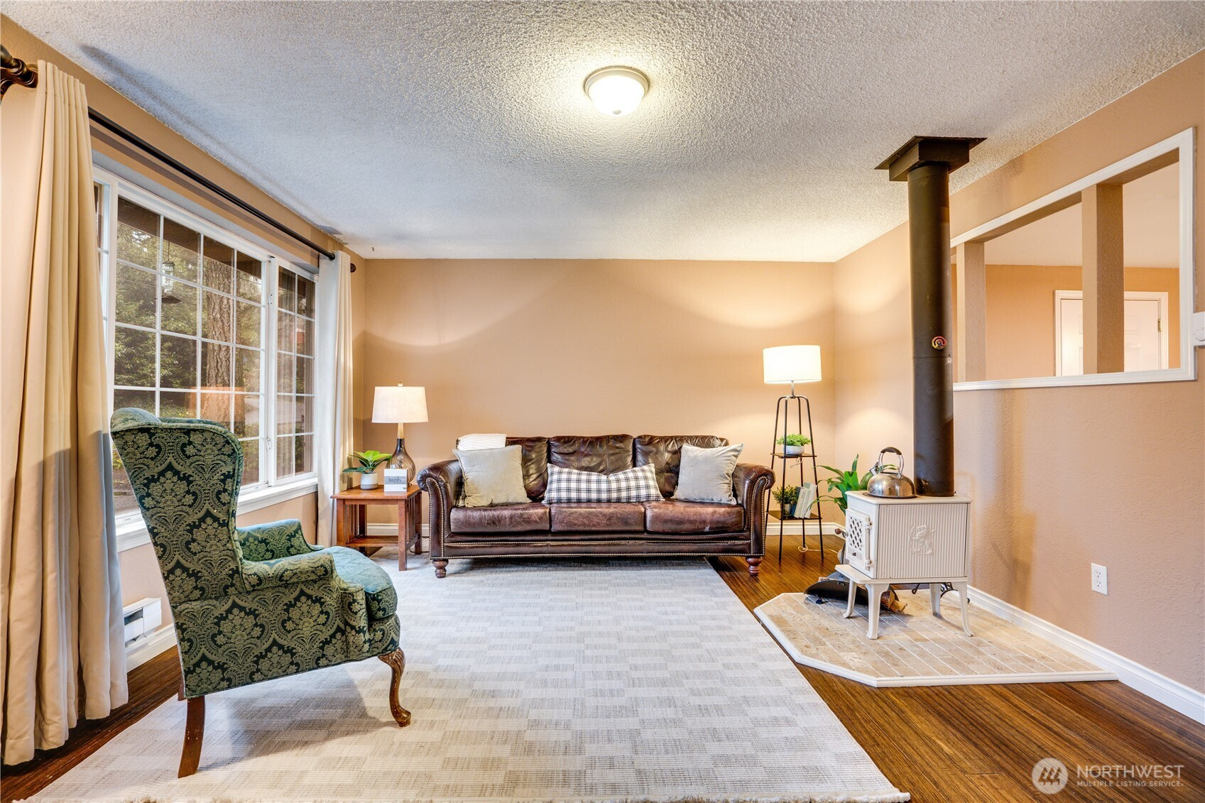 This charming Port Orchard rambler lives large with warm and welcoming hardwood floors, brand new carpet, fresh paint, and a bright, open feel throughout. Cozy up to the wood stove and enjoy the lush views through the large living room window. You will love the roomy eat-in kitchen that anchors the home, perfect for everyday meals or weekend baking sessions. Retreat to the expansive primary suite with its own half bath and walk-in closet. Two additional bedrooms complete this welcoming layout. Don’t miss the attached garage with attic storage and a workbench. Outside, enjoy a private, landscaped yard complete with a garden shed and plenty of room to roam—your own little oasis in a fantastic location waiting for you to call it home.