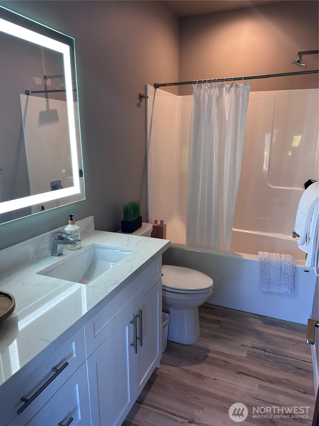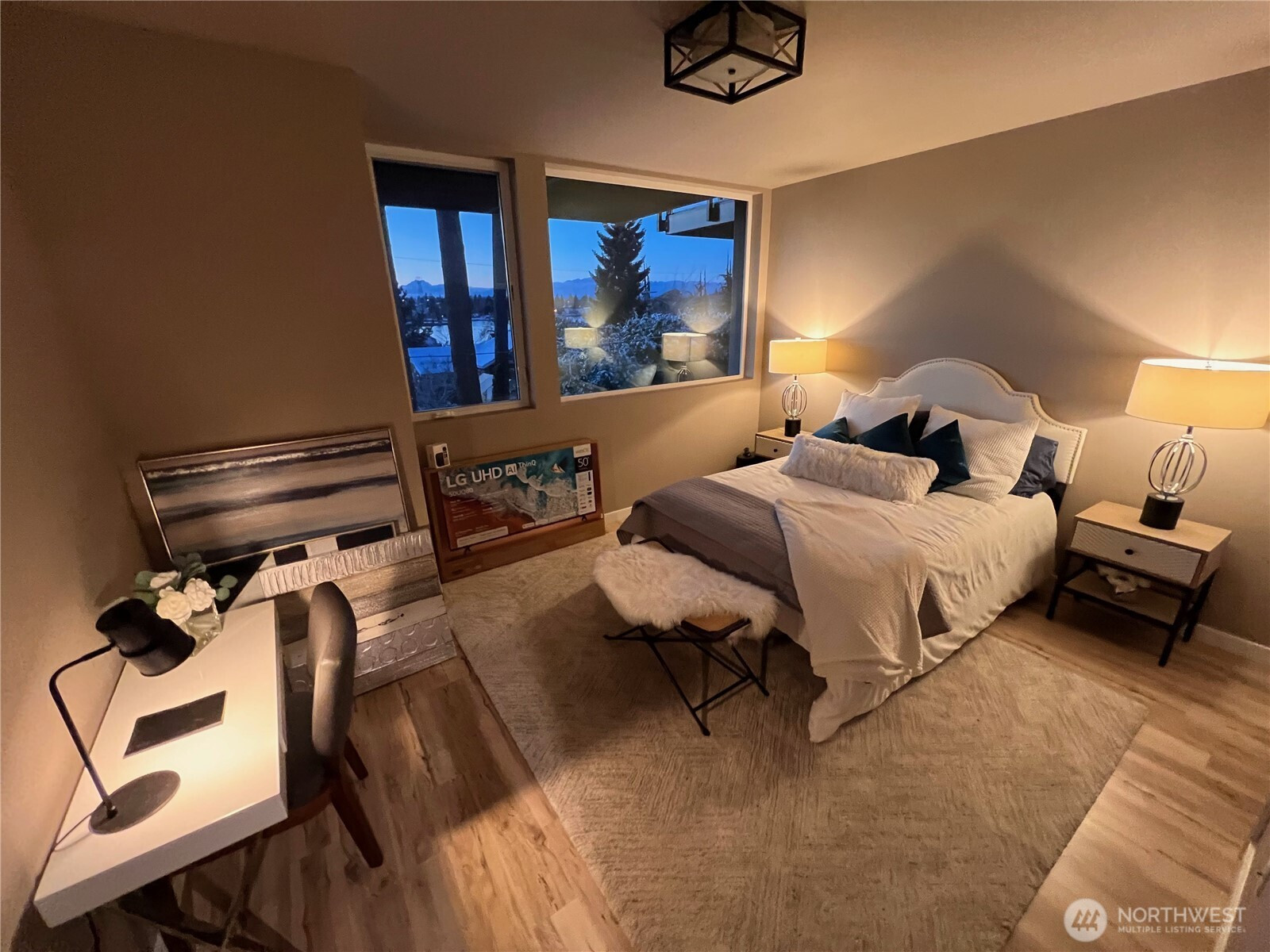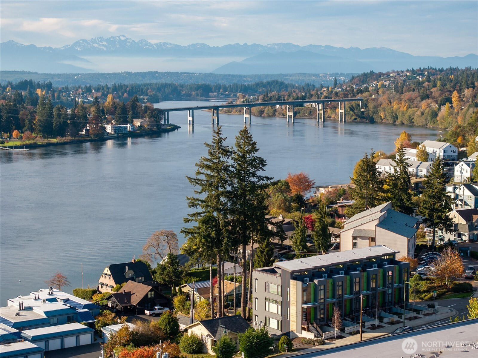 Discover refined living in Manette Townhomes—an elegant waterside enclave just blocks from dining, entertainment, and the Bremerton-Seattle Fast Ferry. This beautifully designed townhome has spectacular Olympic Mountain and water views from expansive windows and a private main-level deck, including a spacious rooftop retreat. Thoughtful finishes include soaring ceilings, quartz countertops, elegant lighting, a sleek electric fireplace, and efficient heating and cooling. The luxurious primary suite has an upgraded walk-in closet and spa-inspired shower. Enjoy a low-maintenance, serene lifestyle with an easy ferry commute to downtown Seattle. Interior SF 2,122 + Garage 397 = Total ASF 2,519. 1-car garage w/room for bikes/kayaks/boards!