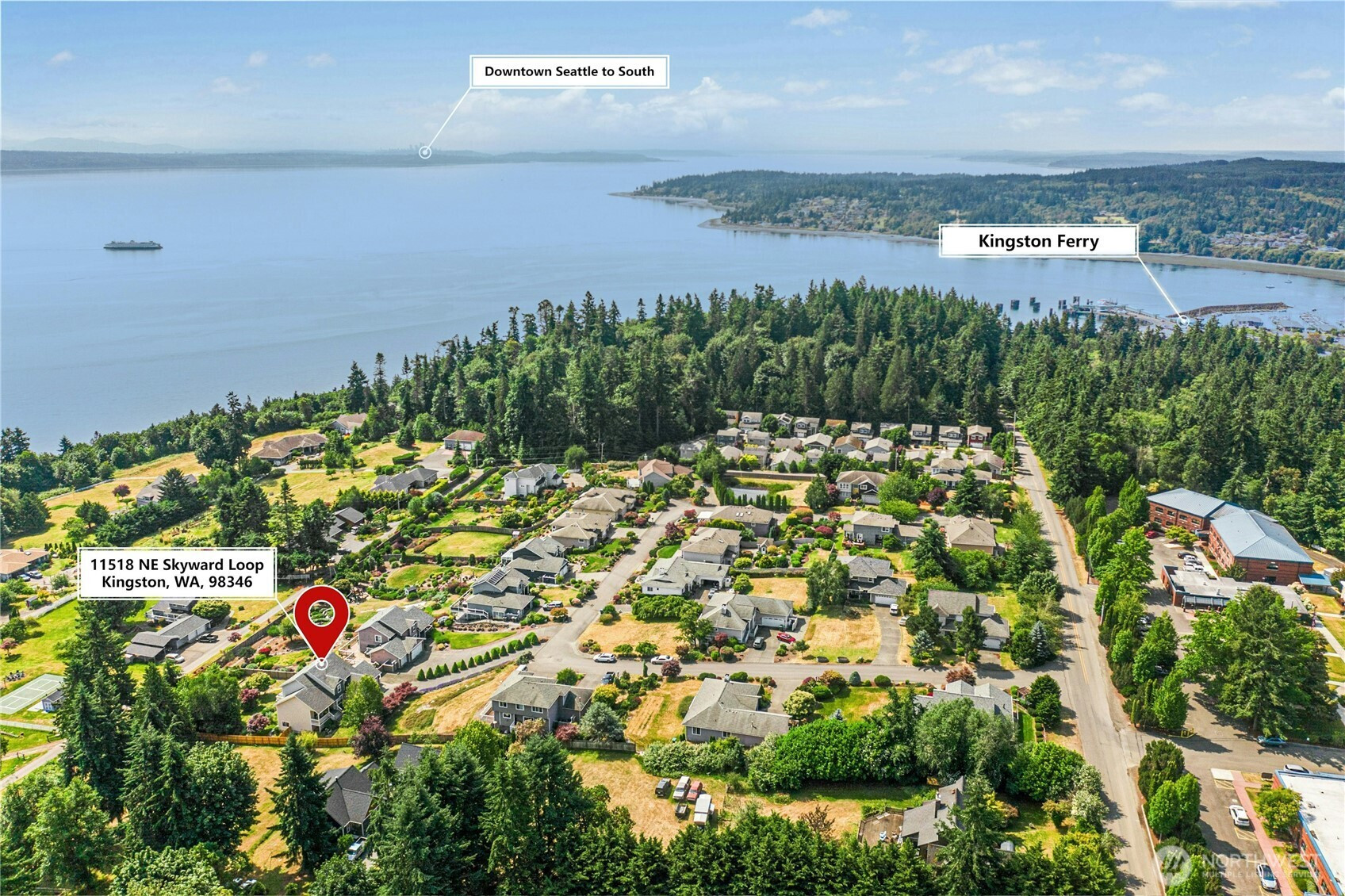 Experience ICONIC SOUND VIEWS & LUXURY LIVING. Perched in Kingston’s premier Skyline neighborhood, this brilliantly remodeled home offers a rare duet of tranquility and seamless city access via the Seattle Fast Ferry. Capture the essence of the Pacific Northwest with panoramic water and Cascade views from most windows, plus Mt. Rainier and the Space Needle. ~THE HEART OF THE HOME: A chef’s kitchen redesigned for entertaining, featuring new quartz countertops, stainless appliances, soft close cabinets and a massive walk-in pantry. The open layout flows naturally into versatile gathering spaces, all framed by stunning everchanging vistas. ~RETREAT & RECHARGE: Revel in sunrises from your serene primary suite, complete with a spa-inspired bath and large walk-in closet. 2 additional bedrooms, an office and a full bath complete the upper level. ~VERSATILE LOWER LEVEL: The walk-out basement features a huge bedroom with a walk-in closet, an updated full bath and two bonus spaces; perfect for multi-generational living, a high-end home office, or a professional gym and studio - all with scenic views. ~OUTDOOR OASIS: Enjoy the 900sf wrapped deck, an all-day destination to watch passing ships or unwind in the hot tub. Set on a lush, fully-fenced half-acre with mature landscaping, you'll also appreciate the new roof, central vacuum, no HOA, and being just minutes to both ferries, beaches, and golf at Whitehorse. This isn't just a home; it’s a true opportunity for a life well-lived.