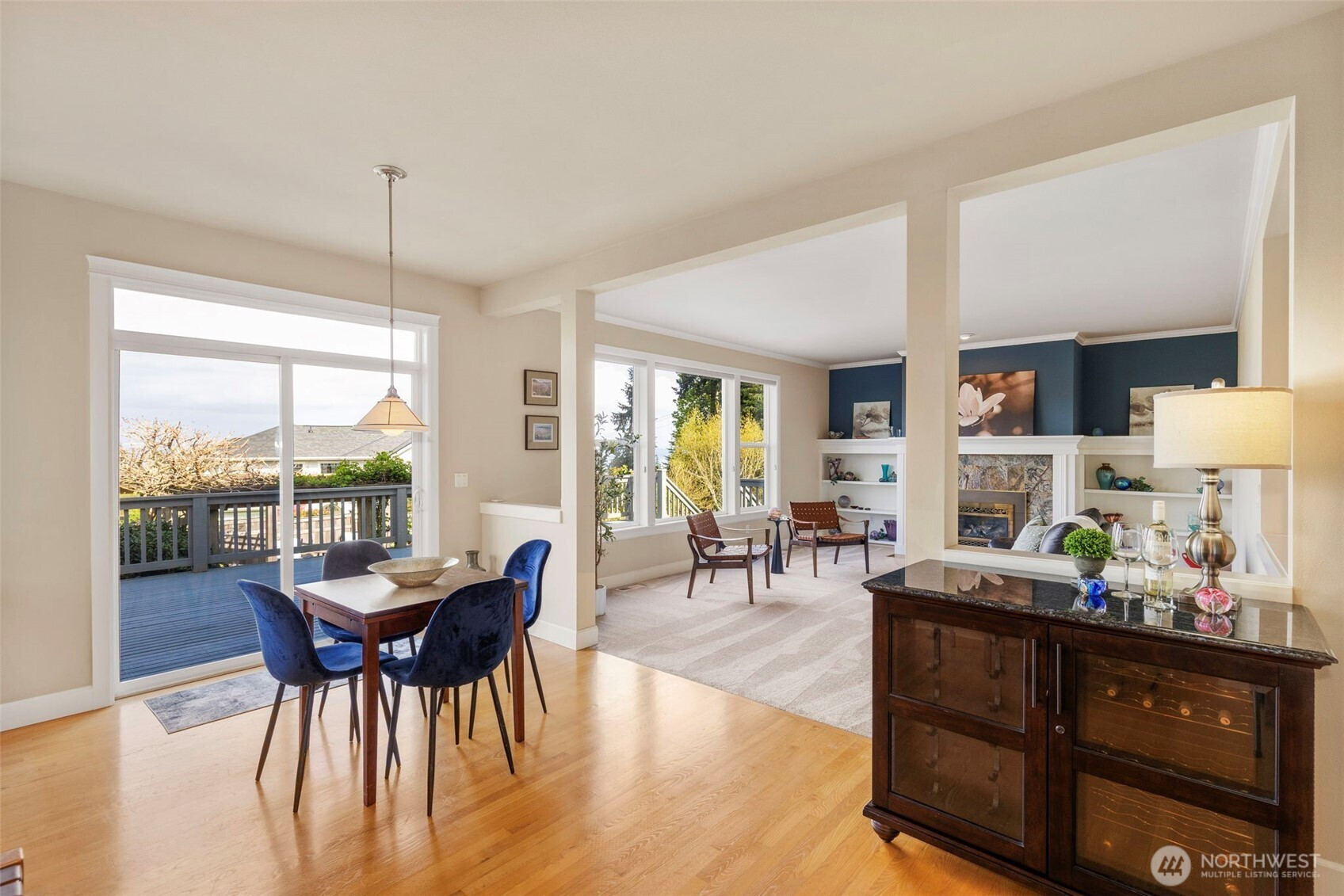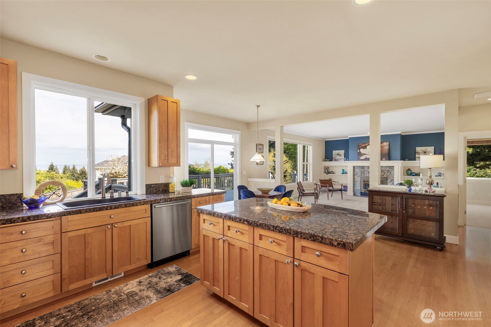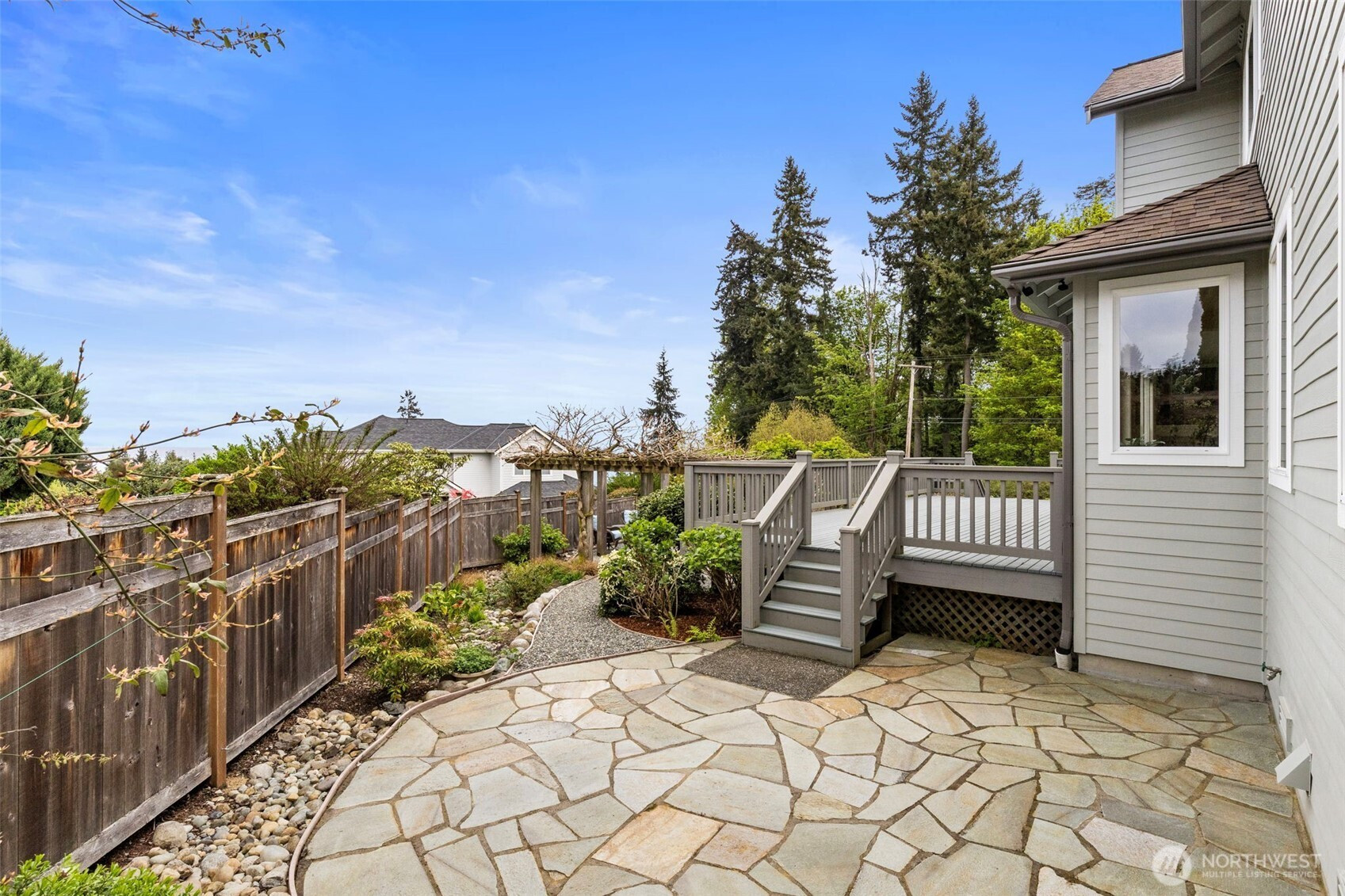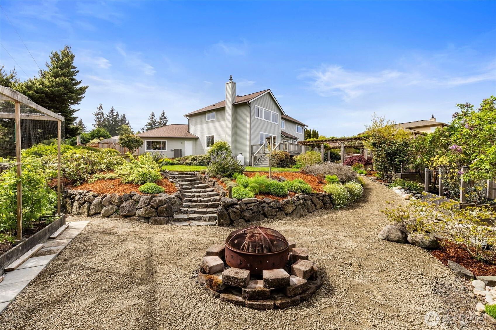 Take in the breathtaking views of the Cascade Mountains and Puget Sound shipping lanes from this meticulously maintained Kingston home. The interior features a light-filled open layout with vaulted ceilings, skylights, and a cozy gas fireplace in the living room. The modern kitchen includes a dining area, and a slider leading directly to the large back deck for seamless indoor-outdoor living. The comfortable family room provides a perfect gathering space to relax and take in the view. Upstairs, the primary suite offers a private bath and walk-in closet, accompanied by two additional bedrooms, a spacious media room and full bathroom. The backyard oasis features a relaxing pergola, firepit area, patio area and multiple garden beds. Complete with a 3-car garage, newer roof, gutter guards and heat pump. This property is perfectly located just minutes to downtown Kingston shops, restaurants and Ferries for an easy commute.