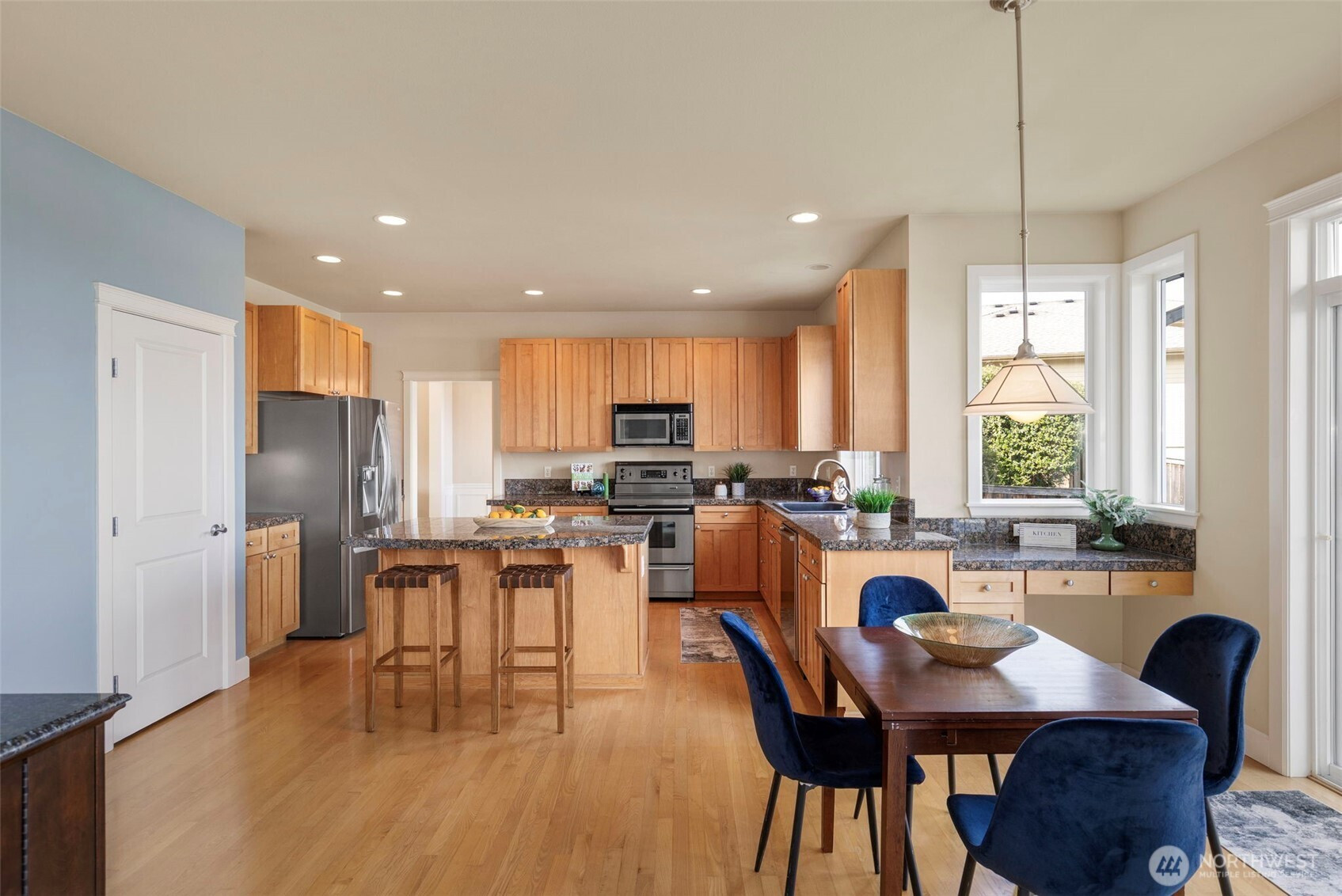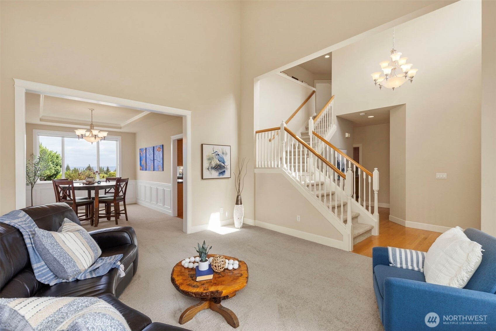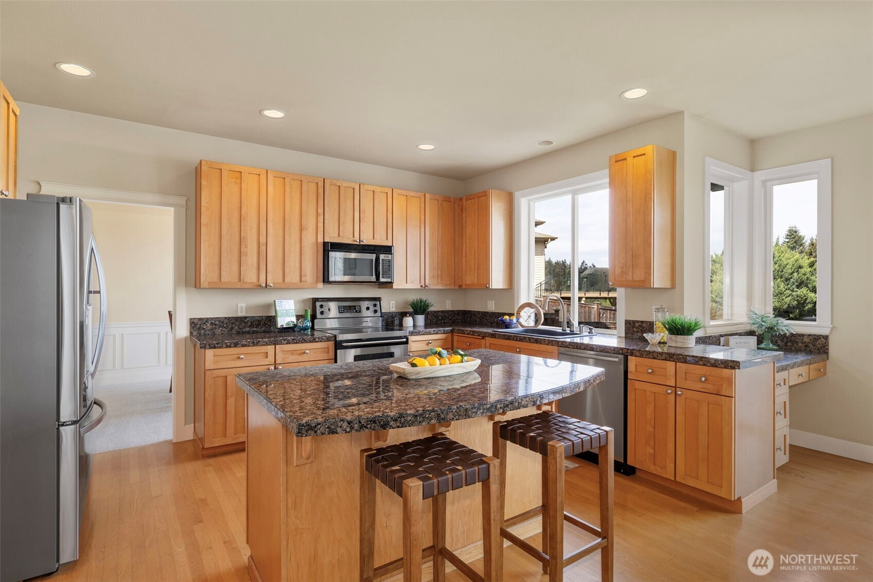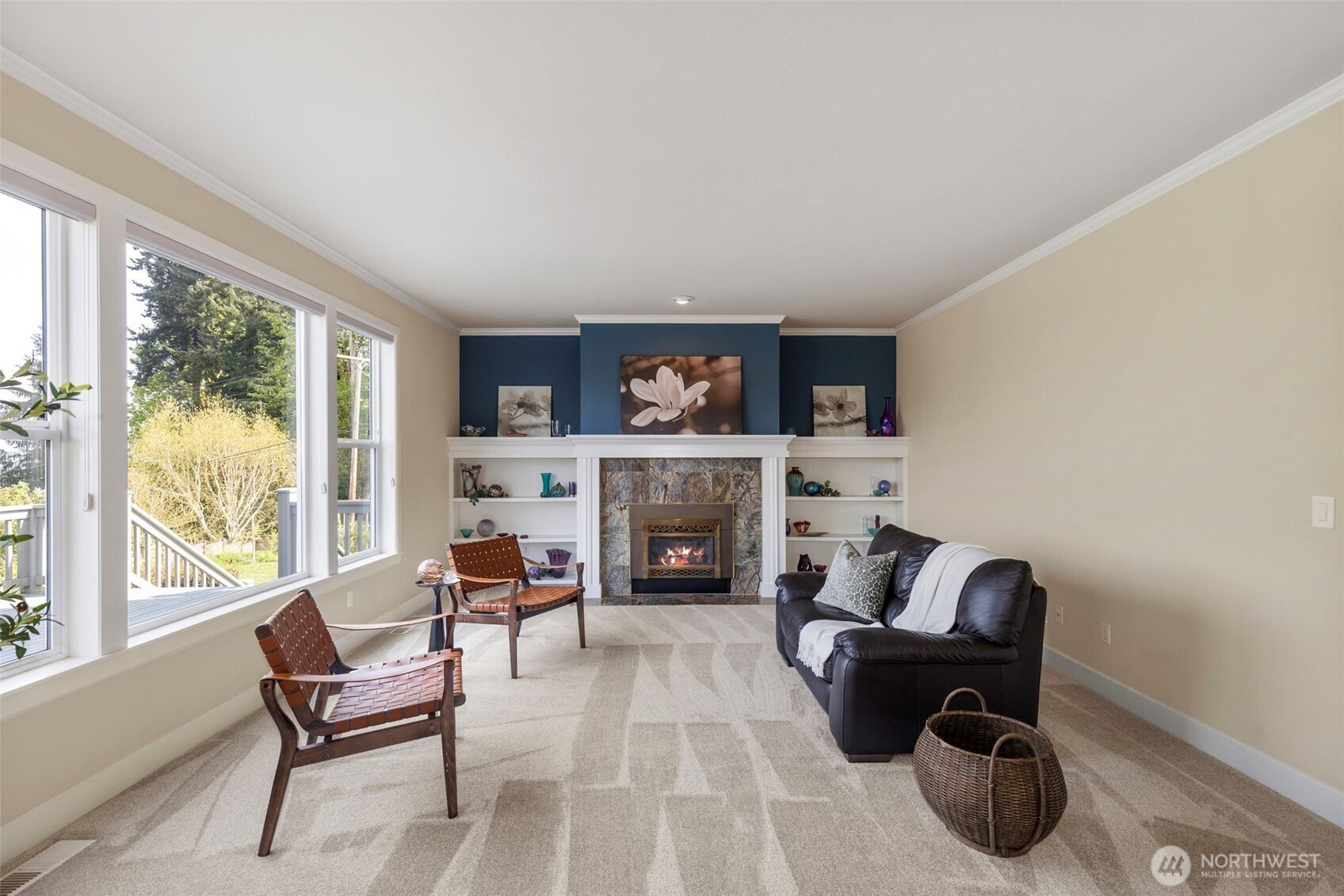 Take in the breathtaking views of the Cascade Mountains and Puget Sound shipping lanes from this meticulously maintained Kingston home. The interior features a light-filled open layout with vaulted ceilings, skylights, and a cozy gas fireplace in the living room. The modern kitchen includes a dining area, and a slider leading directly to the large back deck for seamless indoor-outdoor living. The comfortable family room provides a perfect gathering space to relax and take in the view. Upstairs, the primary suite offers a private bath and walk-in closet, accompanied by two additional bedrooms, a spacious media room and full bathroom. The backyard oasis features a relaxing pergola, firepit area, patio area and multiple garden beds. Complete with a 3-car garage, newer roof, gutter guards and heat pump. This property is perfectly located just minutes to downtown Kingston shops, restaurants and Ferries for an easy commute.