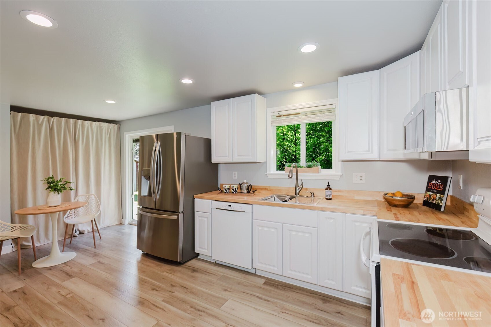 Welcome Home! Come take a look at this cutie in Parkview Terrace! On almost a quarter of an acre, you will have plenty of room for parking, playing and entertaining! Step into the living room with your wood stove to keep you warm on those cold winter nights. Enjoy the freshly painted walls, beautiful flooring and bright windows. Step further in and you will see the updated kitchen with new cabinets, new butcher block countertops, new microwave and dishwasher. Use the mobile island for more room to bake that sourdough bread or make that cookie dough. New paint in here as well! As a matter of fact, the whole house, inside and out has fresh paint! New baseboards as well! Close to amenities but not too close! This home has everything you need and more. Move in ready just for you! You will LOVE it here!