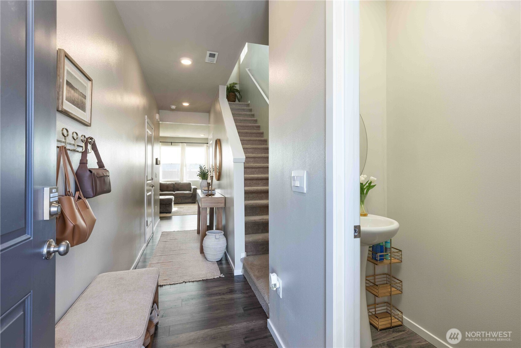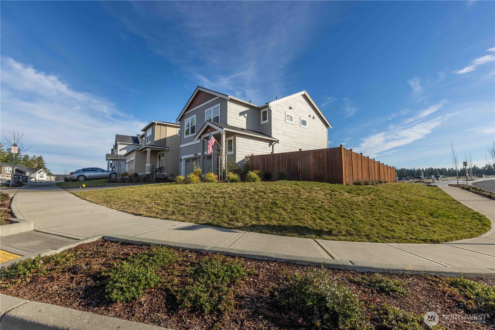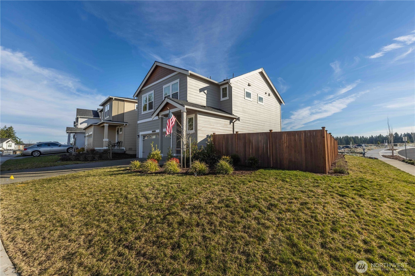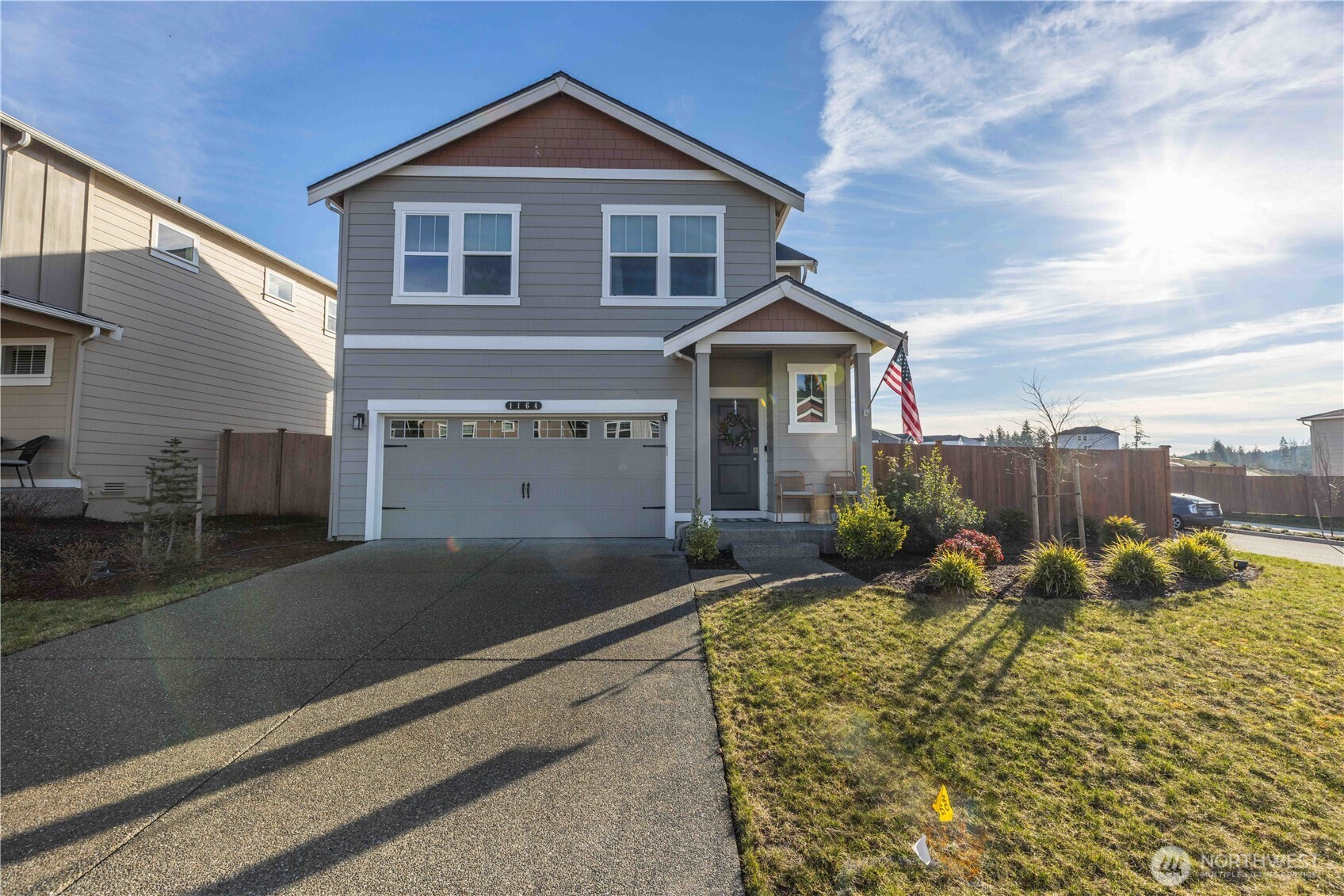 Built in 2024, this beautiful four bedroom home offers the luxury, comfort, and efficiency that only a nearly new build can provide. Thoughtfully designed with natural light pouring into every room, the layout feels bright, open, and inviting from the moment you step inside. The main level blends the kitchen, dining, and living spaces seamlessly—perfect for hosting gatherings, enjoying quiet evenings at home, or staying connected while cooking and entertaining. The island kitchen is a standout feature, showcasing slab quartz counters, a walk-in pantry, abundant cabinet space, and large windows that make meal prep and everyday living a delight. Upstairs, all four bedrooms are conveniently located on one level, along with a spacious utility room for added ease. The private primary suite offers a peaceful retreat with an attached bath featuring double sinks and a generous walk-in closet. Sitting on a large corner lot, this home provides exceptional outdoor space with a flat, landscaped front and backyard—ideal for play, pets, gardening, or relaxing in the sunshine. Additional perks include air conditioning, smart-home features, and modern finishes throughout that make this property truly move-in ready. A rare opportunity to enjoy contemporary living in a thoughtfully crafted home built for comfort and style. Convenient access to HWY 16, ferries, PSNS, and Bangor.