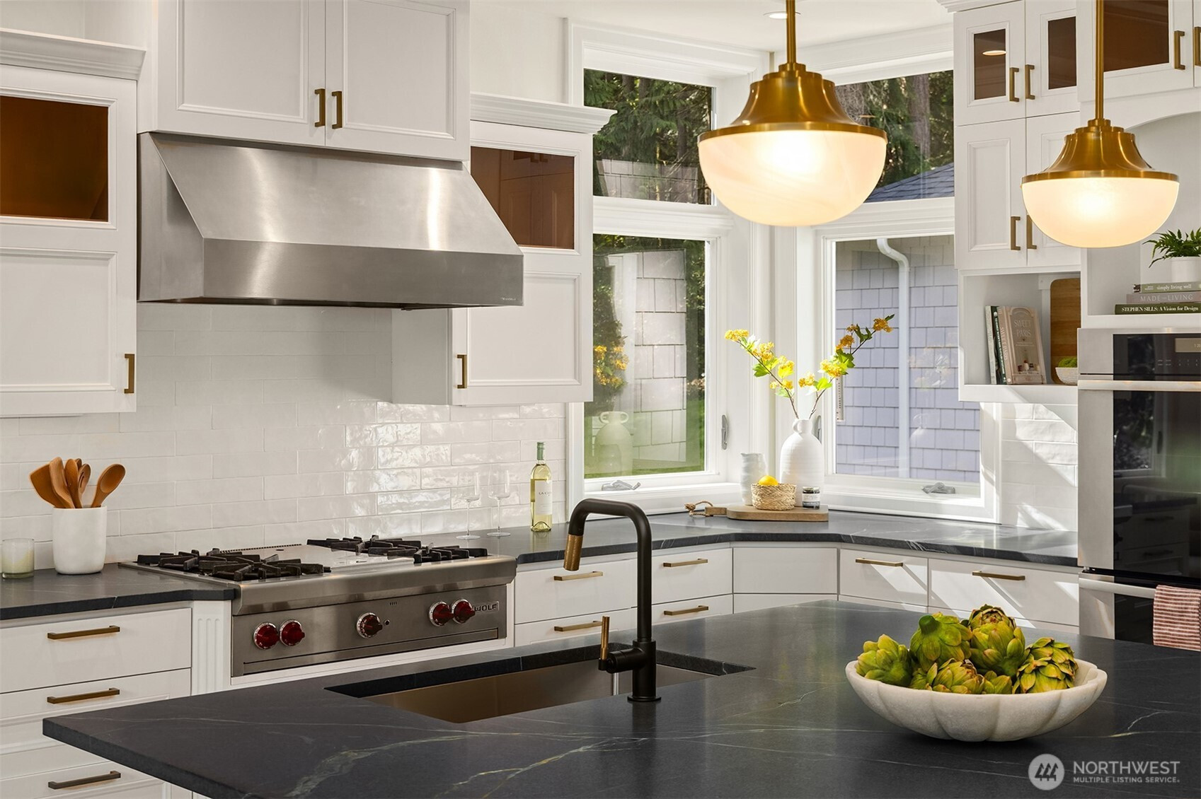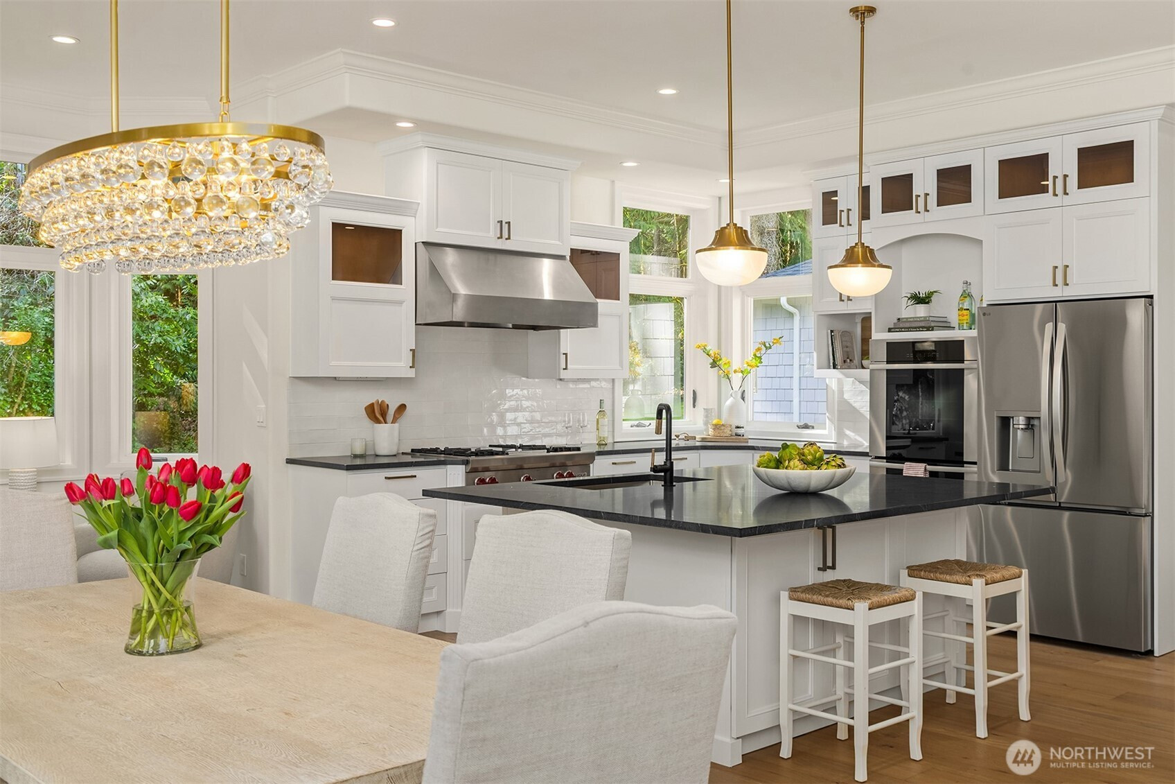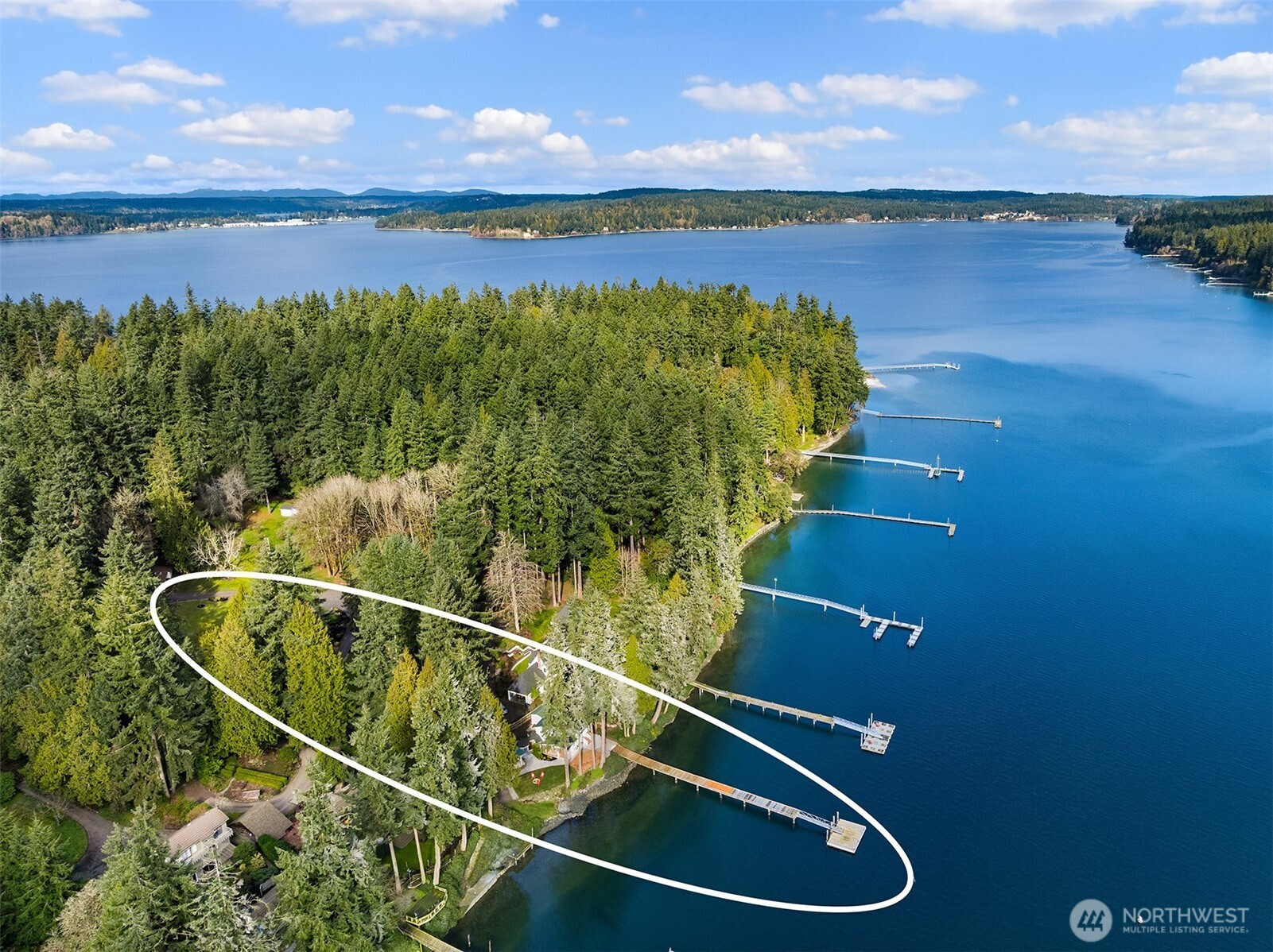 Set on 1.4± private waterfront acres on Manzanita Bay, this exceptional estate offers 110± feet of rare low-bank shoreline with year-round deep-water moorage and a private boat launch, creating the ultimate setting for boating and waterfront living. The fully renovated main residence blends timeless Northwest architecture with modern luxury. At the heart of the home is thoughtfully designed kitchen with custom cabinetry, premium appliances, and elegant new lighting throughout. A lower level secondary kitchen adds flexibility for entertaining, solarium game room and extended living. The main-floor primary suite provides a private retreat with a spacious dressing room, while all bedrooms are en suite, ensuring comfort and privacy for guests. Just steps from the shoreline, a charming separate 1,300 sq ft beach house offers a relaxed waterfront escape for guests with an additional full kitchen, bedroom and 1.5 baths. The grounds are designed for both recreation and serenity, featuring a hot tub, sauna, fire pit overlooking the bay, expansive outdoor spaces, and two separate two-car garages. A rare opportunity to own a private Manzanita Bay waterfront estate combining acreage, low-bank shoreline, and exceptional boating access.