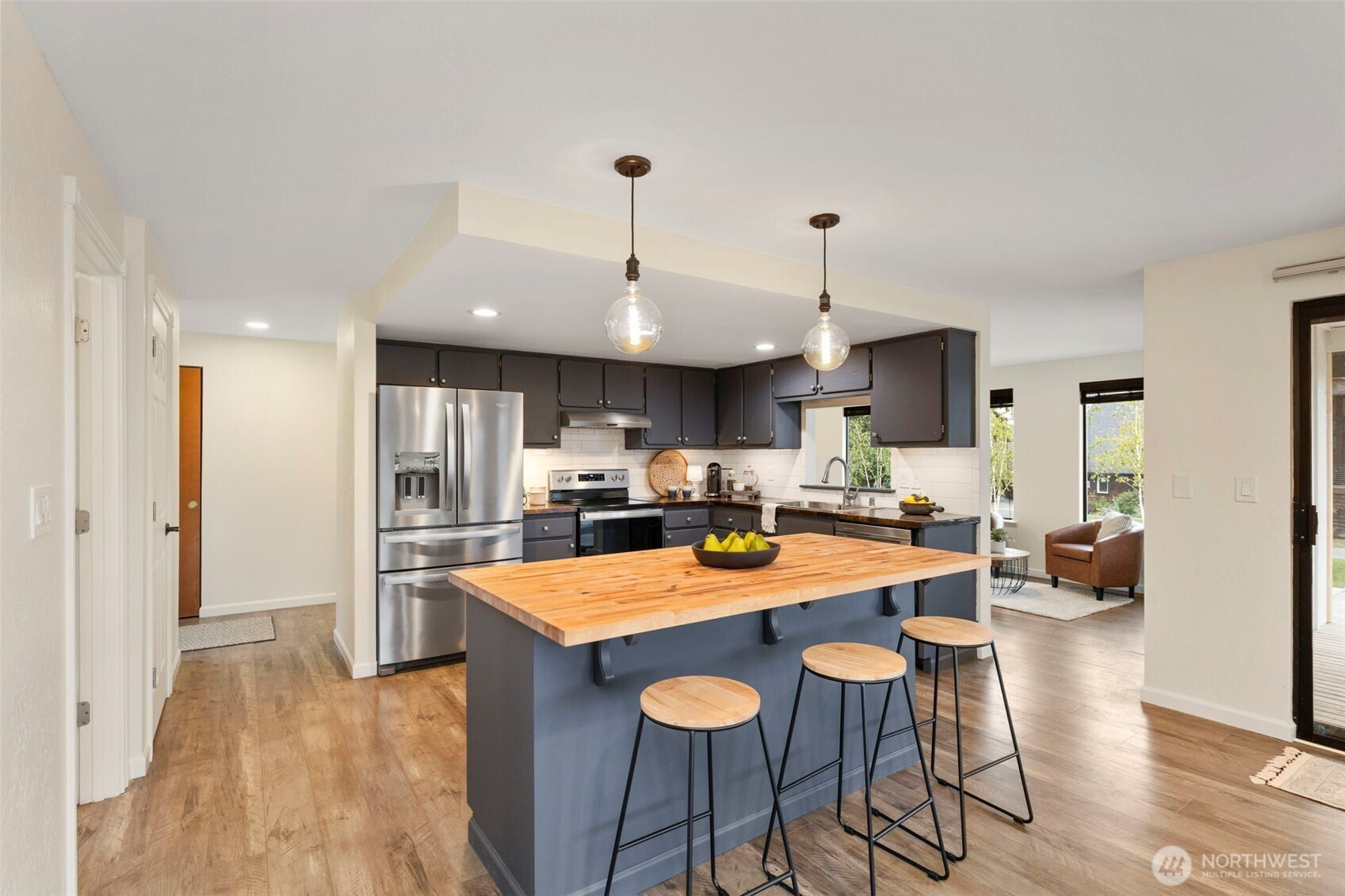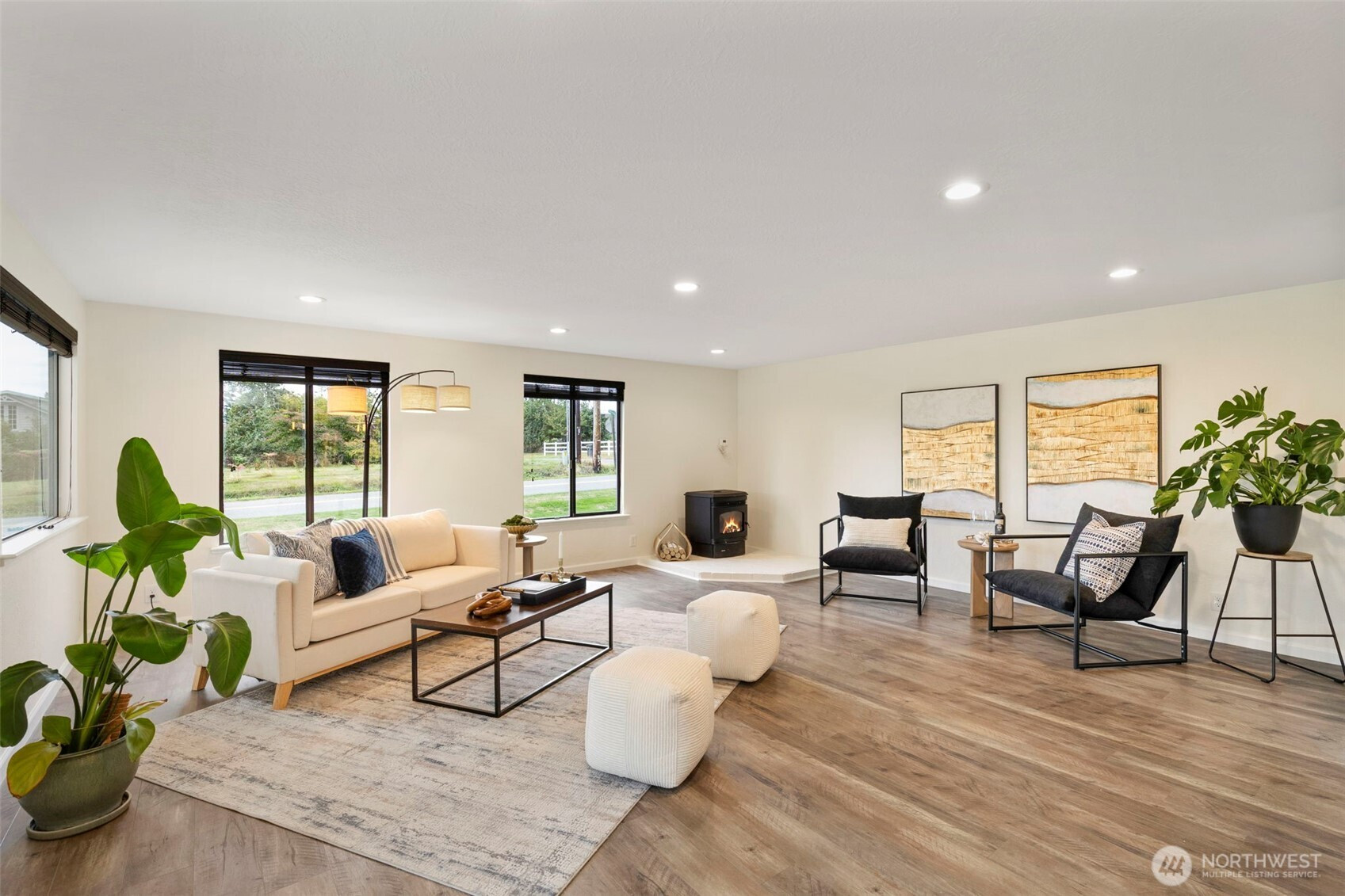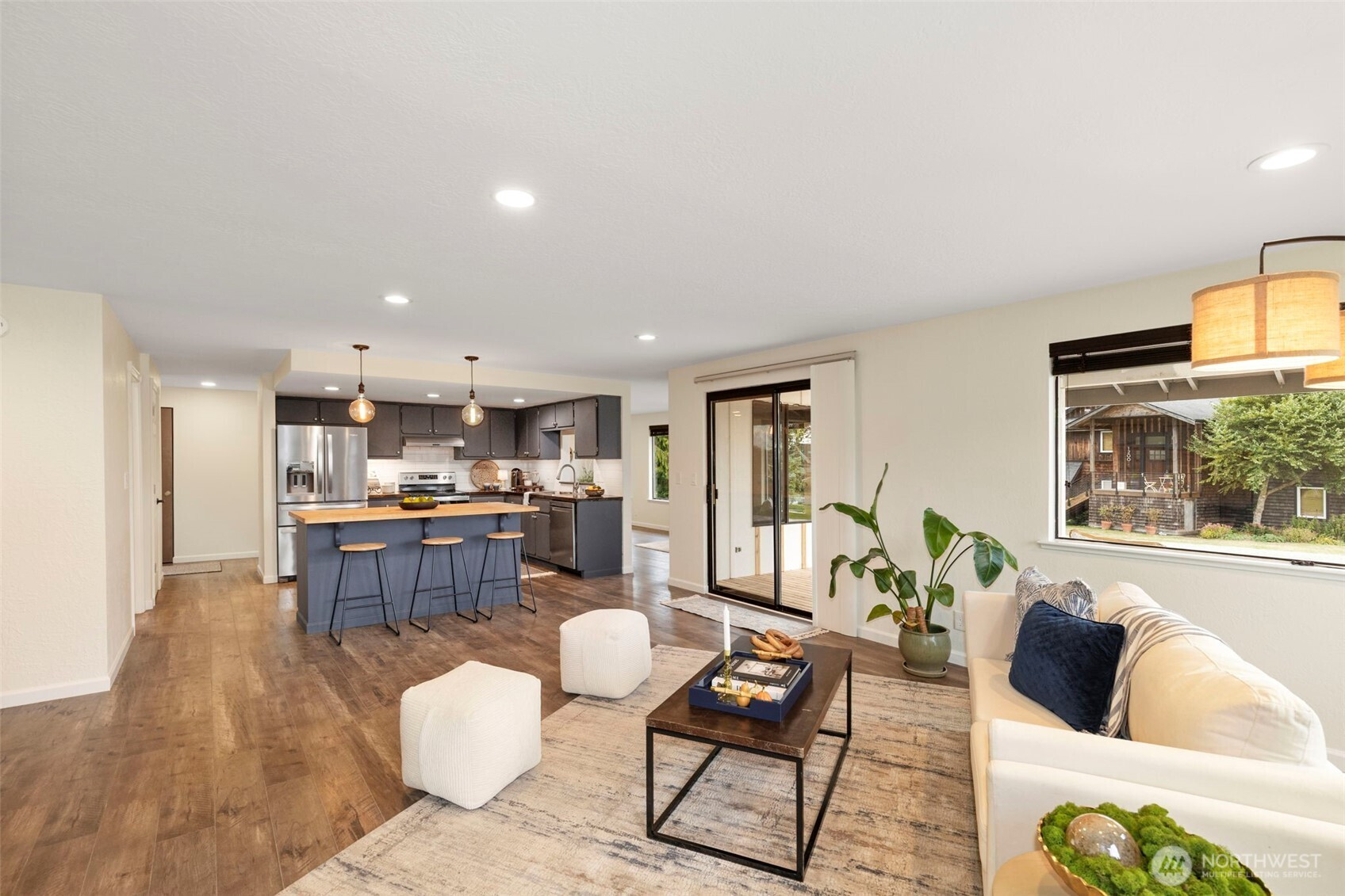 Welcome to this inviting 3-bedroom, 1.75-bath home offering 1,708 sq ft of comfortable main-level living on a .58-acre lot in Kingston’s desirable Jefferson Point neighborhood. From the living room and expansive front deck, take in partial water views of Puget Sound and Mt. Baker, creating a serene retreat right at home. Inside, you’ll find new flooring throughout, a beautifully updated primary bathroom, and stainless steel appliances. The thoughtful layout provides ease and convenience with all living spaces on one level. A large detached shop offers endless potential for hobbies, storage, or workspace. With its blend of updates, generous outdoor space, and stunning views, this home is one you won’t want to miss!
