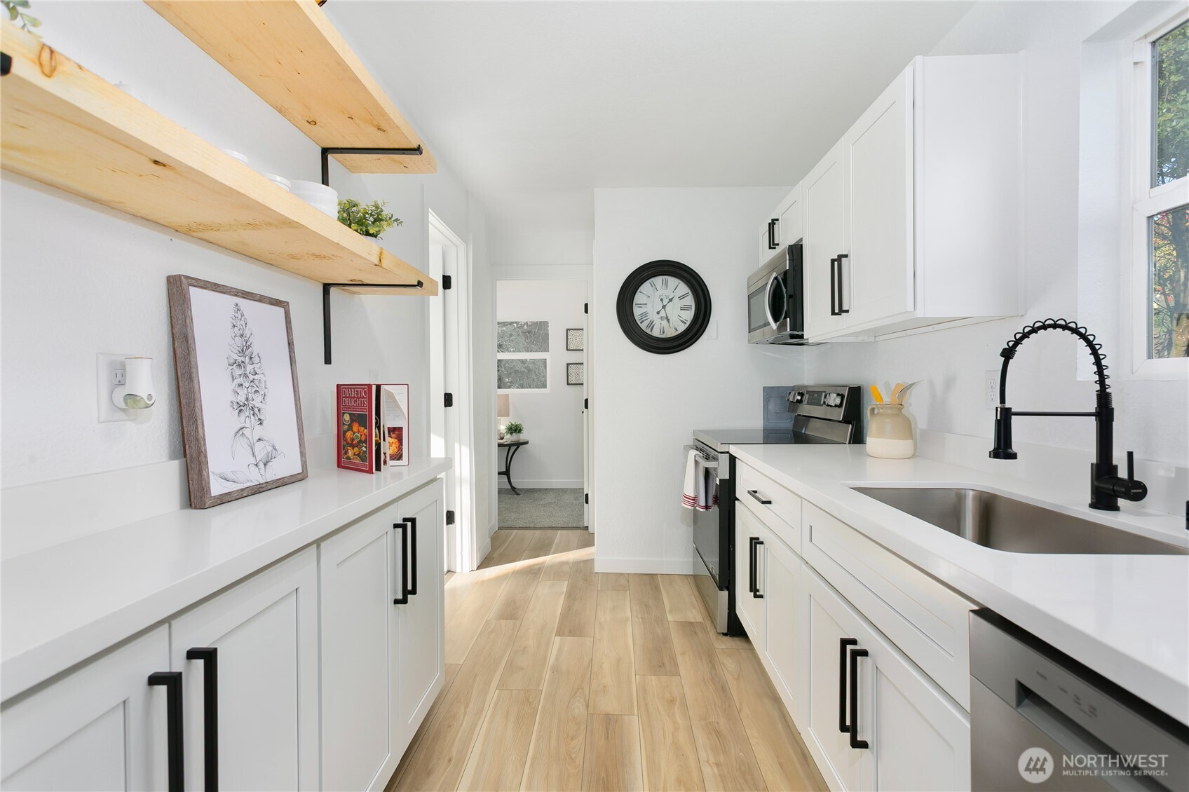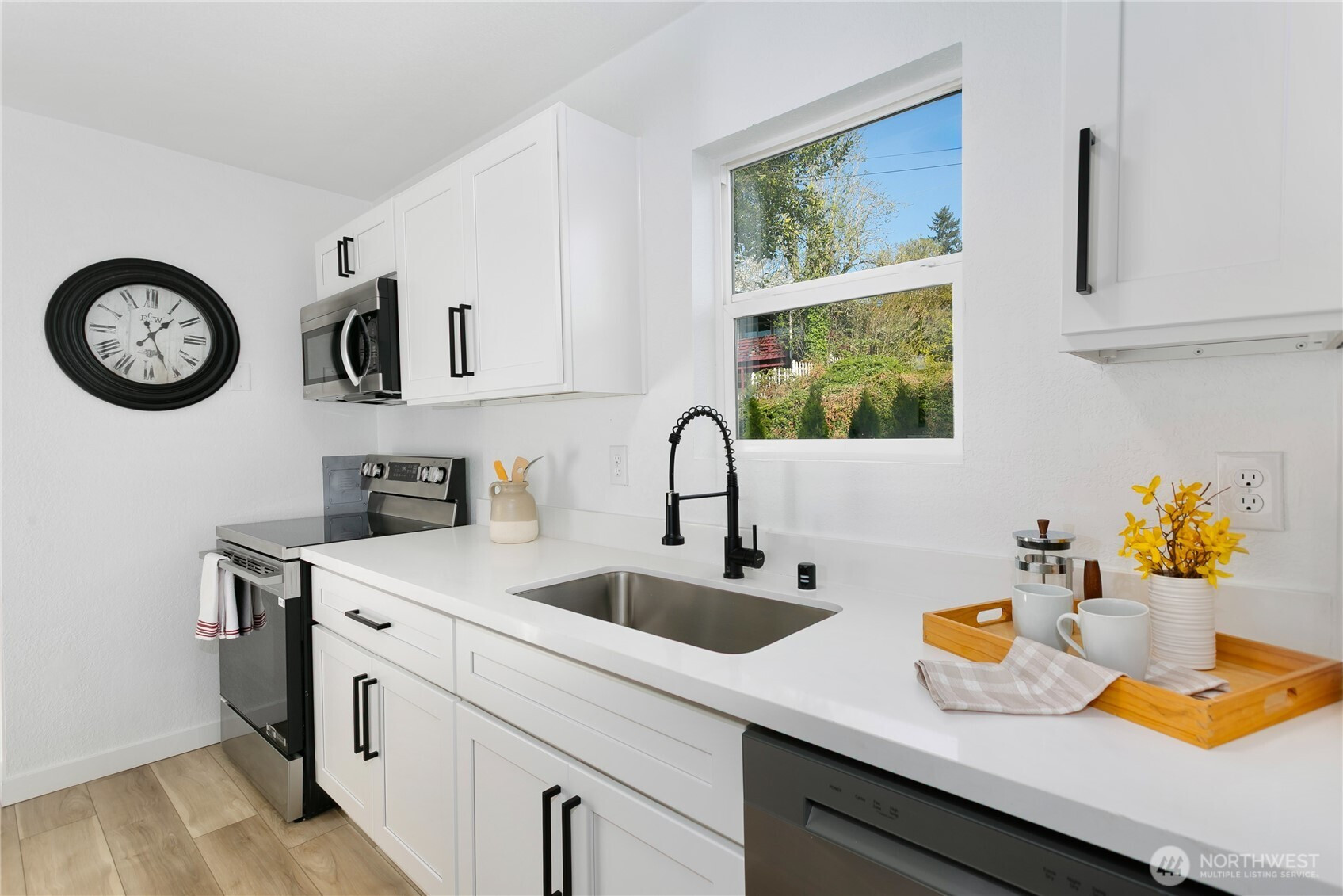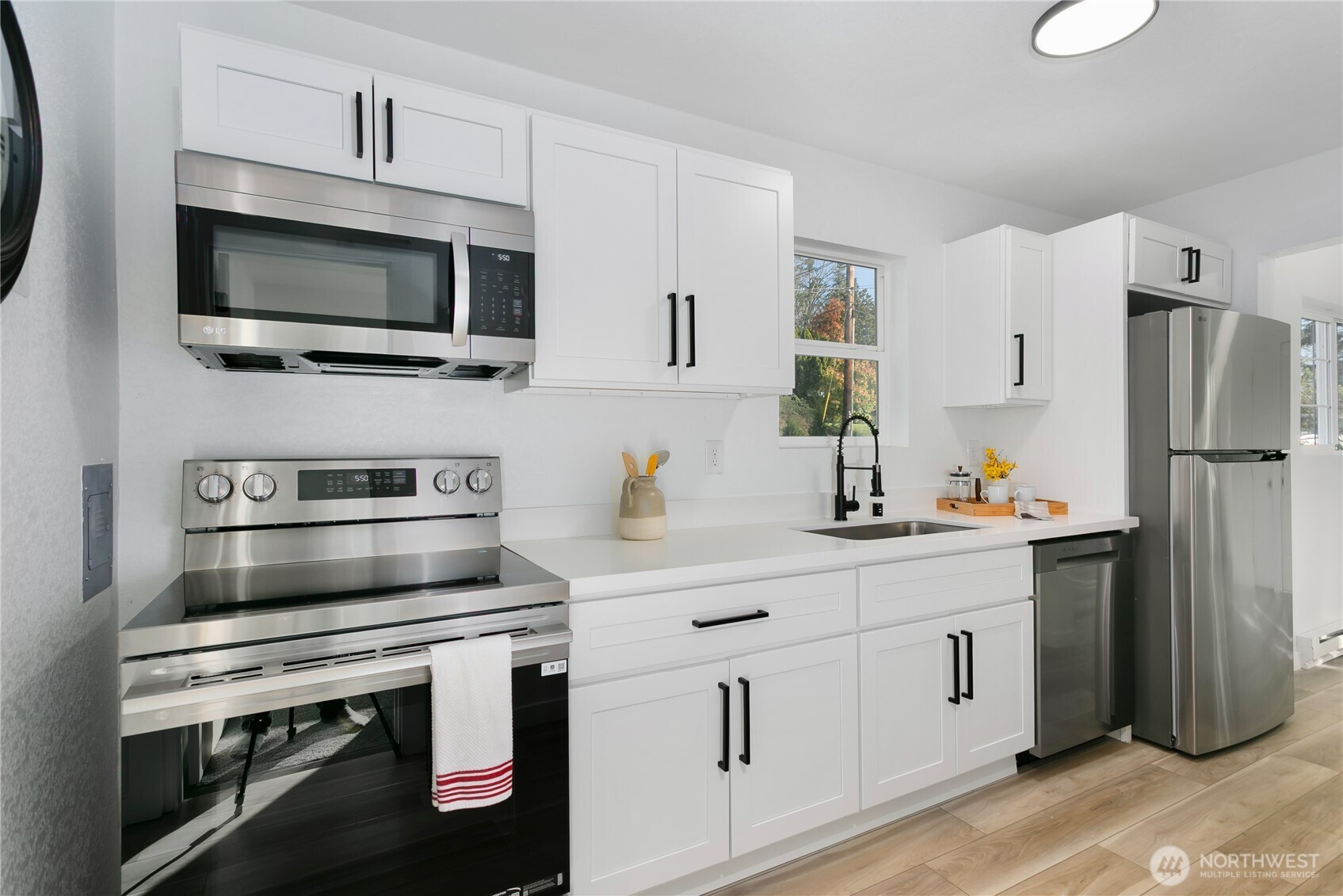Live Amongst the Trees and Enjoy Partial Sound Views at this Cozy Cottage steps from Downtown Port Orchard! This home features 2 bedrooms + 1 Full Bathroom w/new vanity, bathtub/shower w/tile surround! NEW LVP flooring and carpet throughout & freshly painted inside and out! Kitchen features custom wood shelving, quartz countertops, shaker-style cabinetry + NEW stainless steel appliances! Enjoy sitting in the living / dining room surrounded by old growth forest! Backyard is fully fenced, all NEW cedar fencing, terraced landscape gives PNW trail / treehouse vibes! Daylight basement for ample storage / studio / wine cellar? NEW Roof / Water Heater. This location is hard to beat! Walk to schools, parks, downtown Port Orchard shops and restaurants, Ferry Terminal and Public Transit! AirBNB Maybe?? NO HOA