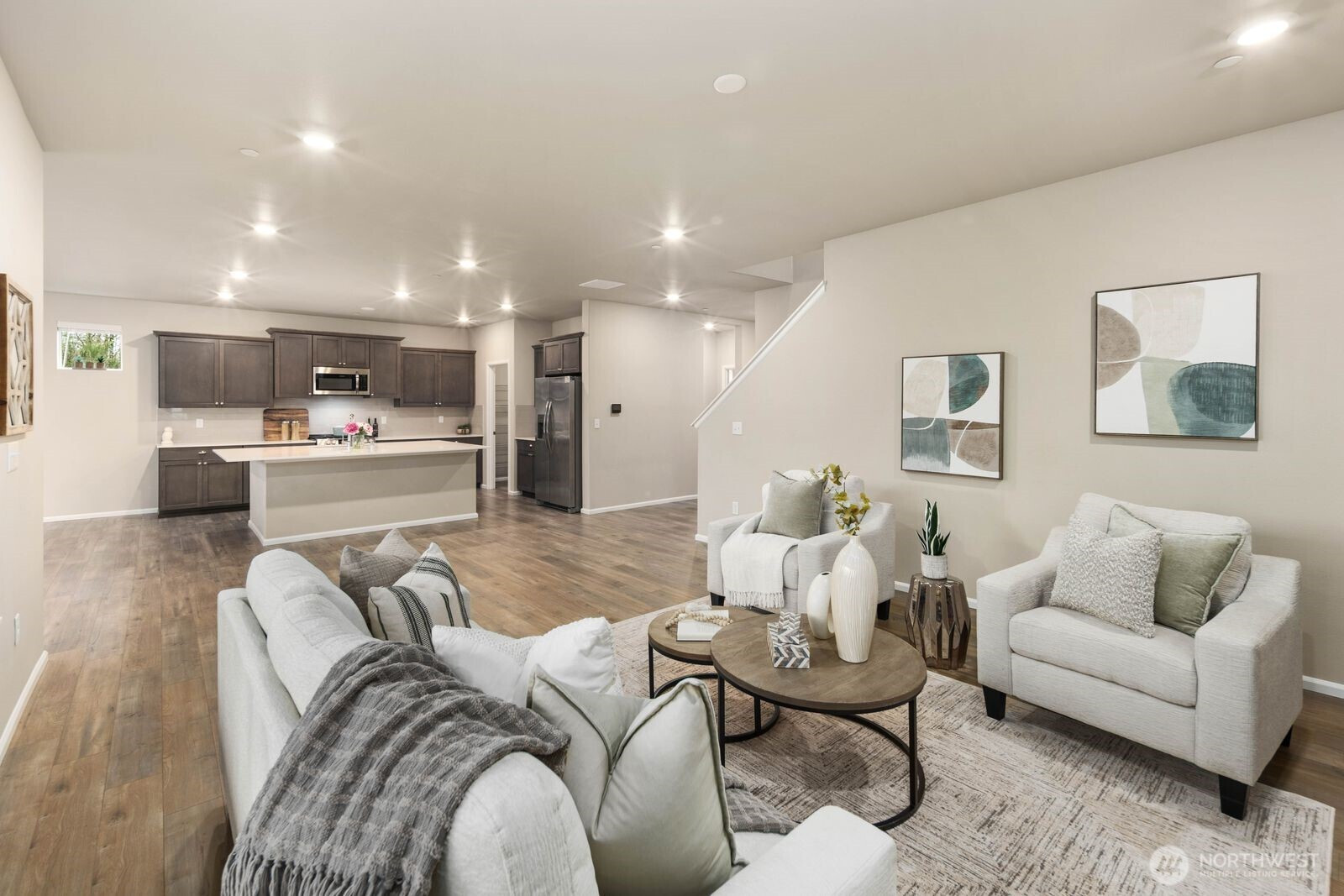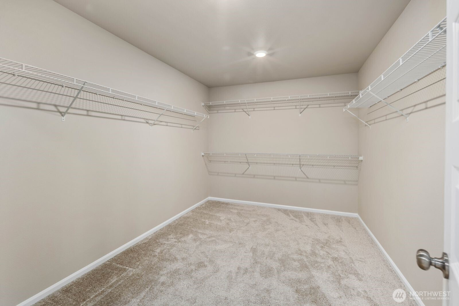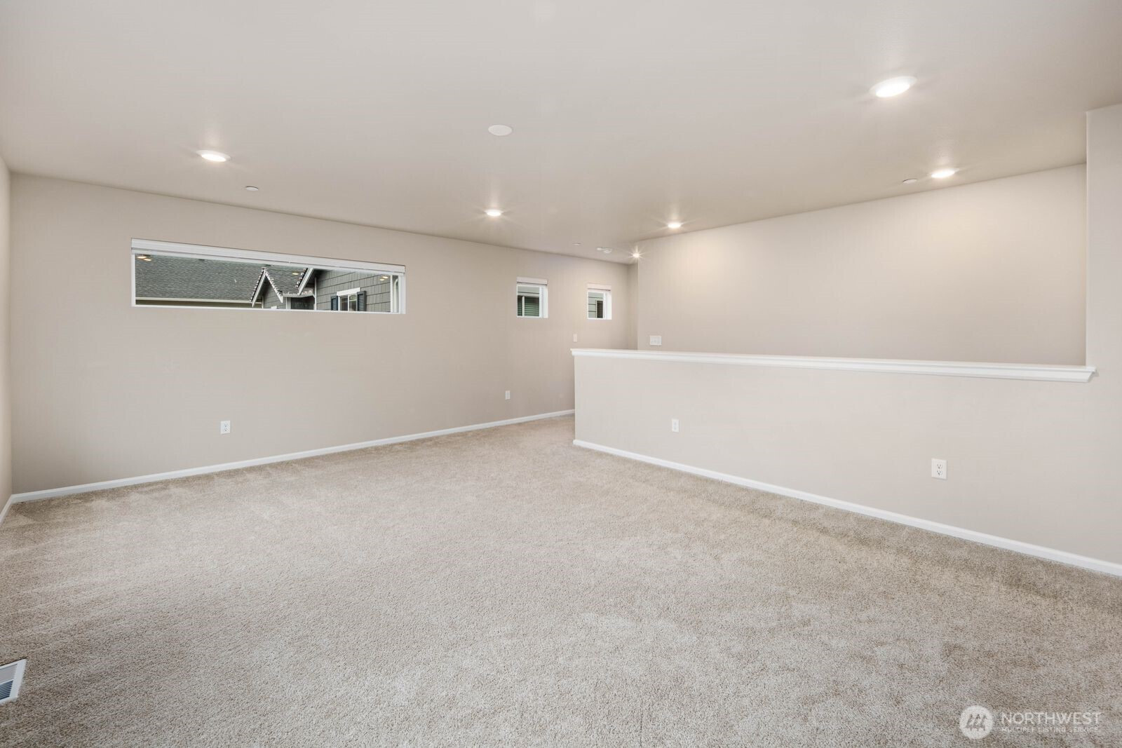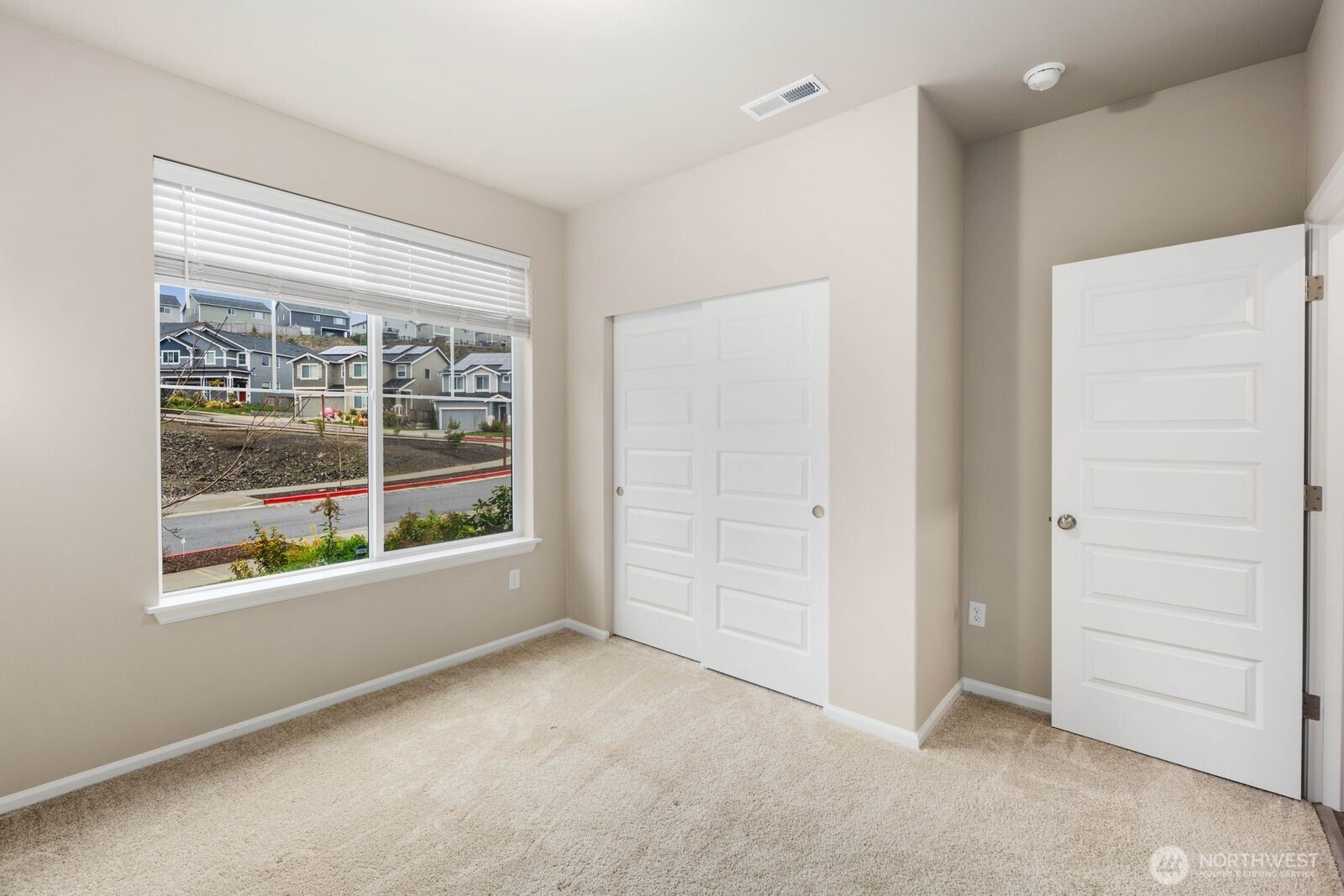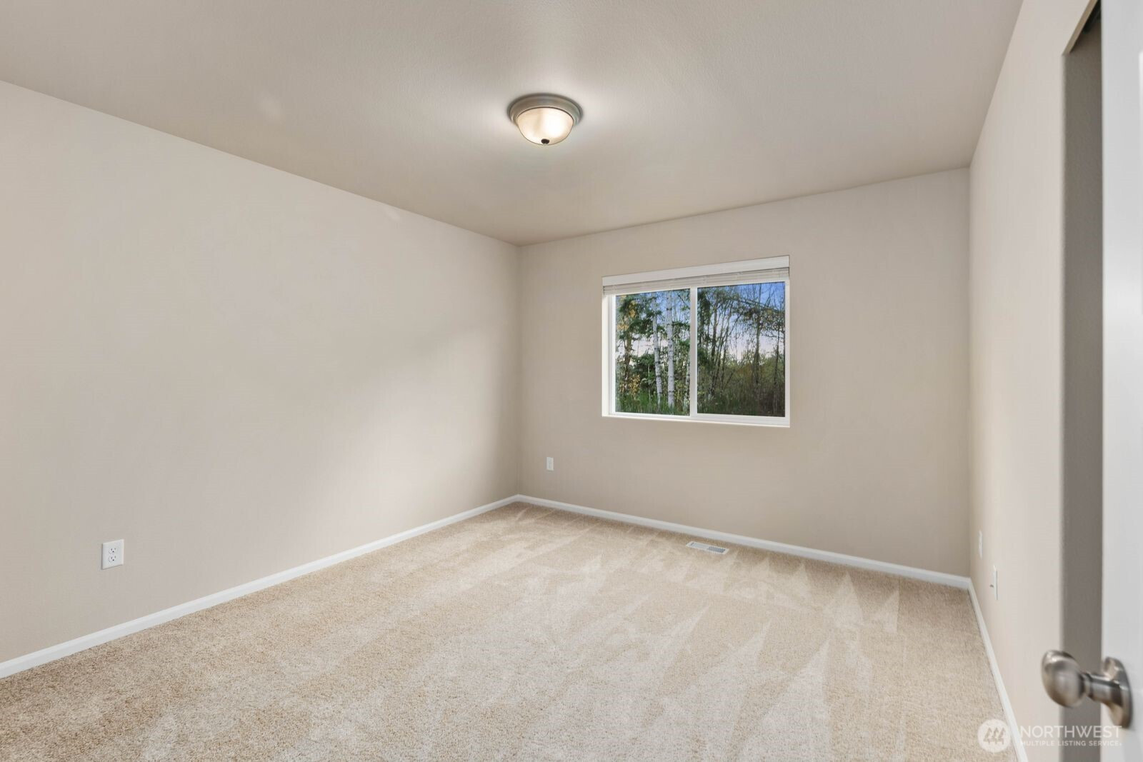 Discover serene living in at Soundview Estates. Featuring 5 bedrooms, 2.75 baths, including a luxurious primary bedroom with 5-piece en suite, large walk-in closet, and views of lush greenery, plus a main-floor bedroom with 3/4 bathroom. A spacious loft and expansive covered patio provide year-round entertaining. The 3,081 sq. ft. home boasts an oversized kitchen island with abundant cabinetry, a pantry, custom soft-close cabinets, quartz counters, stainless steel appliances, A/C, and a fully fenced yard. High-tech cable, smart home devices. Oversized garage w/storage. Situated on a prime land at the end of the street, overlooking a greenbelt with nearby trails and a playground - an ideal setting for comfort, seclusion, and modern living.