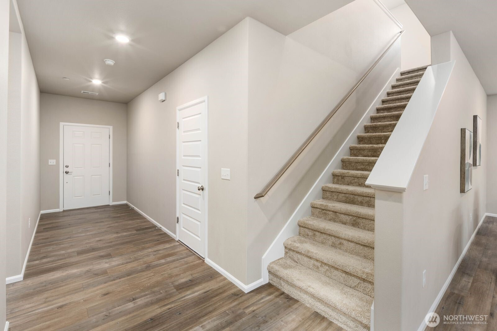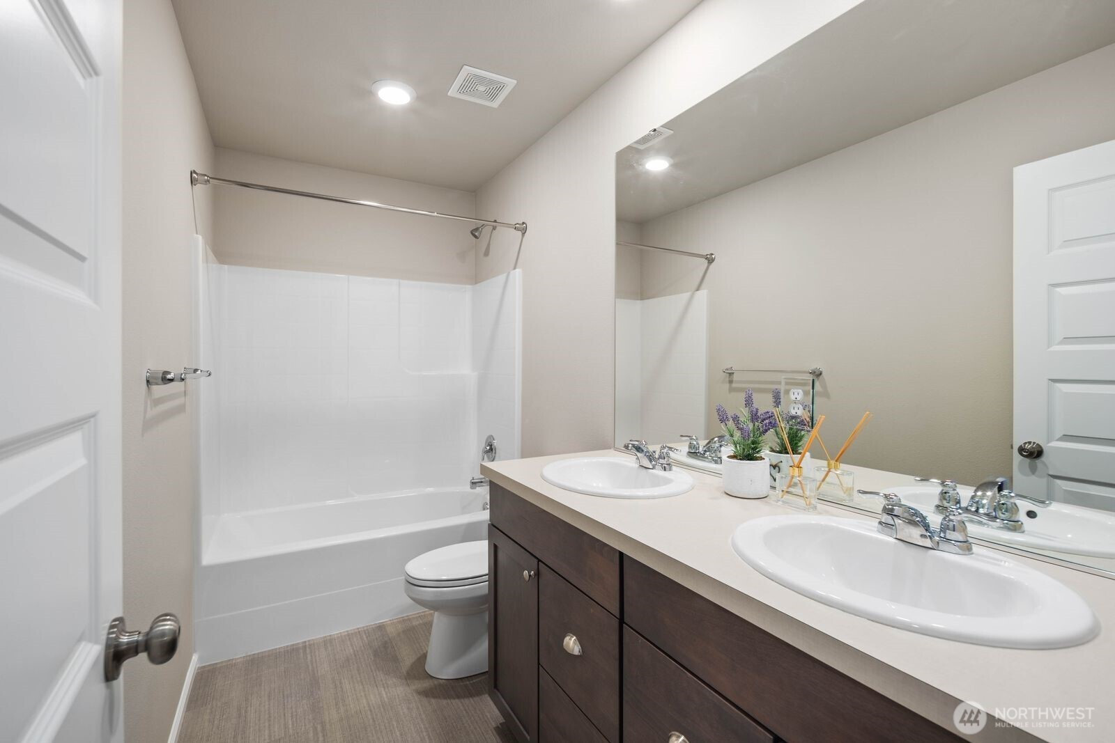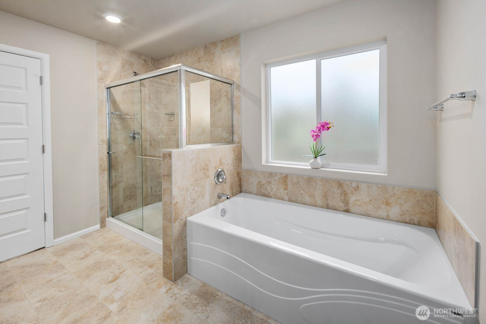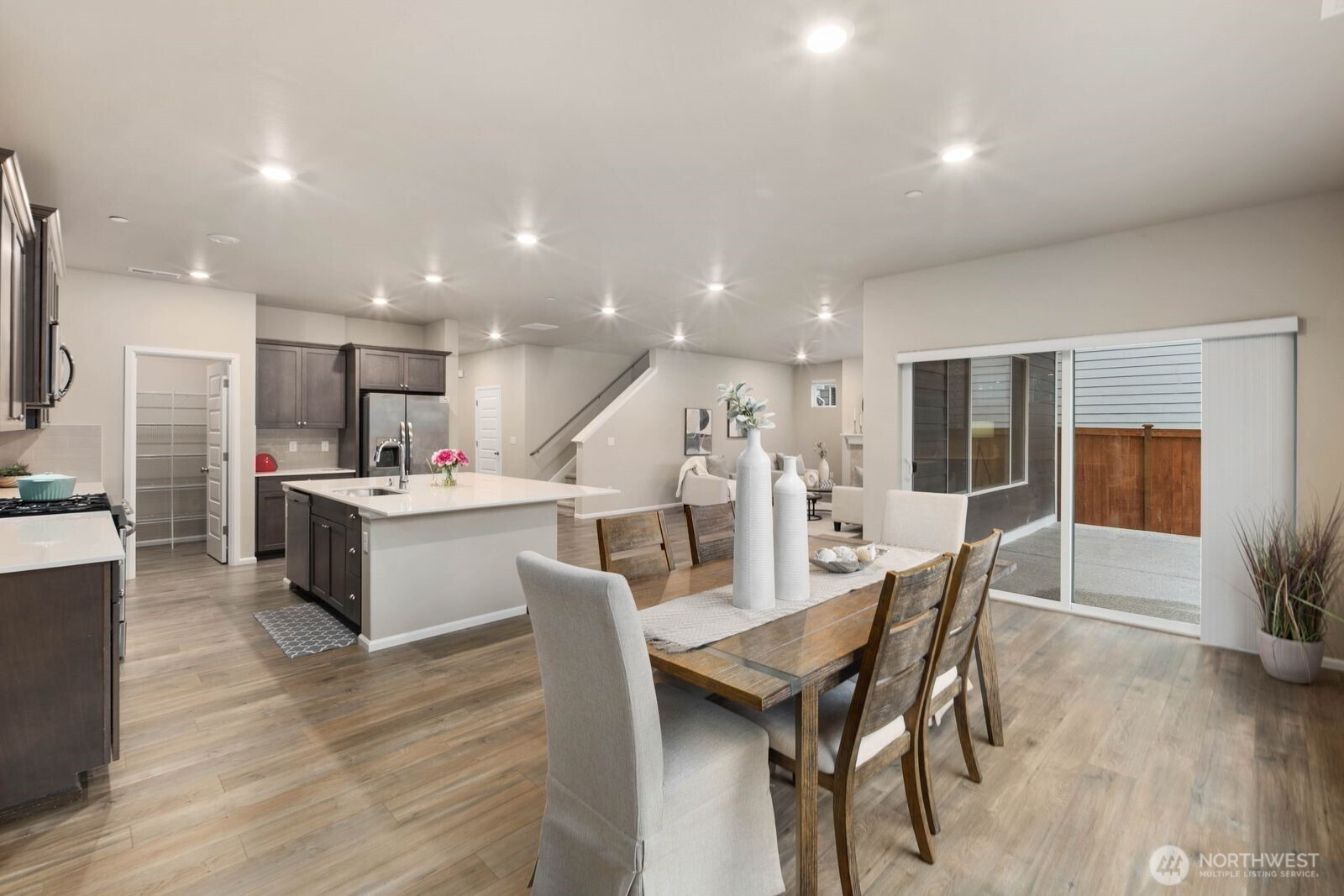 Discover serene living in at Soundview Estates. Featuring 5 bedrooms, 2.75 baths, including a luxurious primary bedroom with 5-piece en suite, large walk-in closet, and views of lush greenery, plus a main-floor bedroom with 3/4 bathroom. A spacious loft and expansive covered patio provide year-round entertaining. The 3,081 sq. ft. home boasts an oversized kitchen island with abundant cabinetry, a pantry, custom soft-close cabinets, quartz counters, stainless steel appliances, A/C, and a fully fenced yard. High-tech cable, smart home devices. Oversized garage w/storage. Situated on a prime land at the end of the street, overlooking a greenbelt with nearby trails and a playground - an ideal setting for comfort, seclusion, and modern living.