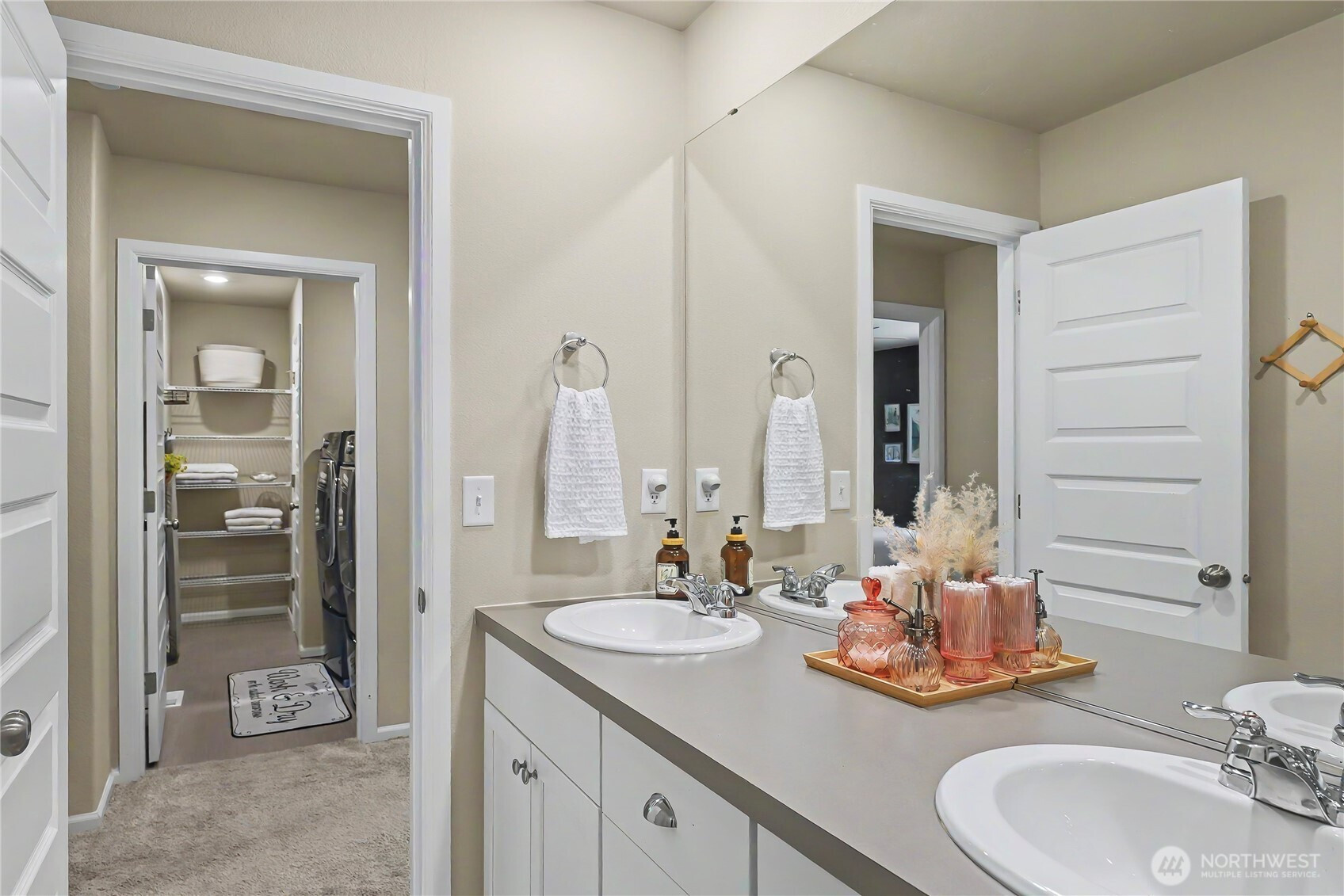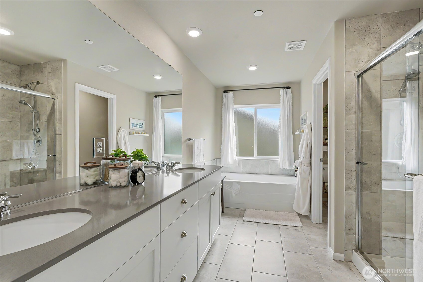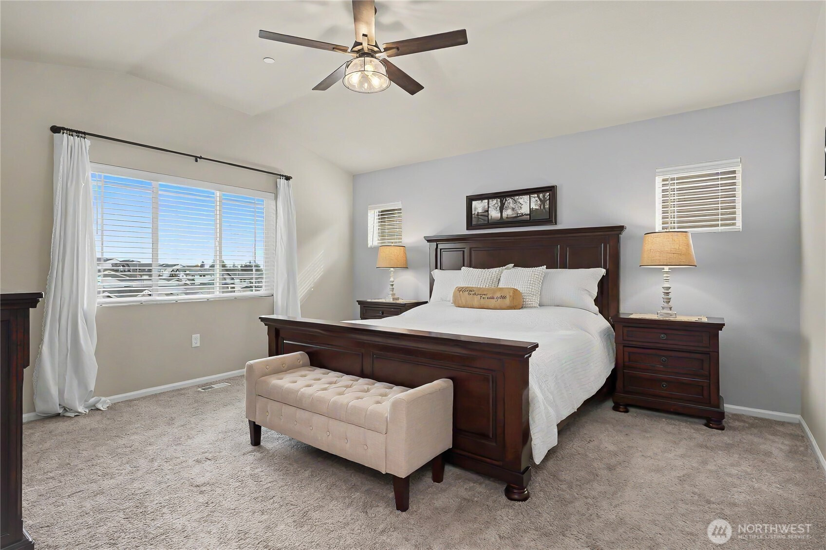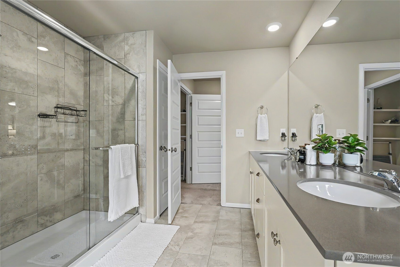 Welcome to the sought-after Soundview Estates in West Bremerton! This beautifully maintained two-story Craftsman home offers a perfect blend of comfort and style. The light-filled, open-concept kitchen and living area is ideal for entertaining, featuring a spacious island that’s perfect for meal prep, casual dining, or gathering with friends and family. There is a also a walk-in pantry, Upstairs, the cozy loft (bonus room) provides a versatile space for relaxing, working, or play. The generous primary suite includes an ensuite bath, walk-in closet, and even offers views of Mt. Baker on clear days. Three additional bedrooms provide flexibility, with one currently set up as a home office and another as a sewing room. . Convenient upstairs laundry adds to the home’s thoughtful layout. Great room, loft, kitchen and all bedrooms are wired with ports for high speed internet. The central ethernet distribution panel is in the utility/laundry room. The garage boasts significant storage space with multiple overhead racks. Enjoy added privacy in the backyard with no neighbors behind and only one adjacent home. Energy-efficient solar panels help keep utility costs low. The community features walking trails, a park, and a play area for outdoor enjoyment. Ideally located near the freeway and naval base, this home combines peaceful living with convenient access to nearby amenities.
