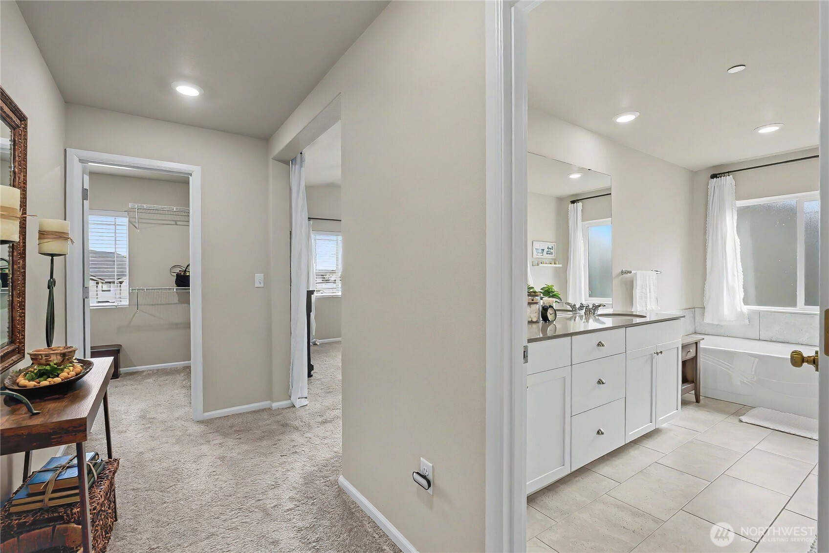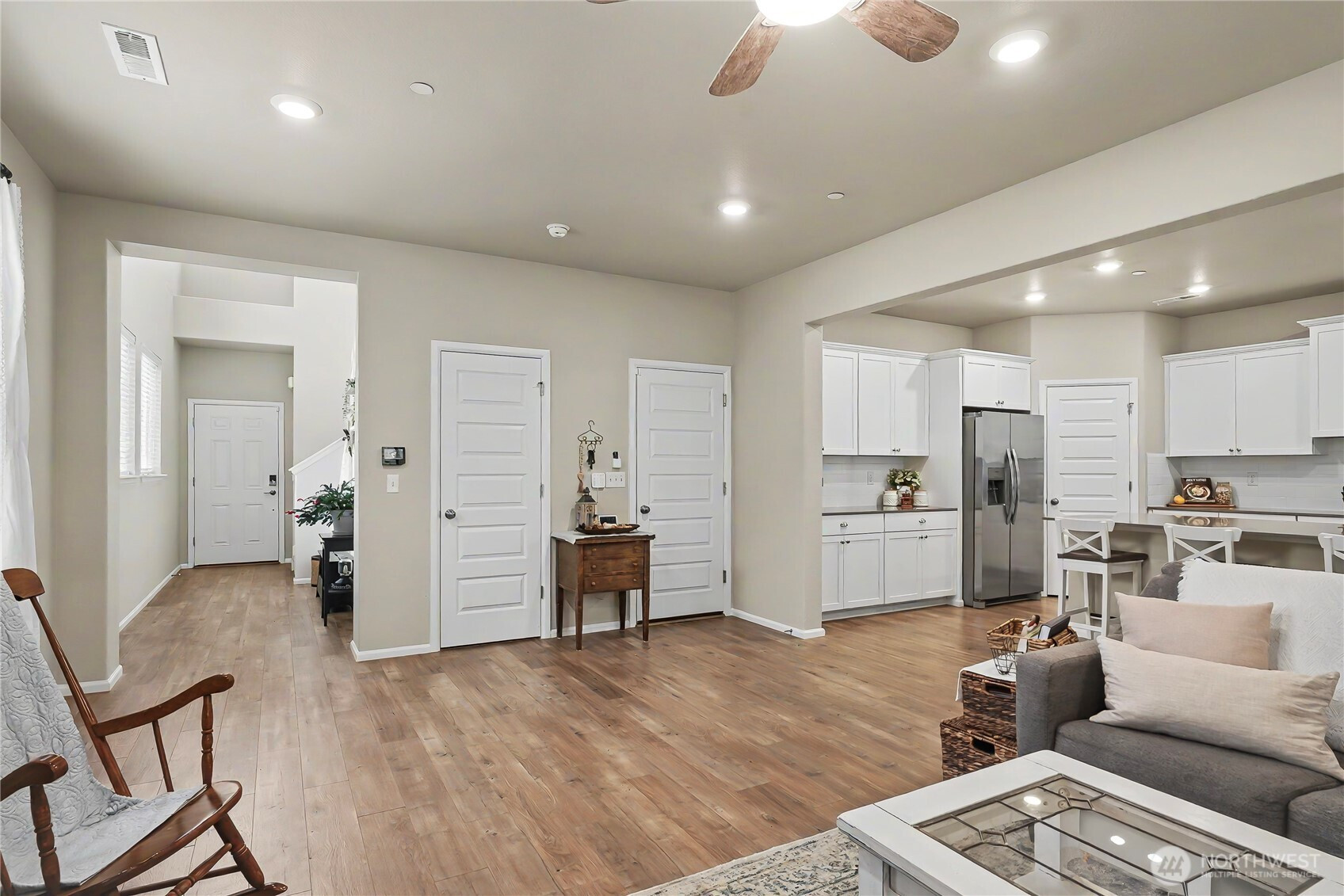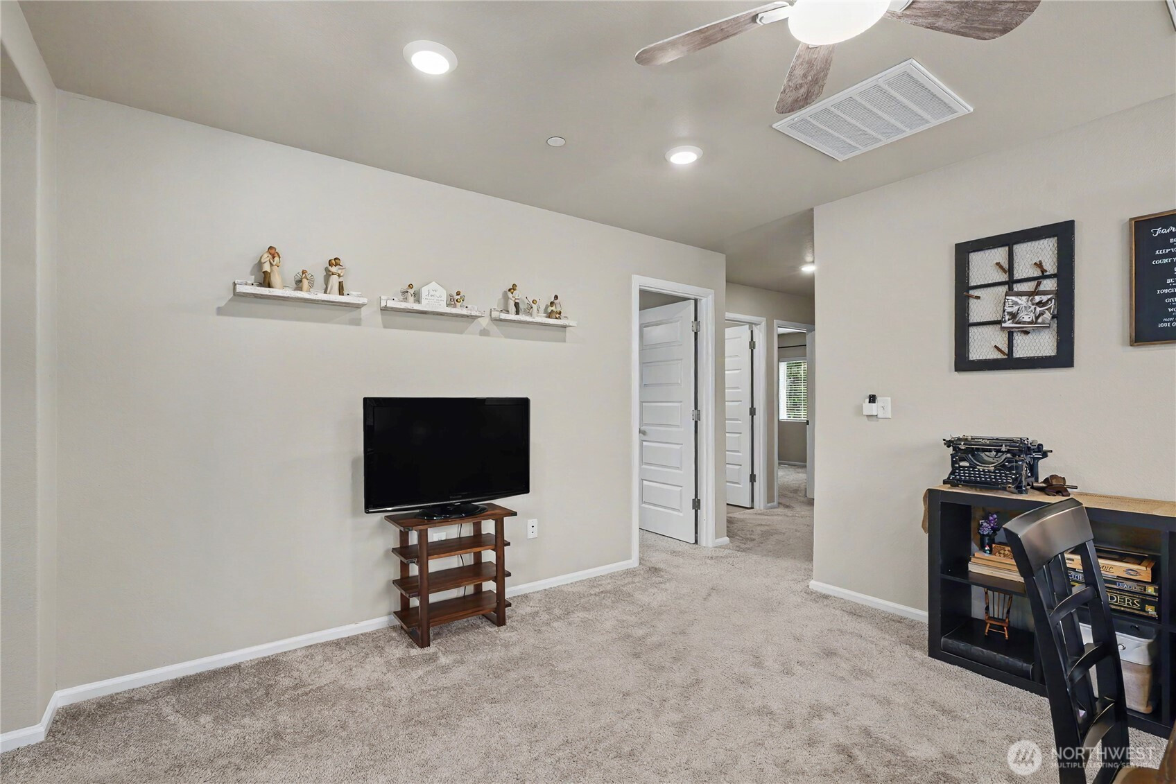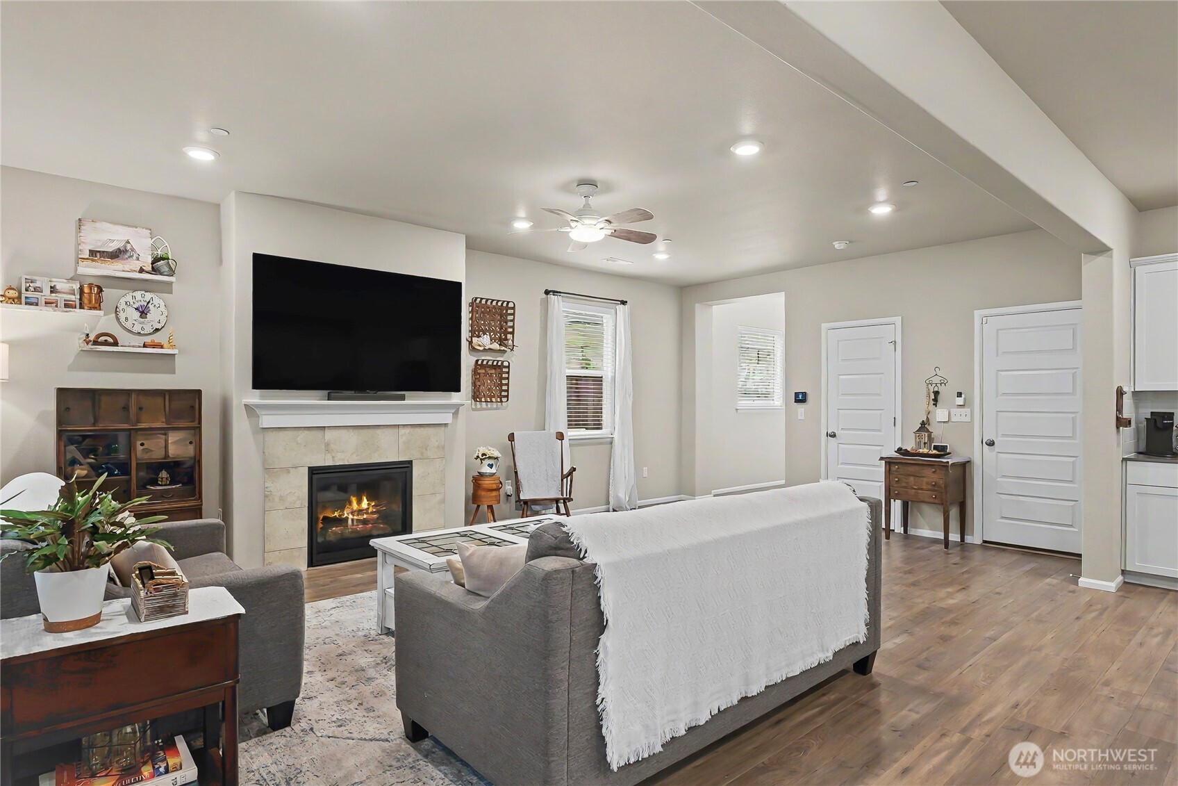 Welcome to the sought-after Soundview Estates in West Bremerton! This beautifully maintained two-story Craftsman home offers a perfect blend of comfort and style. The light-filled, open-concept kitchen and living area is ideal for entertaining, featuring a spacious island that’s perfect for meal prep, casual dining, or gathering with friends and family. There is a also a walk-in pantry, Upstairs, the cozy loft (bonus room) provides a versatile space for relaxing, working, or play. The generous primary suite includes an ensuite bath, walk-in closet, and even offers views of Mt. Baker on clear days. Three additional bedrooms provide flexibility, with one currently set up as a home office and another as a sewing room. . Convenient upstairs laundry adds to the home’s thoughtful layout. Great room, loft, kitchen and all bedrooms are wired with ports for high speed internet. The central ethernet distribution panel is in the utility/laundry room. The garage boasts significant storage space with multiple overhead racks. Enjoy added privacy in the backyard with no neighbors behind and only one adjacent home. Energy-efficient solar panels help keep utility costs low. The community features walking trails, a park, and a play area for outdoor enjoyment. Ideally located near the freeway and naval base, this home combines peaceful living with convenient access to nearby amenities.