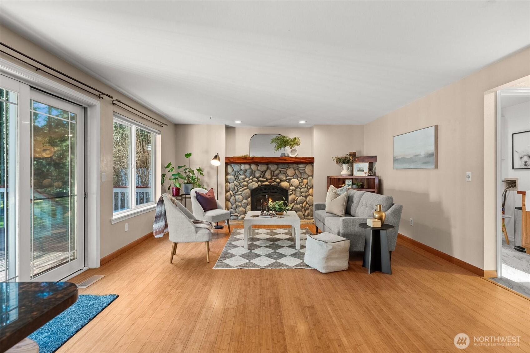 Welcome to comfortable country living in this well maintained farmhouse. This home is located at the end of a cul-de-sac on over 2 peaceful acres, this place has it all. Inside this spacious home, you will find thoughtful upgrades and a timeless farm-inspired design. An oversized living room provides flexible living and entertaining space. In the kitchen you'll love the updated appliances, views of the backyard, and granite countertops. The kitchen flows into the family room anchored by a beautiful custom stone fireplace and mantel. A dedicated main floor office allows you to work from home with a beautiful view or use as a guest room. Brand new carpeting greets you on your way upstairs and light beams in from the oversized windows throughout. Retreat to the serene primary suite, where a soaking tub and a beautifully remodeled bath adorned with travertine and slate finishes create a private sanctuary. A charming covered wrap around porch invites you to slow down and savor the beauty of your surroundings. The garden is spring ready for you and your green thumb. Don't miss the huge shop with a pellet stove and ample parking for all of your projects and toys. Nearby trails offer scenic places for you to explore and reconnect with nature. Blending elevated comfort, exceptional craftsmanship, and breathtaking natural surroundings, this extraordinary property offers a rare opportunity for living in a peaceful country setting.