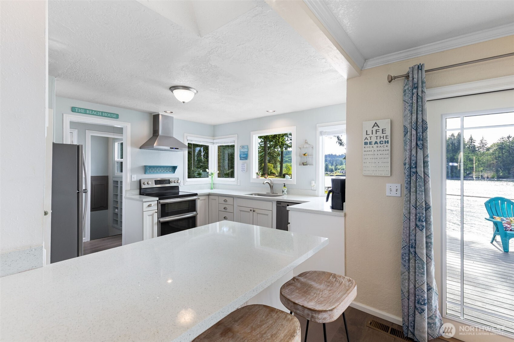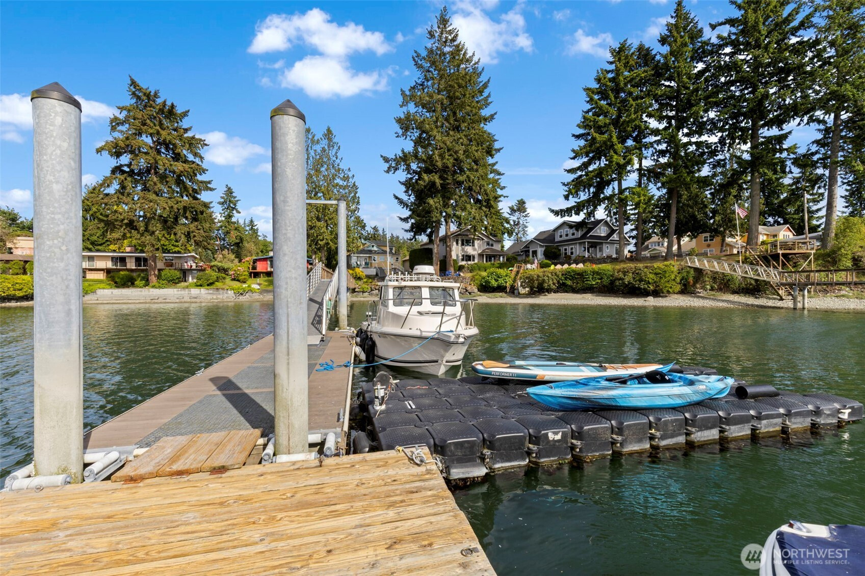 Welcome to your waterfront dream in charming Keyport, WA! This 2,775 sq ft home includes a guest suite above the garage with its own kitchenette and bath, perfect for visitors or home office. Inside, you'll find 2 bedrooms, a finished walkout basement, and several flexible living spaces. Enjoy 75' of prime waterfront with a 190' dock and deep water moorage, ideal for boating, fishing, kayaking, and watersports. Just a short boat ride to Poulsbo and Liberty Bay. Evenings glow with gas powered tiki torches and bistro string lights, creating a magical space to unwind. Keyport offers a post office, two parks, boat launch and a tight knit community where neighbors stroll daily. A rare chance to own a slice of paradise in a one of a kind setting!