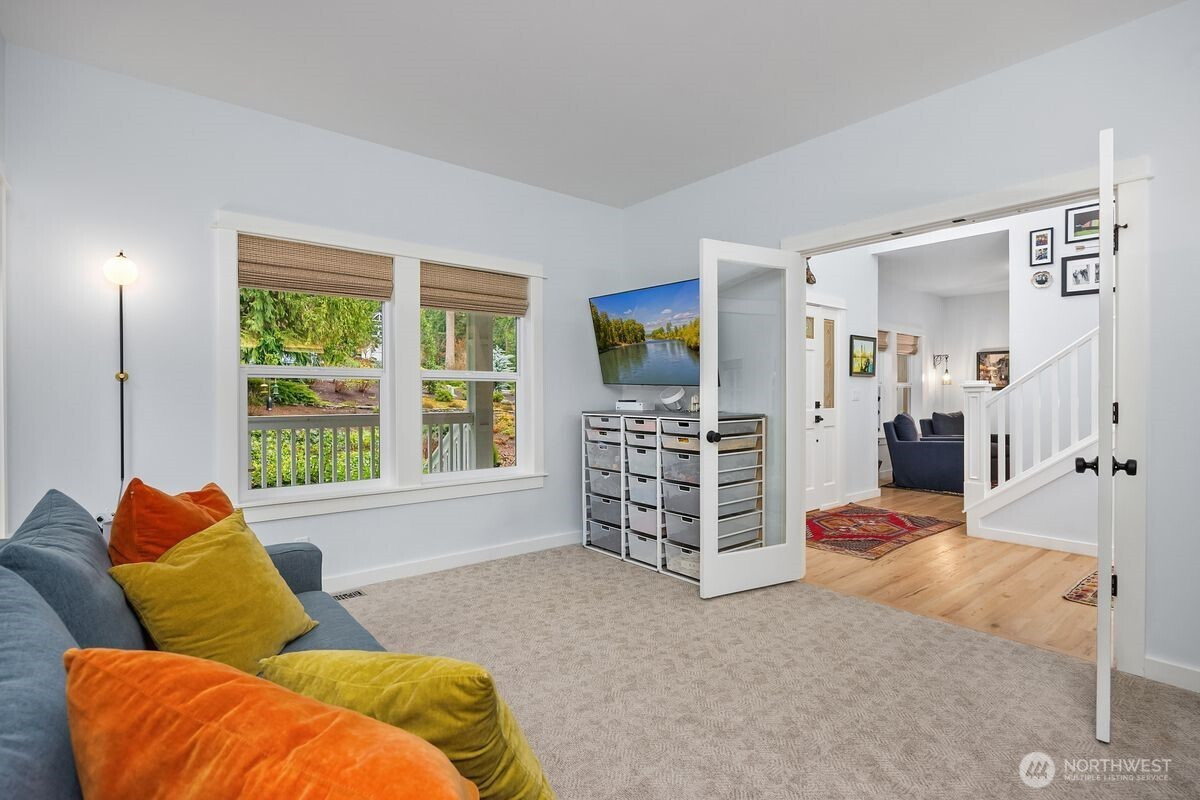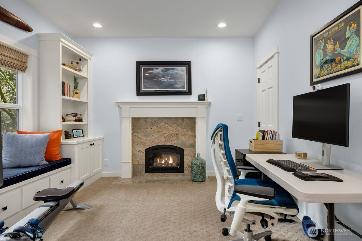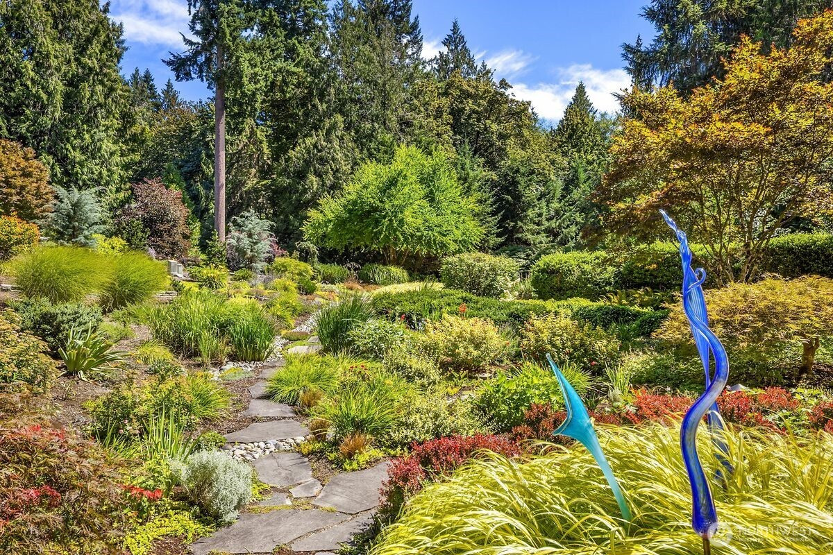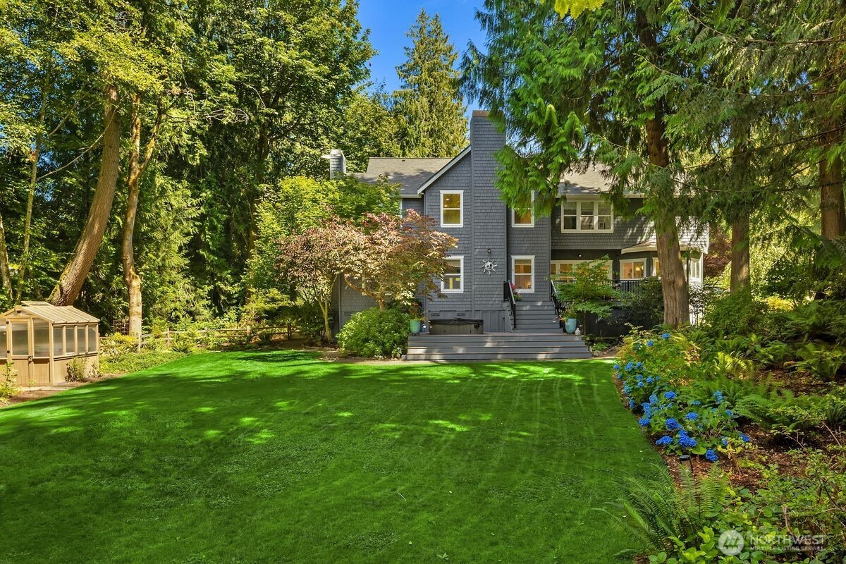 Understated elegance meets timeless design in this beautifully updated residence in Hidden Cove Estates. A gracious floorplan blends comfort and sophistication, ideal for entertaining and everyday living. Vaulted ceilings and expansive windows fill the home with natural light and frame the private backyard. The remodeled kitchen features an artisan walnut range hood, marble tile backsplash, and luxury appliances and finishes. Upstairs offers 4 bedrooms total including an ensuite guest bedroom and a spacious en-suite primary retreat with a new, luxurious marble tiled shower, new soaking tub and vanities. The main level includes a private study with fireplace and built-in cabinets plus a flexible office or family room with French doors. A wood-framed greenhouse, fenced in garden beds and Tesla Powerwall battery backup enhance sustainability and convenience. Set on a private, professionally landscaped .85-acre lot with neighborhood trail access leading to Hidden Cove Park to enjoy the dock and waterfront. Extraordinary privacy with open space to the west yet all the benefits of a beautiful, established neighborhood.