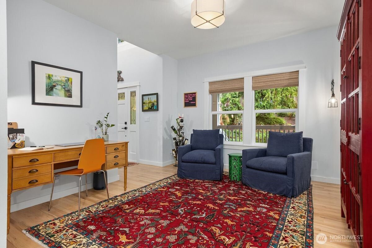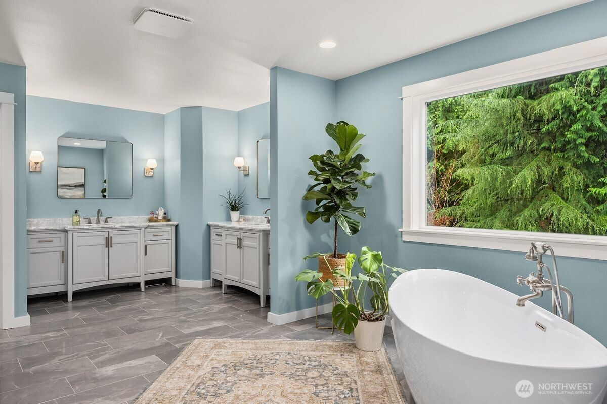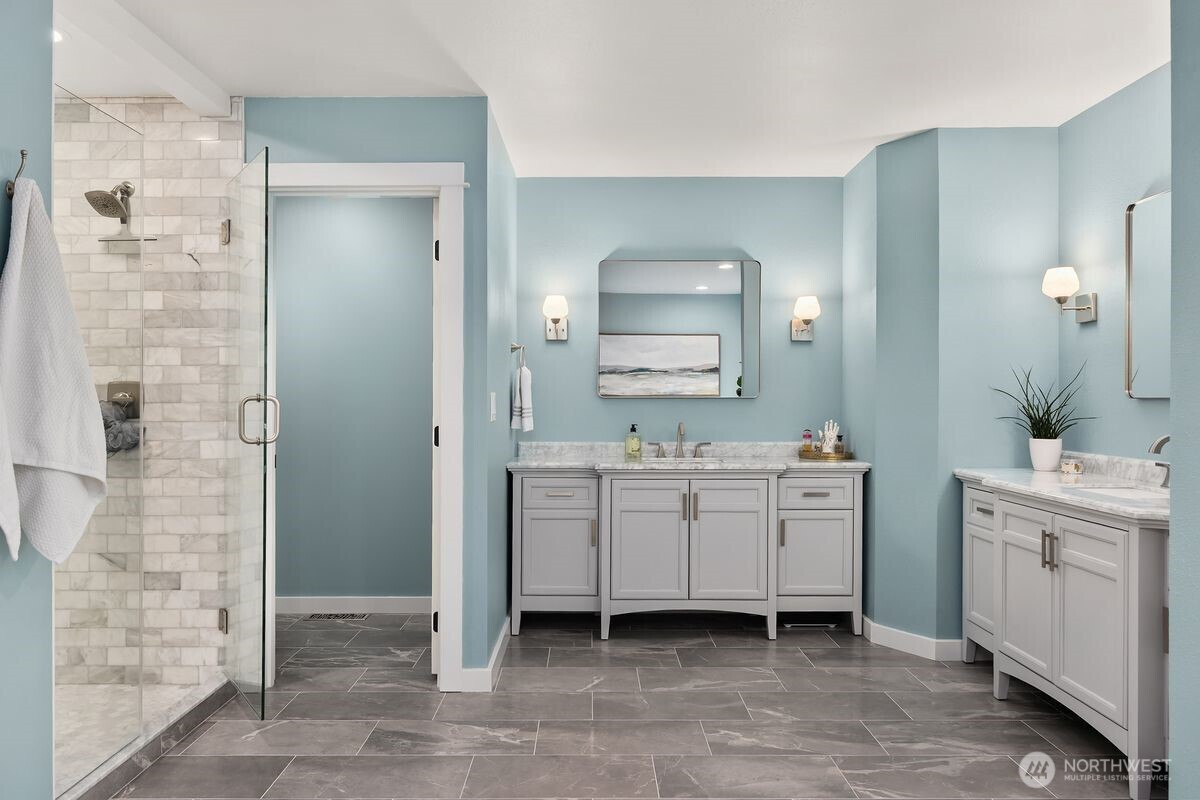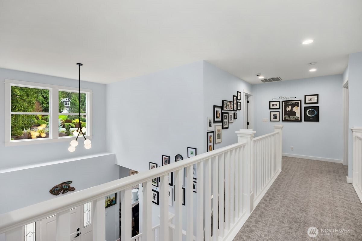 Understated elegance meets timeless design in this beautifully updated residence in Hidden Cove Estates. A gracious floorplan blends comfort and sophistication, ideal for entertaining and everyday living. Vaulted ceilings and expansive windows fill the home with natural light and frame the private backyard. The remodeled kitchen features an artisan walnut range hood, marble tile backsplash, and luxury appliances and finishes. Upstairs offers 4 bedrooms total including an ensuite guest bedroom and a spacious en-suite primary retreat with a new, luxurious marble tiled shower, new soaking tub and vanities. The main level includes a private study with fireplace and built-in cabinets plus a flexible office or family room with French doors. A wood-framed greenhouse, fenced in garden beds and Tesla Powerwall battery backup enhance sustainability and convenience. Set on a private, professionally landscaped .85-acre lot with neighborhood trail access leading to Hidden Cove Park to enjoy the dock and waterfront. Extraordinary privacy with open space to the west yet all the benefits of a beautiful, established neighborhood.