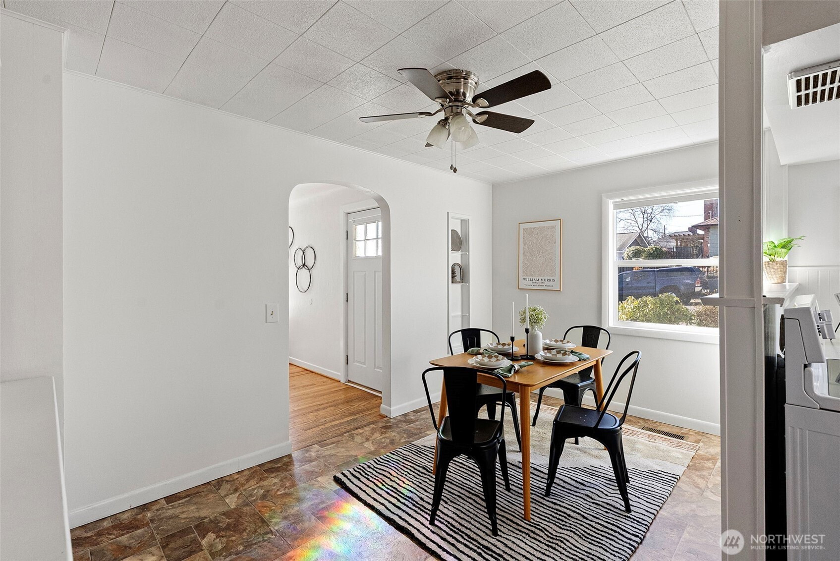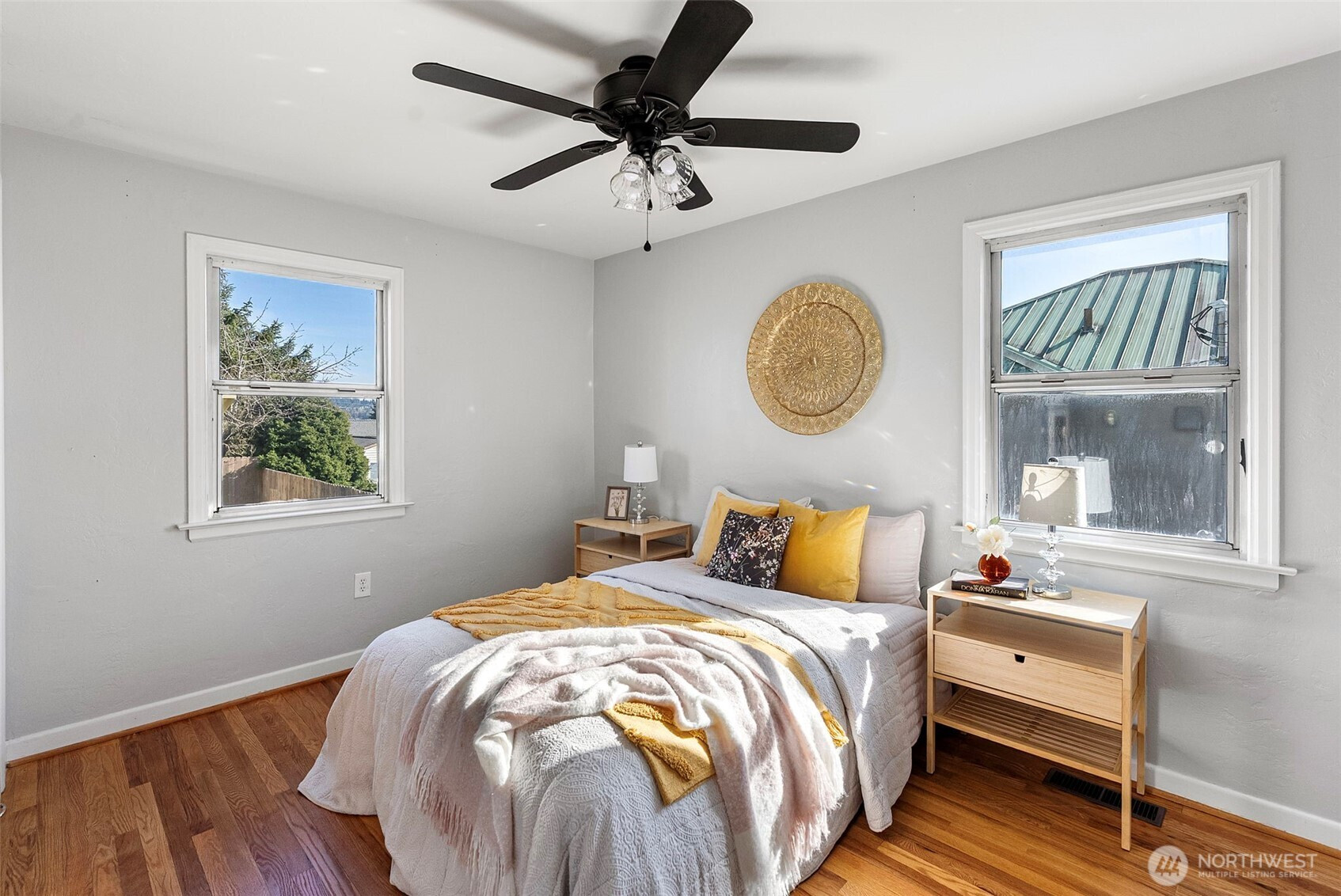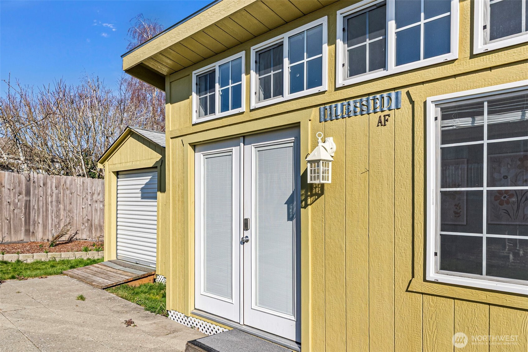 How do you know someone lives in Manette? Don’t worry… they’ll tell you. And honestly, who can blame them? Welcome to this 3 bedroom, 1.75 bath home in the heart of sought-after Manette is much larger than it appears! Where classic character meets PNW lifestyle. Inside, you’ll appreciate the timeless details that make homes like this so special, including plaster walls, arched entryways, and beautiful hardwood floors that add warmth and personality throughout. The roomy kitchen features tons of countertop space, plenty of cabinets, room for everyone, and flows seamlessly into the dining area, creating an ideal setup for entertaining or cozy nights in. The primary bedroom is conveniently located on the main level with an adjoining 3/4 bath for easy living. A 2nd bedroom and full bath completes the main level. Upstairs, take in impressive sound views from the large 3rd bedroom. Downstairs, unfinished basement for tons of work space and storage. Enjoy watching ferries and sailboats glide across the sound from your spacious deck. Need extra space? The fully insulated 10x20 custom outbuilding is a rare bonus - perfect for a home office, gym, art studio, yoga space, ADU(?) or creative retreat. Located just around the corner from the park and only minutes to the ferry, PSNS, waterfront dining, and all that downtown Bremerton and Manette have to offer, this home delivers the best of location, charm, and lifestyle. Quiet, peaceful, and close to everything. Come check this cutie out!!