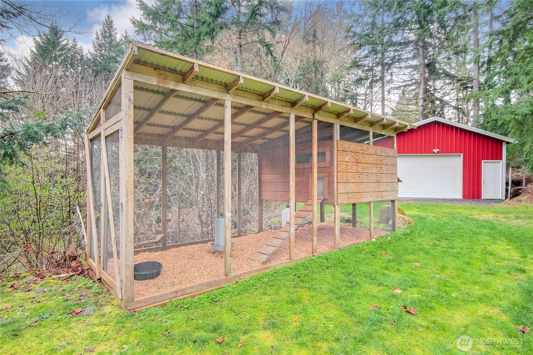 Discover the perfect blend of privacy, functionality, and Pacific Northwest charm with this well-maintained 2,188 sq ft home, built in 2016. Featuring 3 bedrooms and 2 bathrooms, this property sits on 1.76 acres, with a partially wooded setting that offers seclusion and a peaceful buffer from neighboring homes. Enjoy a partial Puget Sound view and the tranquility that comes with it. The home boasts a spacious layout and opens to a massive Trex deck—ideal for entertaining, relaxing, or taking in the natural surroundings.The property is fully equipped for both lifestyle and utility, including a detached 24x36 garage with ample space for vehicles, storage, or a workshop. A fresh gravel driveway provides easy access and abundant parking for guests, RVs, or additional equipment. For those seeking a bit of rural charm, the property also includes a well-built chicken coop, perfect for hobby farming or sustainable living. Conveniently located just a 5 minutes walk down a private road from the Olalla Bay Market and the community boat launch, you’ll enjoy easy access to local amenities while still feeling tucked away in your own private retreat. This is a rare opportunity to own a newer home with acreage, usable outbuildings, and water views in a highly desirable location.