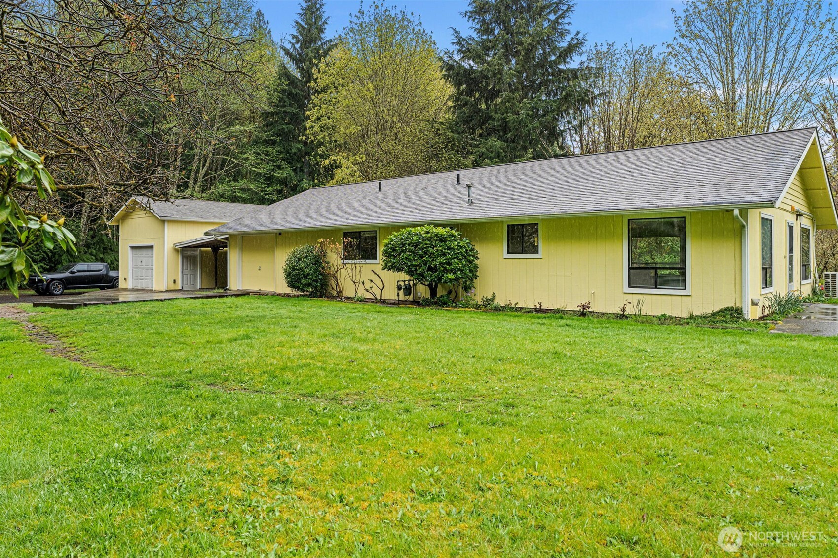 Perfectly positioned on 2 private acres down a secluded driveway, this 1,440 sq ft single-story home offers an ideal blend of space, privacy, and opportunity. Surrounded by a peaceful wooded setting, but also open, usable land perfect for gardening or outdoor entertaining. Inside, you’ll find a functional and inviting layout with open kitchen and living areas, vaulted ceilings, and abundant natural light. The home offers two bedrooms and a full bathroom, providing easy one level living. Stay comfortable all year round with a ductless mini-split heat pump, complemented by a cozy wood burning fireplace that adds warmth and character. Outside, an attached carport, attached and detached garages, and RV parking. Good for hobbies, storage, recreational vehicles, or future projects. With room to grow and plenty of potential, this home presents a fantastic opportunity for customization, expansion, or investment, all while enjoying the privacy of a tucked-away setting. Conveniently located near amenities while still offering a private, rural feel.