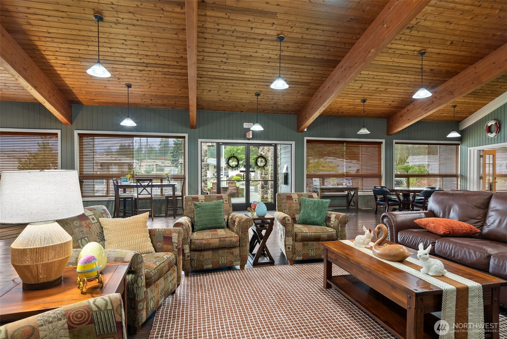 Welcome to Silverdale Estates, a well-established 55+ gated community with the clubhouse just across from this 3 bed, 2 bath home. Thoughtful layout offers both a living room and separate family room, creating flexible space for everyday living or entertaining. Kitchen features an island, abundant cabinetry, and stainless steel appliances, with easy flow into the main living areas. Bedrooms offer comfortable proportions, including a primary suite with walk-in closet and private bath. Large deck extends your living space outdoors. Carport and spacious shed add convenience and storage. Community amenities include clubhouse, indoor pool, hot tub, sauna, and walking trails. Close to Silverdale shopping, dining, and medical services.