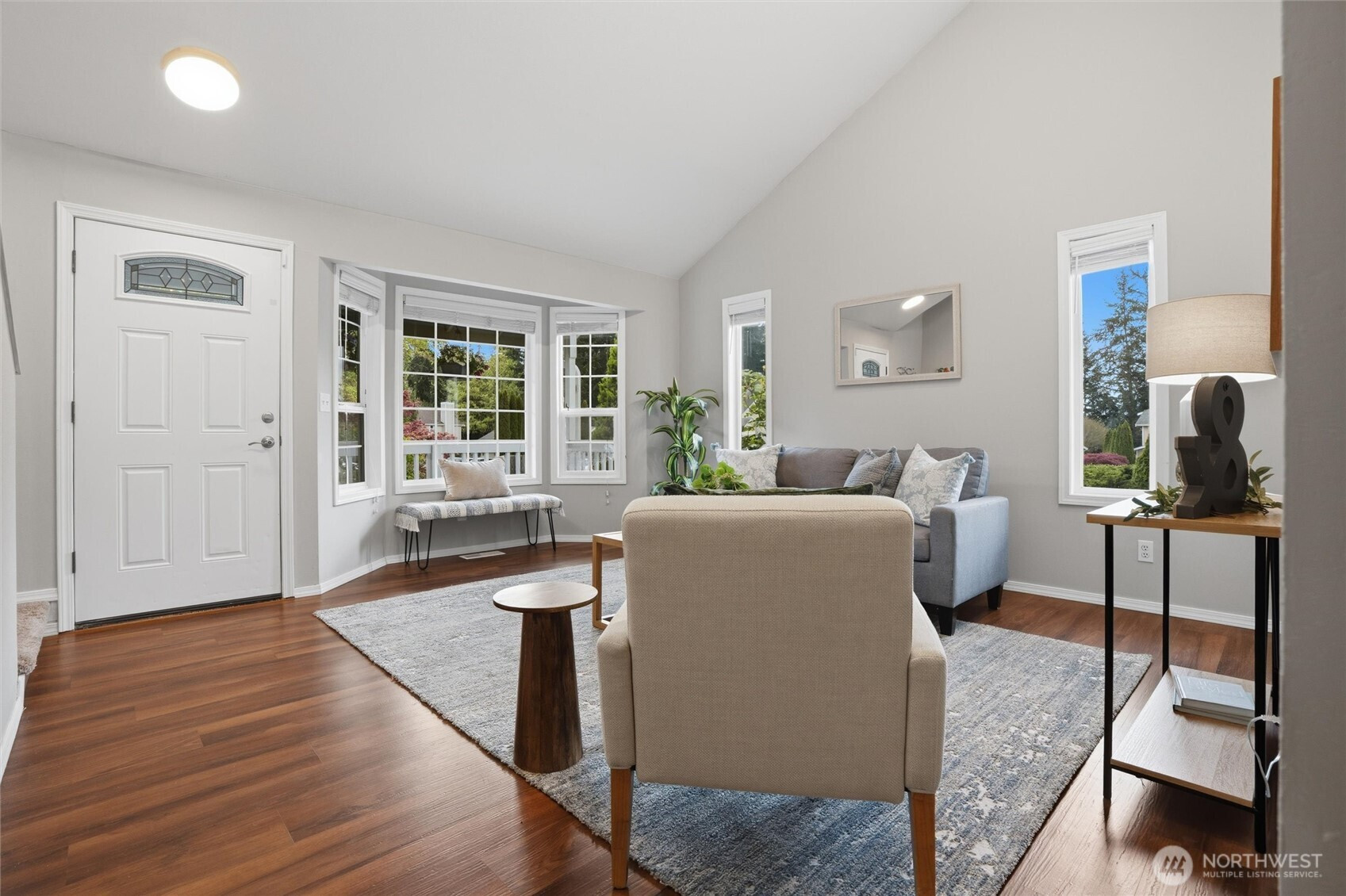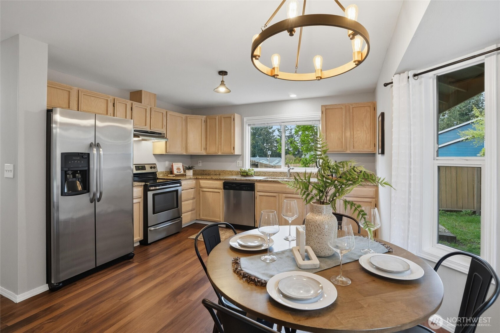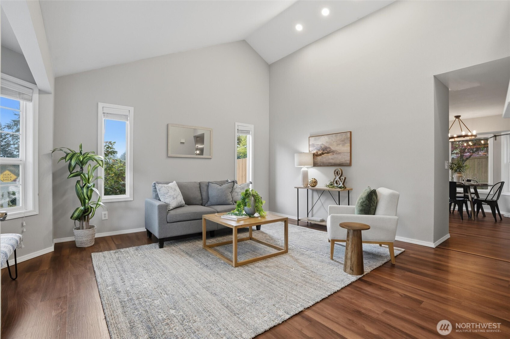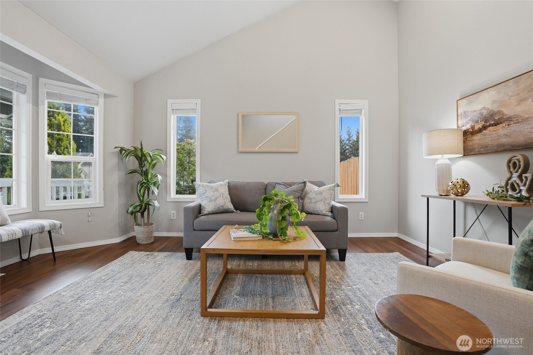 Perfectly placed between Poulsbo & Silverdale, this beautifully refreshed 3-bedroom, 2.5-bath home delivers the ideal blend of comfort, style & location. From the moment you step inside, soaring vaulted ceilings & abundant natural light create an inviting, airy ambiance that feels like home. The heart of the home is the thoughtfully designed granite kitchen, offering eating space & seamless flow into the cozy family room—perfect for everyday living or hosting. Step outside to a spacious deck overlooking a fenced corner lot, where summer BBQs, evening gatherings & backyard fun come naturally. Upstairs, retreat to a spacious primary suite featuring double closets & an updated bath, accompanied by two additional bedrooms offering flexibility for guests, work-from-home, or hobbies. Recent upgrades—including new LVP flooring on the main floor, fresh interior paint & central A/C—ensure modern comfort & move-in-ready ease. Beyond the home, enjoy a lifestyle that truly shines. Just minutes away, you’ll find local favorites like Silverdale Waterfront Park for scenic waterfront strolls, Old Mill Park with its charming boardwalk & beach access, and Nelson Park featuring playgrounds & open green space. Nature lovers will appreciate nearby access to Clear Creek Trail—a local favorite for walking, running, & enjoying the outdoors. All of this, plus quick access to shopping, medical, dining & both Bangor & Keyport Naval Bases, makes this location as convenient as it is desirable.