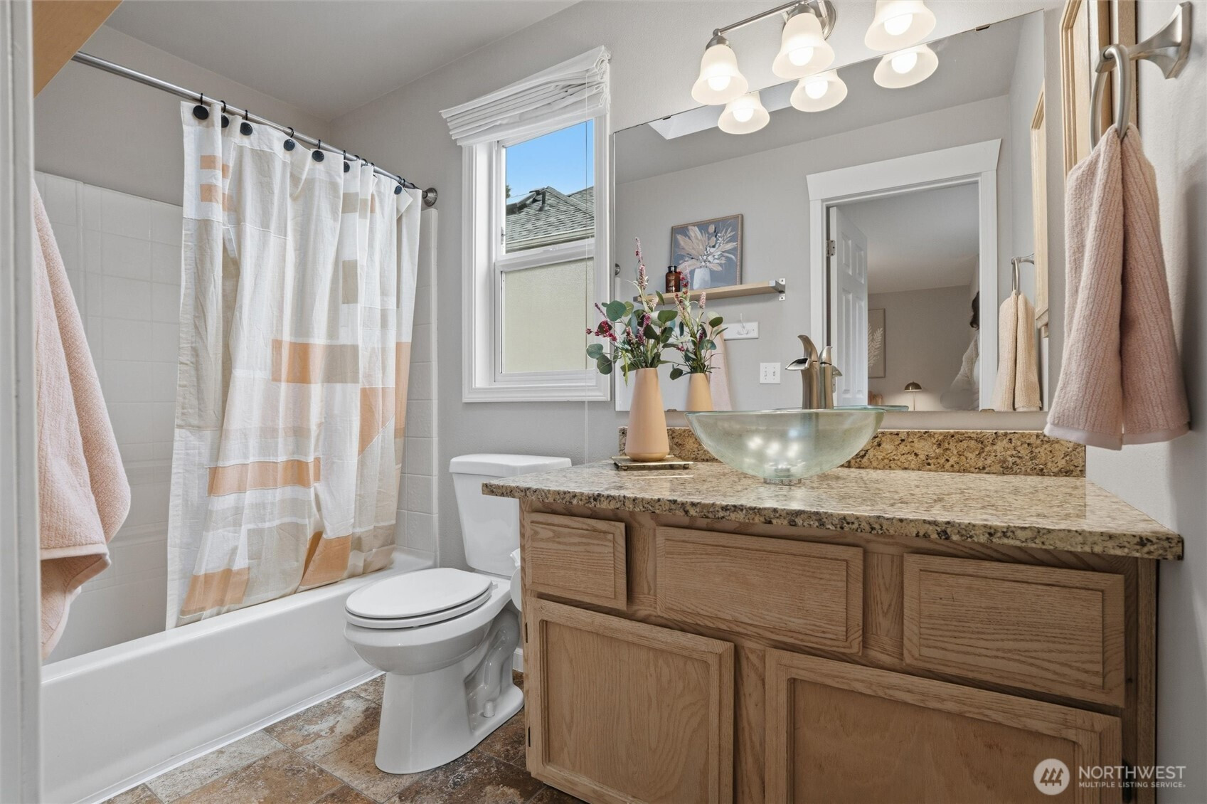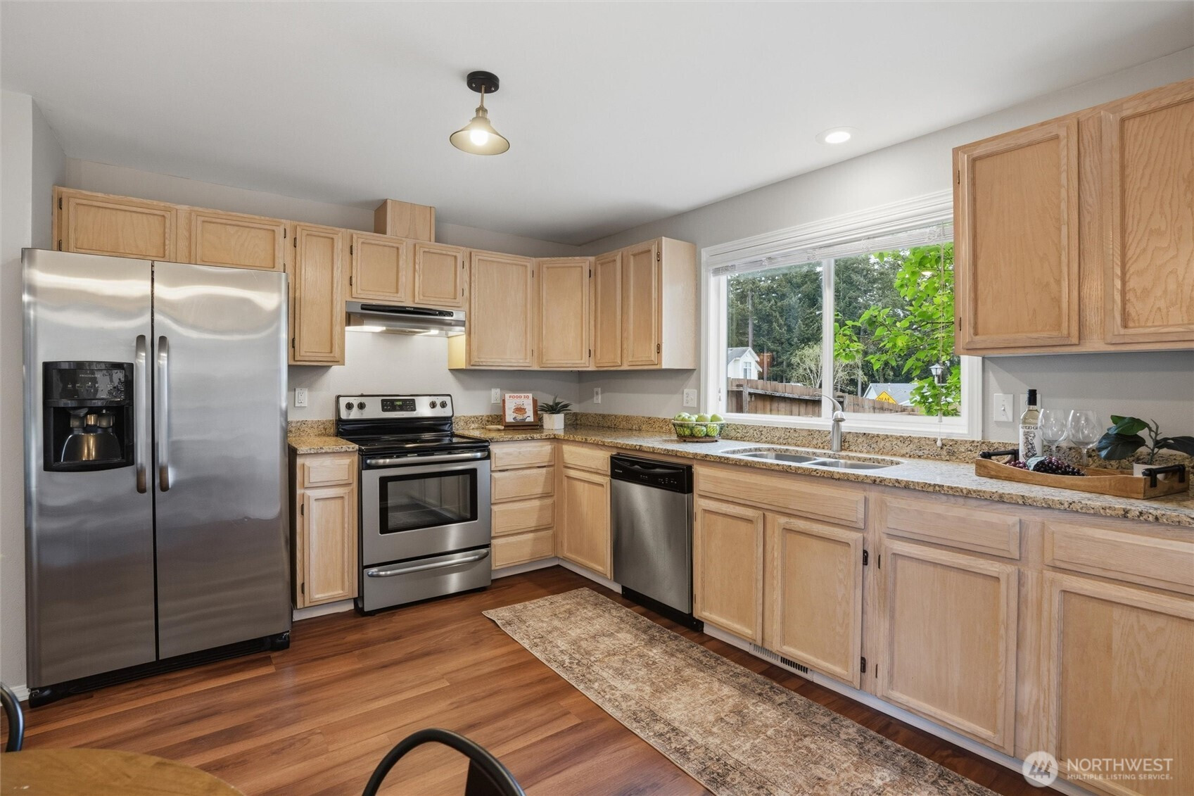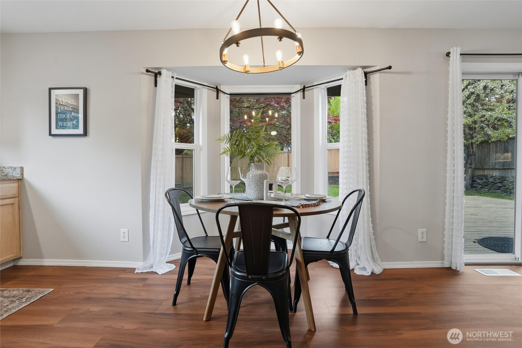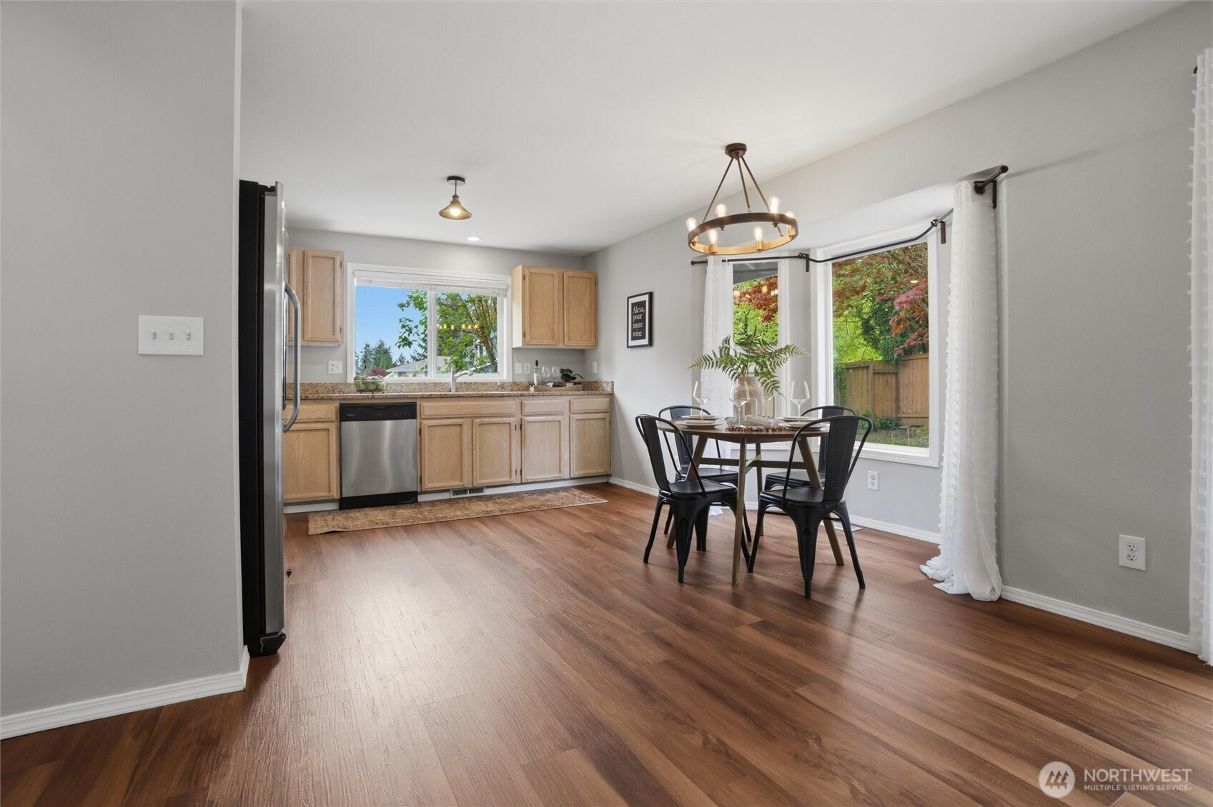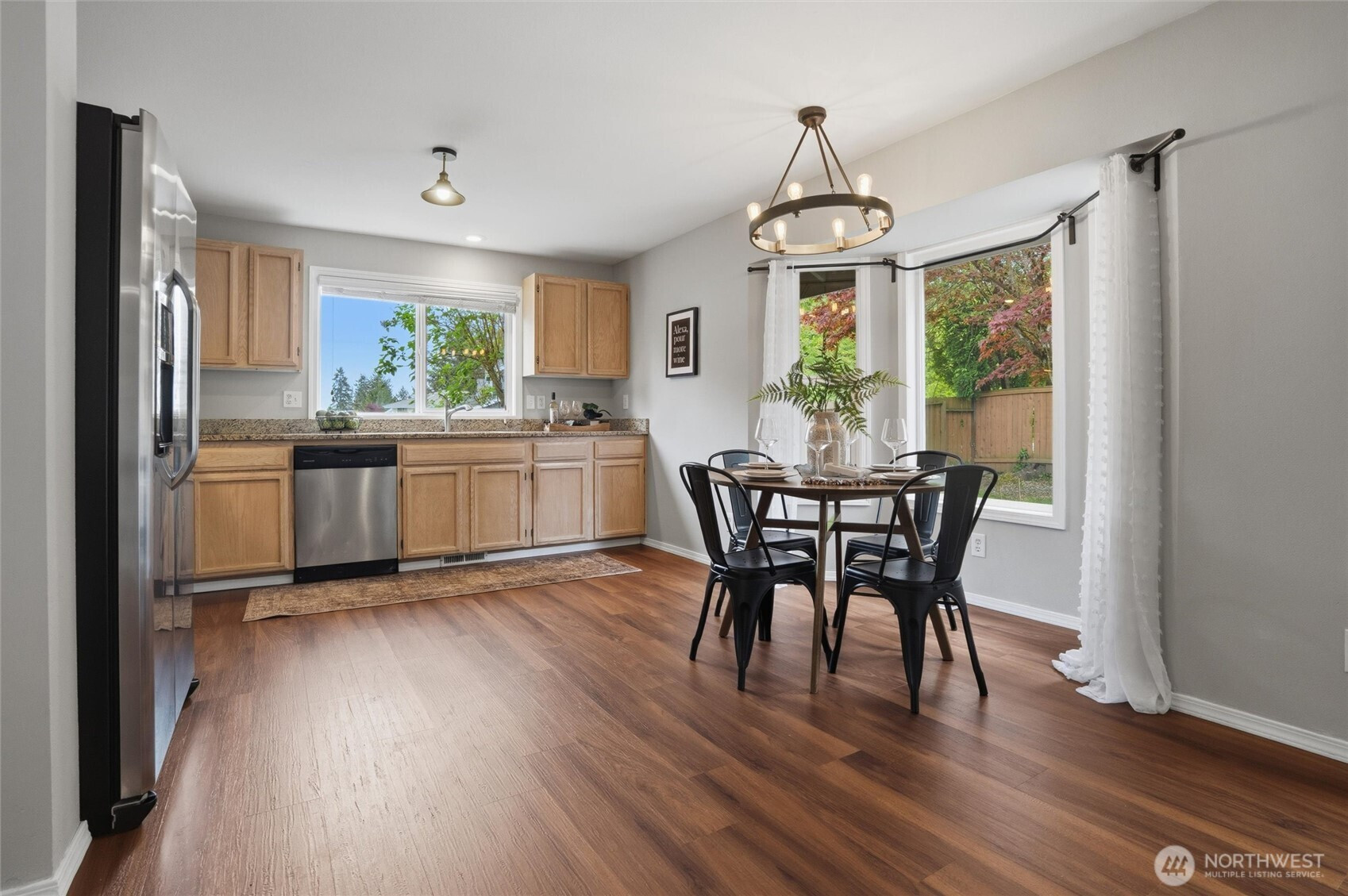 Perfectly placed between Poulsbo & Silverdale, this beautifully refreshed 3-bedroom, 2.5-bath home delivers the ideal blend of comfort, style & location. From the moment you step inside, soaring vaulted ceilings & abundant natural light create an inviting, airy ambiance that feels like home. The heart of the home is the thoughtfully designed granite kitchen, offering eating space & seamless flow into the cozy family room—perfect for everyday living or hosting. Step outside to a spacious deck overlooking a fenced corner lot, where summer BBQs, evening gatherings & backyard fun come naturally. Upstairs, retreat to a spacious primary suite featuring double closets & an updated bath, accompanied by two additional bedrooms offering flexibility for guests, work-from-home, or hobbies. Recent upgrades—including new LVP flooring on the main floor, fresh interior paint & central A/C—ensure modern comfort & move-in-ready ease. Beyond the home, enjoy a lifestyle that truly shines. Just minutes away, you’ll find local favorites like Silverdale Waterfront Park for scenic waterfront strolls, Old Mill Park with its charming boardwalk & beach access, and Nelson Park featuring playgrounds & open green space. Nature lovers will appreciate nearby access to Clear Creek Trail—a local favorite for walking, running, & enjoying the outdoors. All of this, plus quick access to shopping, medical, dining & both Bangor & Keyport Naval Bases, makes this location as convenient as it is desirable.