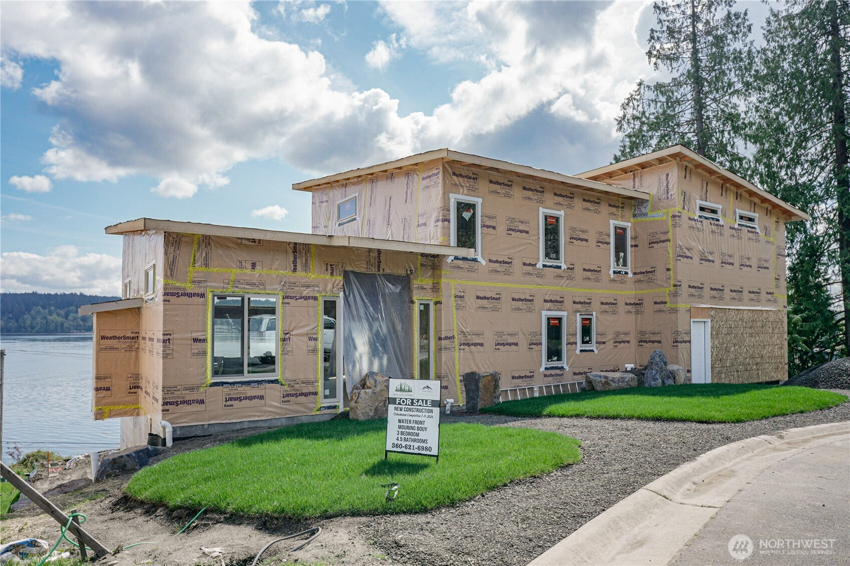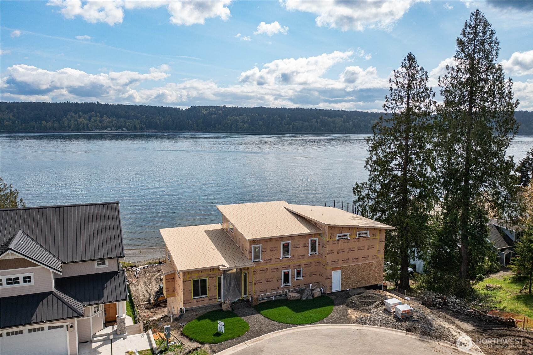 There are homes that have views. And then there is this where Colvos Passage lays itself at your feet, Vashon Island floats on the horizon, and Rainier rises in the distance like a cathedral nobody built. "The Passage House" doesn't frame the Pacific Northwest. It becomes it. This 4,566-square-foot brand new modern waterfront estate rises above the Sound in Olalla, one of Kitsap County's most quietly extraordinary communities, behind a private gate, on a cul-de-sac where the only traffic is the tide. A soaring wall of glass dissolves the line between inside and out. Step onto the main-level balcony and the water spreads before you like an eternity pool, edge to endless edge. Slip through the primary suite doors at dawn to your own private deck... the same infinite passage, yours alone, before the world wakes. Inside, soaring ceilings amplify every room. Beautiful fashion under foot hard surface floors flows through sun-washed spaces. A full Thermador suite anchors the kitchen, dressed in Calacatta Sancerre quartz and Kohler Purist fixtures. Two primary suites, each with a Kohler freestanding Bubble Massage soaker. Wine cellar, den, rec room, dual laundry sets below. Olalla sits 12 minutes from Gig Harbor with a 26-minute fast ferry to Seattle from nearby Southworth. The home is currently under construction through framing and rough in plumbing. The builder is open and welcomes your personal selections —so this is still your canvas. Come see what forever looks like.