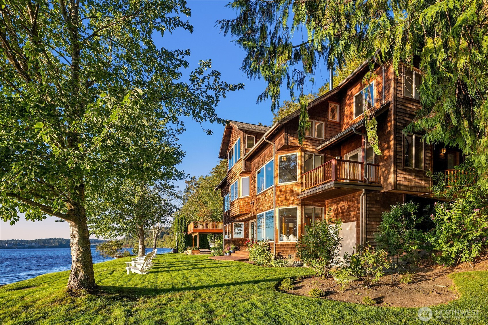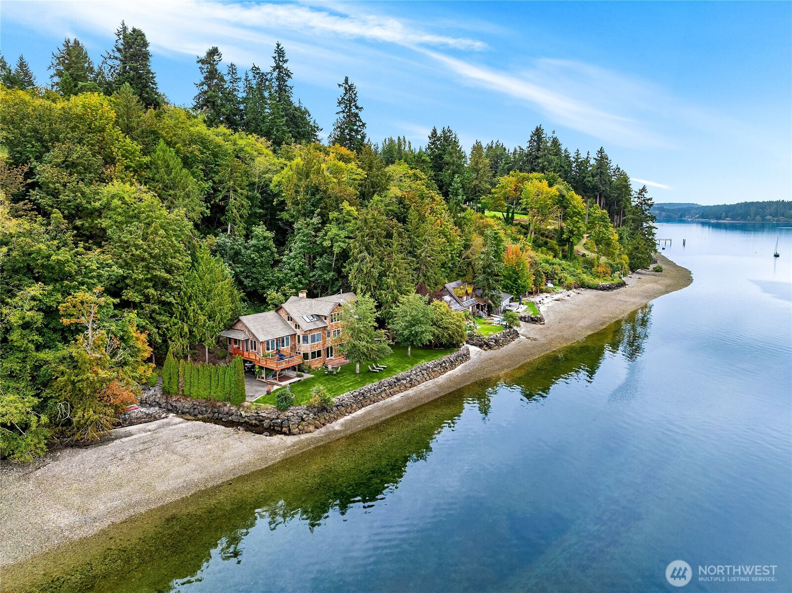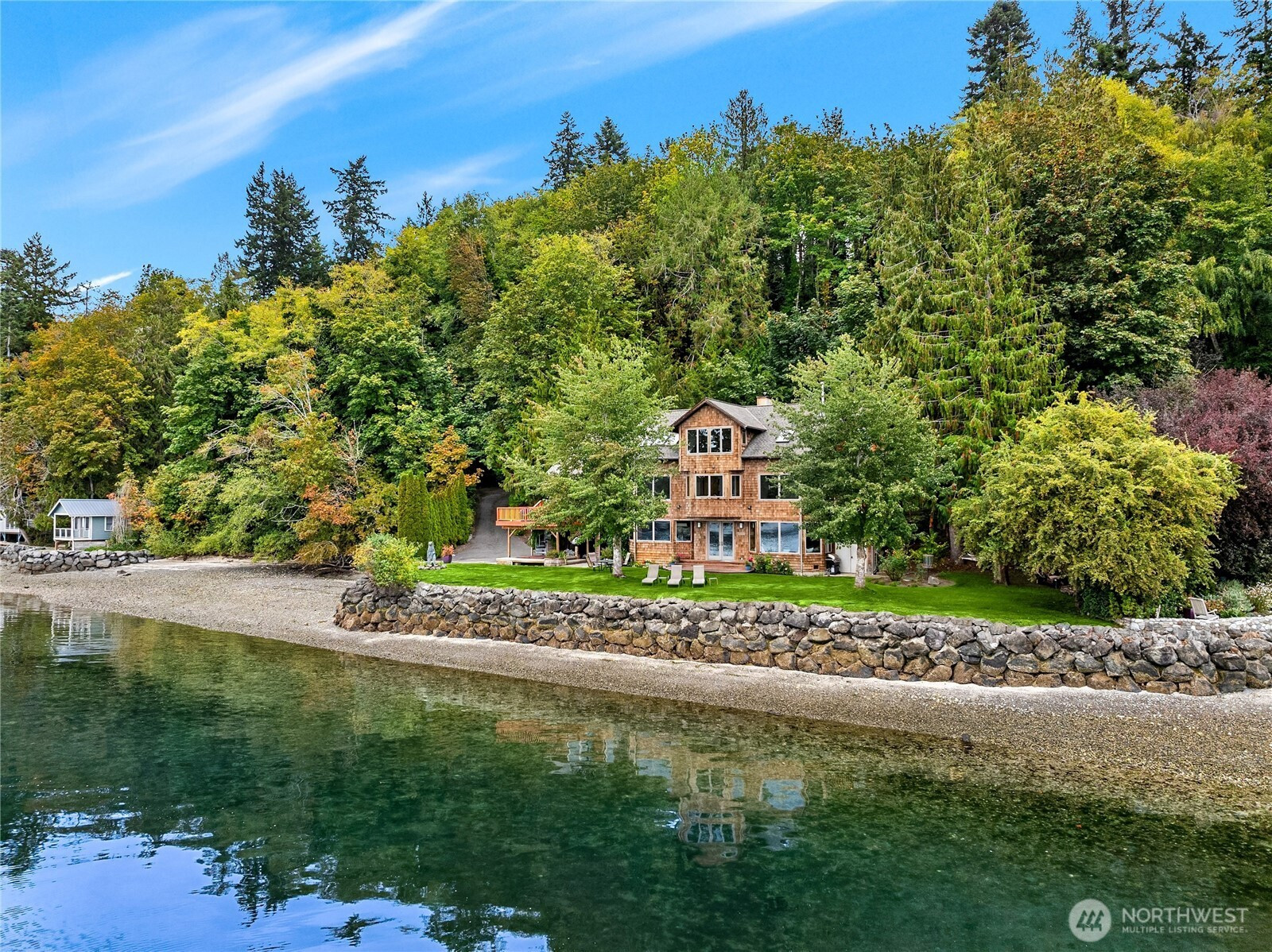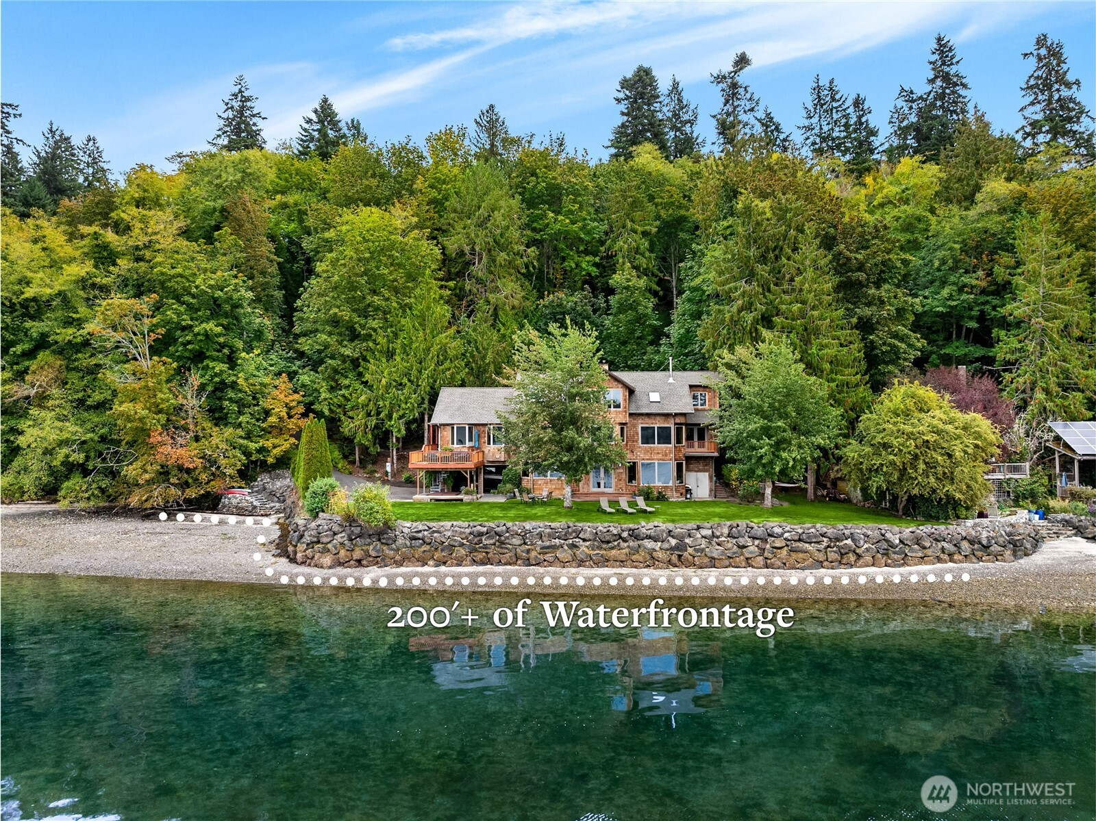 (503) 893-8874EXTRAORDINARY VIEWS, PRIVACY, SIZE & WATERFRONTAGE AT AN EXTRAORDINARY PRICE! West-facing waterfront with Olympic Mountain views, with total privacy, located at the end of a private drive in coveted Seabold/Manzanita. 200'+ of bulkheaded low-bank shoreline with a rare beach cove & mooring buoy. Created by beloved island architect Mack Pearl, this NW beach lodge–style home brings rustic elegance together with the spirit of an endless vacation. There is space for everyone with 4,000+ sqft across 3 stories, 4 beds, 5 baths, including an attached 900 sqft 1-bed wing with private entry through a 2nd driveway & its own kitchen, bath, living room & W/D. Pre-inspected and meticulously maintained by the original owners. Priced below Assessed Value!