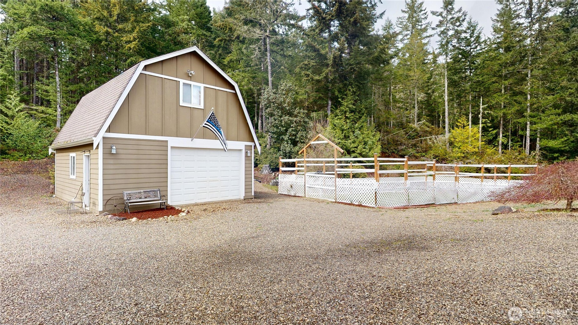 Welcome to your private retreat on 5.06 parklike acres in a gated community next to DNR land, offering direct access to hiking, biking, and riding trails, just minutes from the marina and Hood Canal. Enjoy peaceful living or create your dream mini farm in this serene, nature-filled setting. Inside, the home features a light-filled open floorplan with glowing hardwoods and vaulted ceilings. The chef’s kitchen boasts granite counters, a large island, eating nook, walk-in pantry, and wet bar, flowing into formal living and dining rooms, and a spacious family room. The luxurious primary suite offers a see-through gas log fireplace shared with the spa-like 5-piece en-suite bath and a generous walk-in closet. Two additional large bedrooms, Huge bonus room and a loft with private flexible living space. Step outside to a large entertainment patio overlooking a beautiful pasture area. The grounds include private trails, a fenced garden, a 22 X 26 barn w/studio is adjacent to the home, there is also a kennel, chicken coop and fenced vegetable bed areas, RV/boat parking, and a 3-car garage. Recent upgrades include a newer furnace, heat pump, and sprinkler system. Don’t miss this rare opportunity!