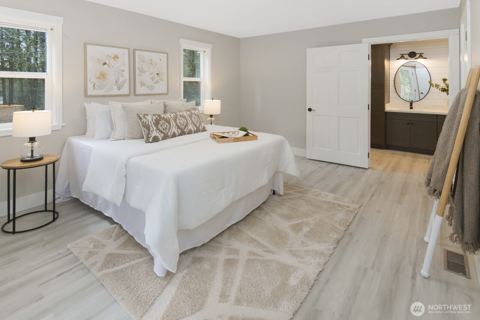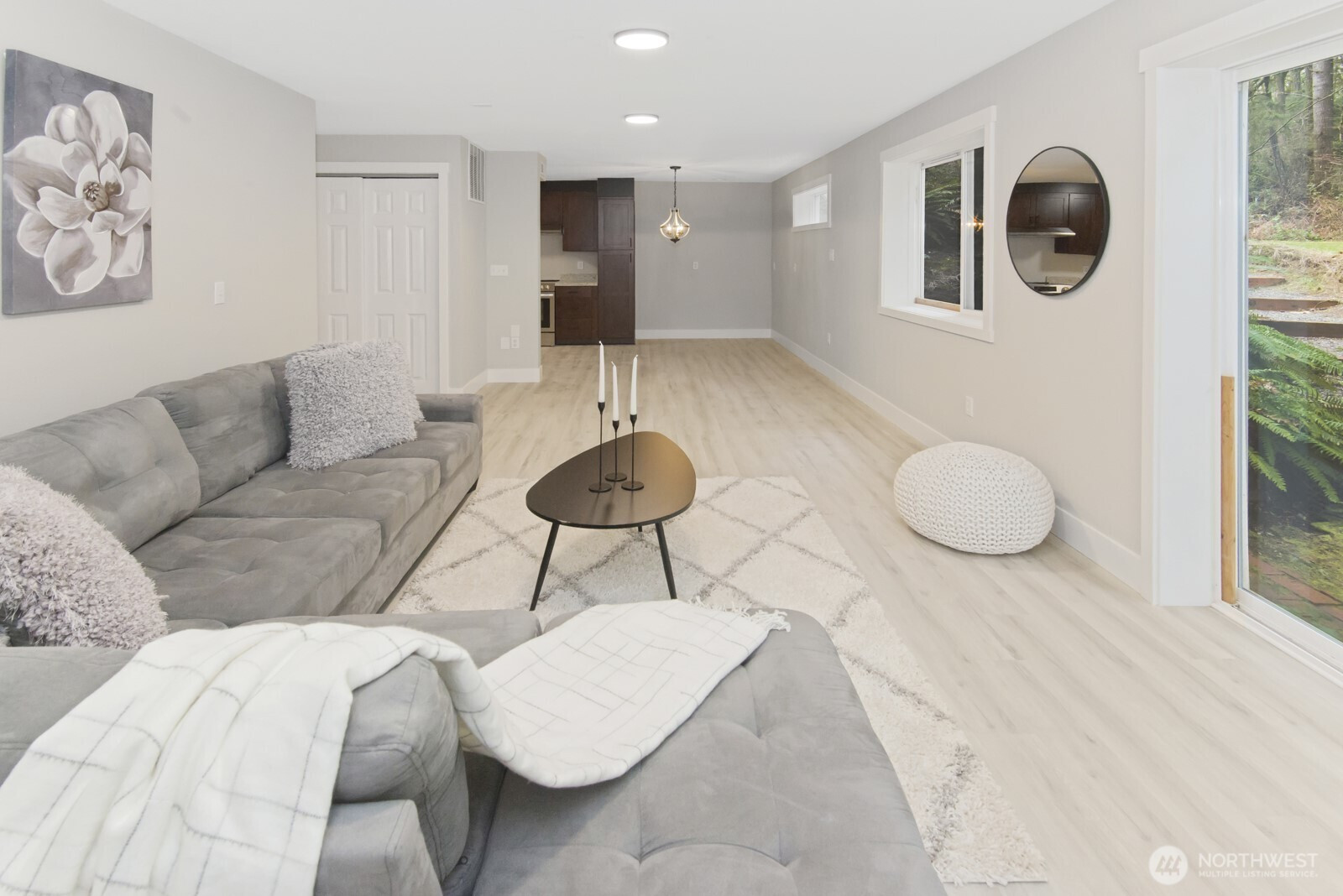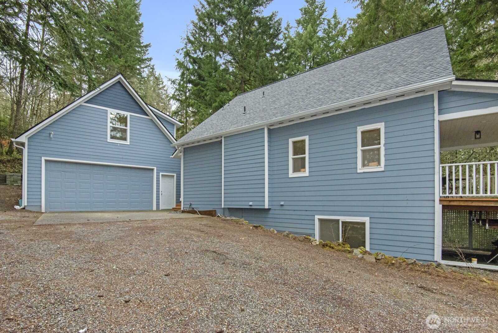 Discover serene living on 2.4 private acres at this beautifully updated Port Orchard retreat. The main home offers 3 bedrooms and 3.5 baths, including a main floor primary bedroom. The daylight basement features its own separate entrance along with a second full kitchen, bedroom, and full bathroom, creating an ideal setup for multi-generational living, guests, or rental flexibility. Major upgrades completed in 2026 include a brand-new roof and gutters on both the home and detached garage, along with a new furnace for year-round comfort. A standout feature is the remodeled detached ADU above the garage, offering just over 600 sq ft of stylish living space with 1 bedroom and 1 bath. Perfect for rental income, guests, or a private home office. In total, the property provides 4 bedrooms and 4.5 baths and over 3500 sq ft of living space across both dwellings. Surrounded by evergreens and set back from the road, this property delivers the peaceful seclusion of rural living while keeping you close to town amenities. A rare opportunity to enjoy space, versatility, and modern updates in a truly tranquil setting.